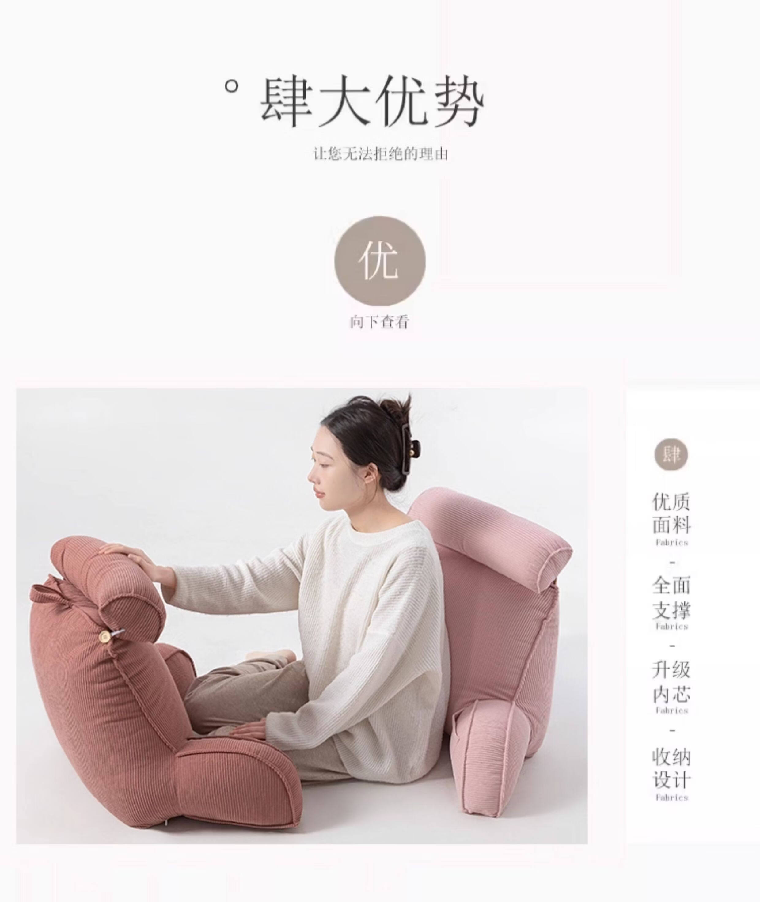 名创优品(MINISO)床头靠枕 沙发大靠背垫护颈护腰靠垫飘窗台榻榻米床上软包靠背 粉豆色【可拆洗拉链】 80cm*60cm*40cm 含枕芯