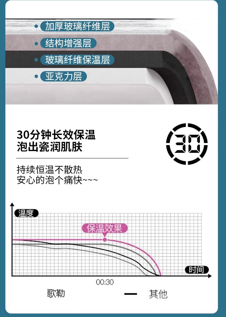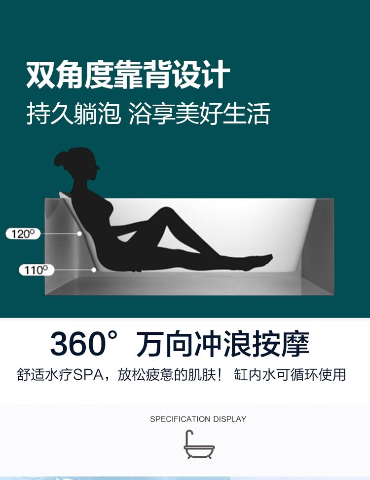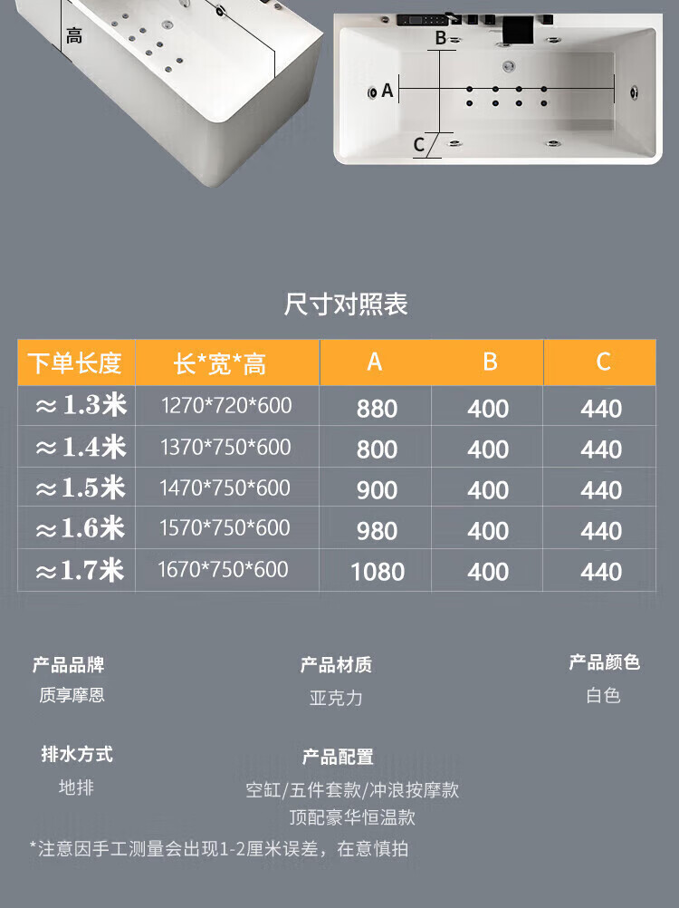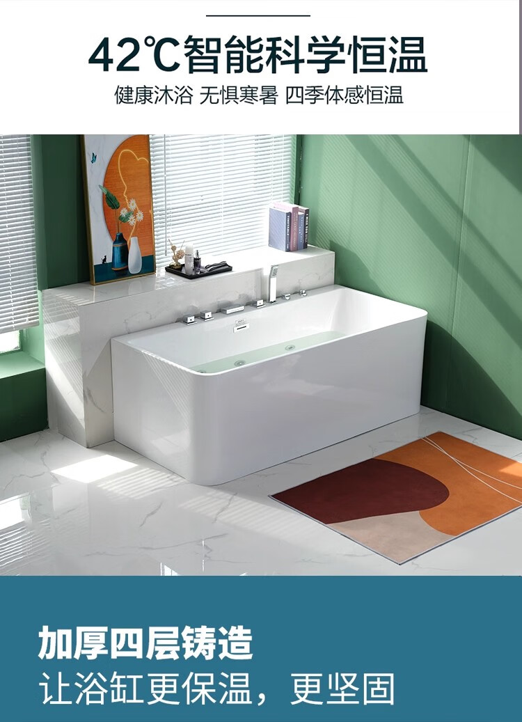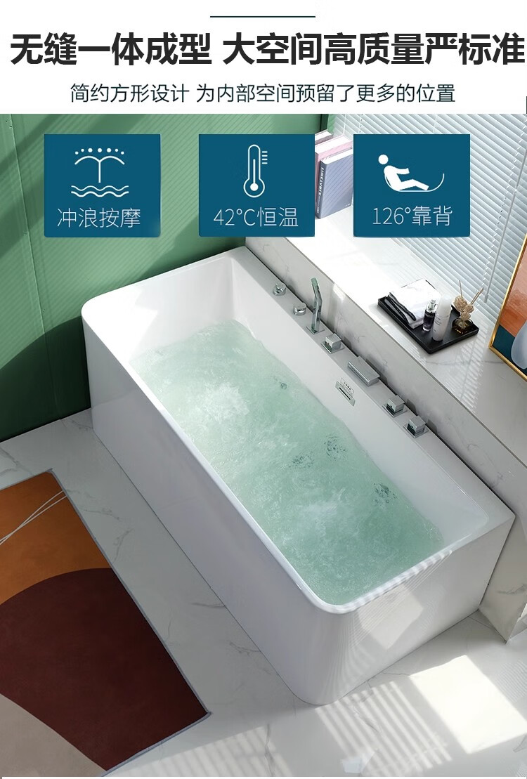 质享摩恩亚克力家用小户型一体无缝智能按摩恒温冲浪卫生间长方形深泡浴缸 权益【非实物】不发货1 1.27