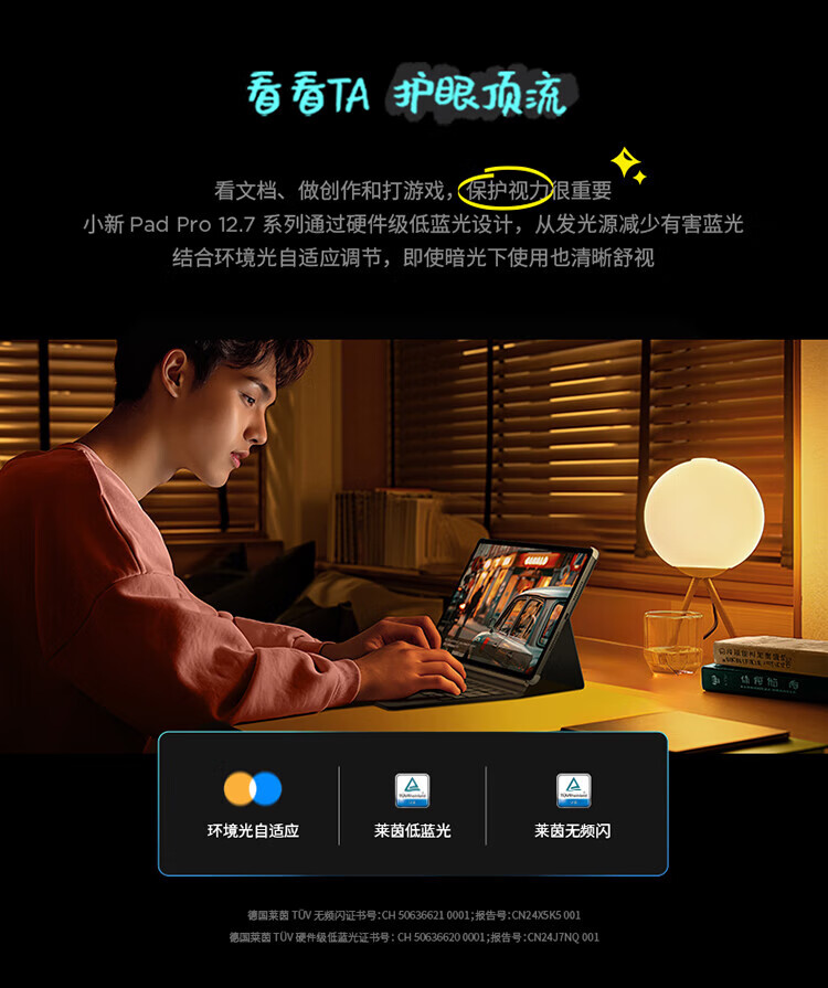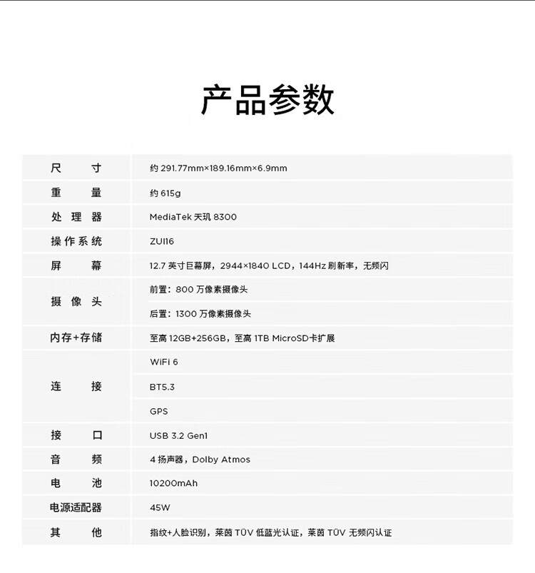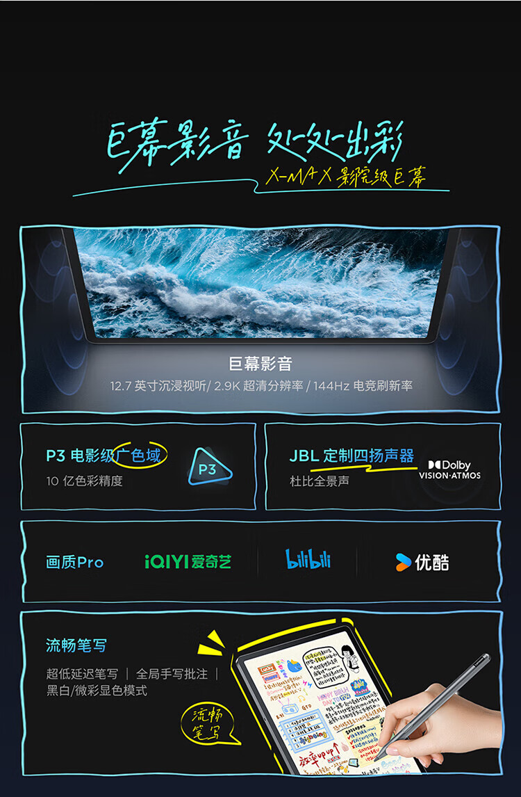 联想(Lenovo)小新PadPro12.7 2025款 娱乐办公学习游戏平板天玑8300 2.9k 144Hz 8+256GWIFI大象灰+壳膜套装