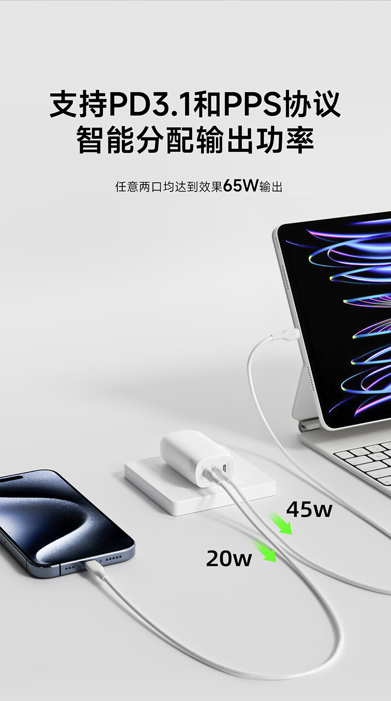 小米(MI)【3C认证】自带线充电宝 20000 67W 可上飞机/火车 可充手机平板笔记本耳机 iPhone安卓可用 浅蓝色