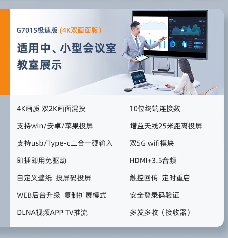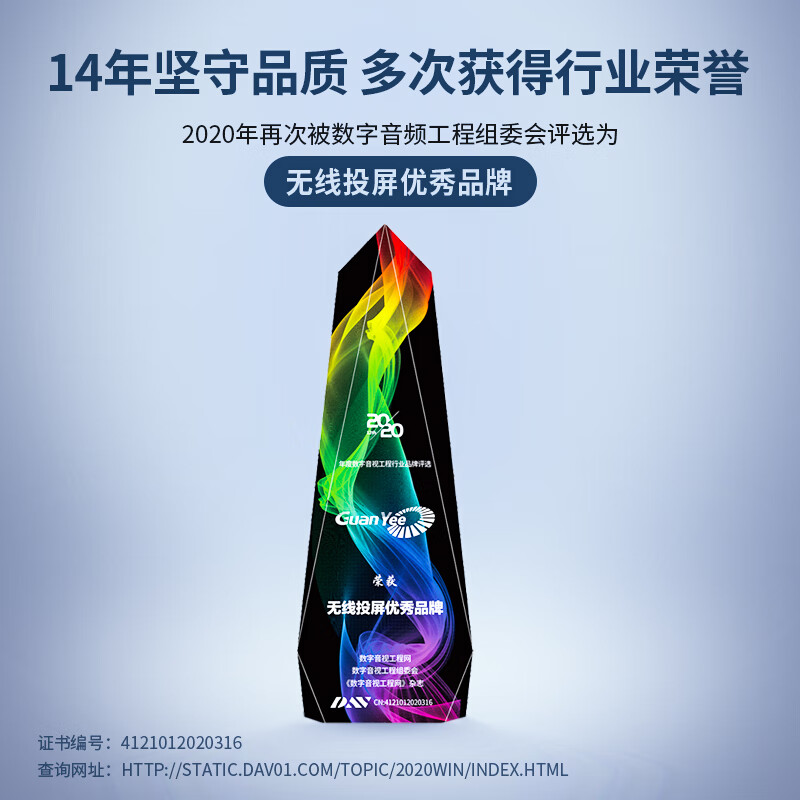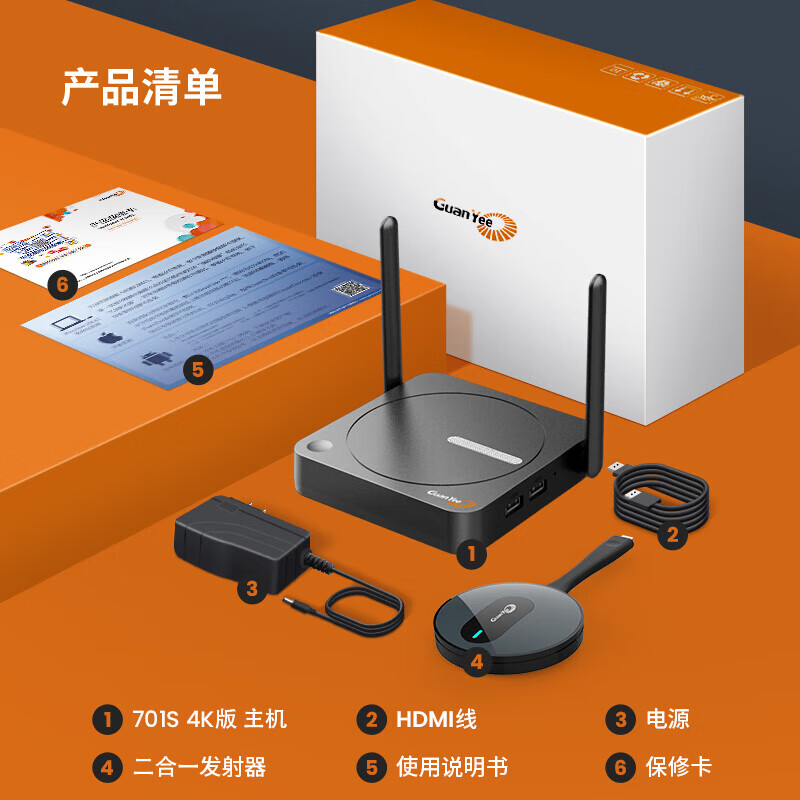 GUANYEE 冠艺无线投屏器HDMI传输器手机电脑平板会议办公usb一键穿墙同屏4K投影电视LED大屏投影仪企业级