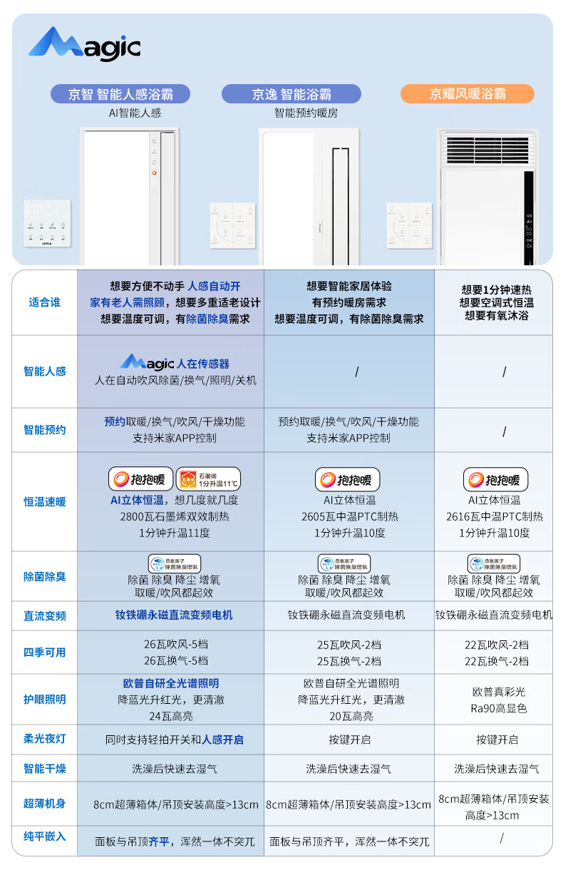 欧普(OPPLE)京东集采JC系列风暖浴霸S3 国家补贴抱抱暖变频恒温除菌浴霸 京耀