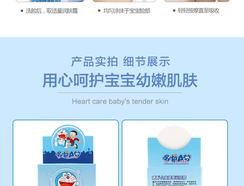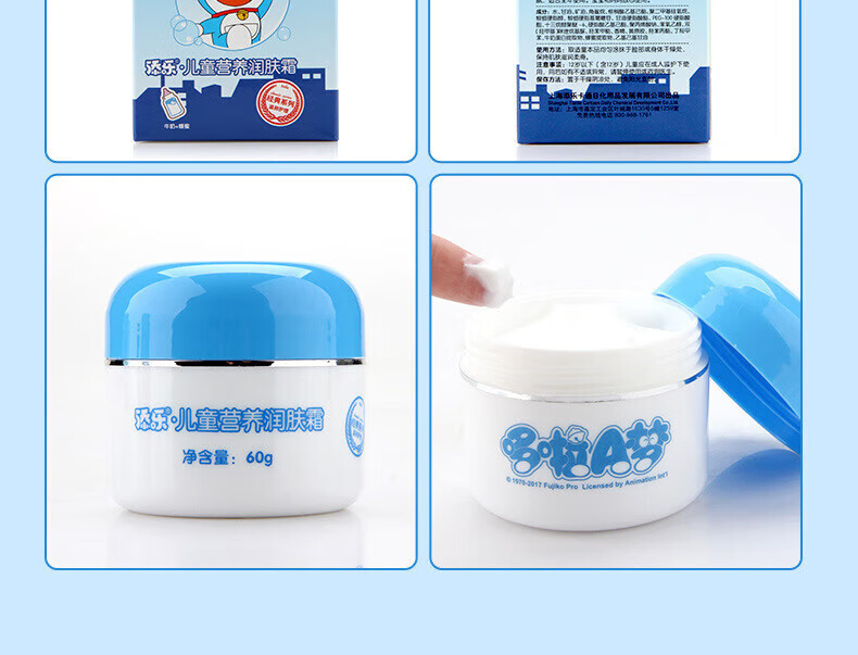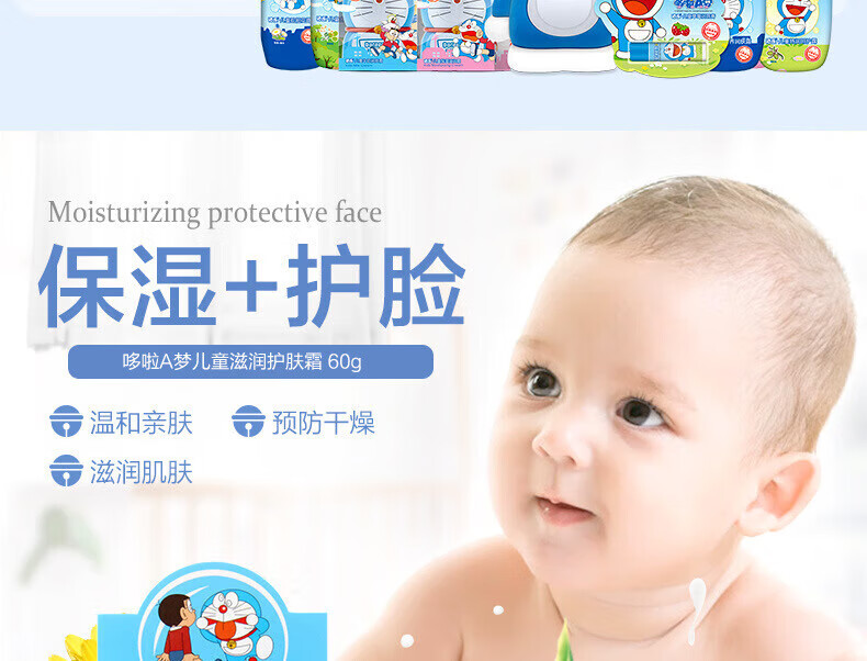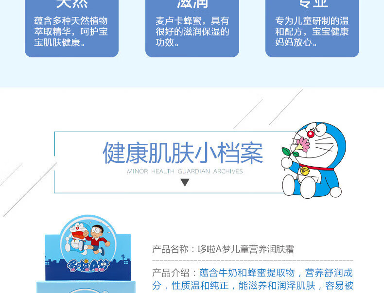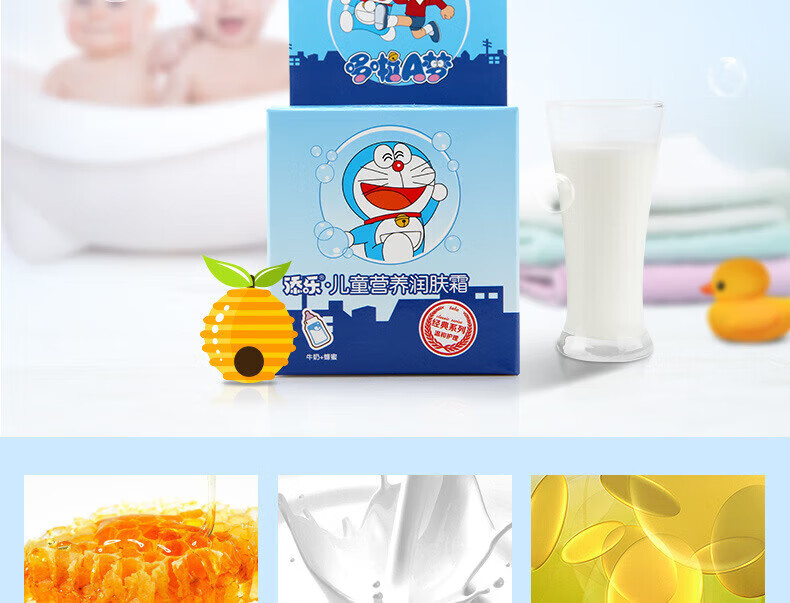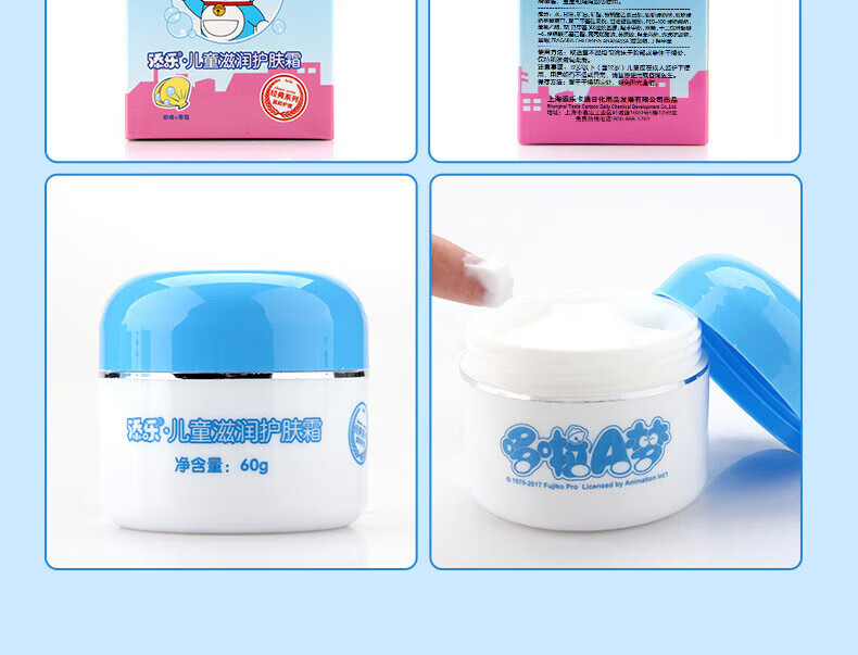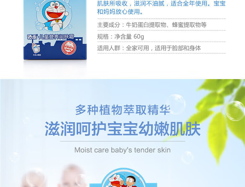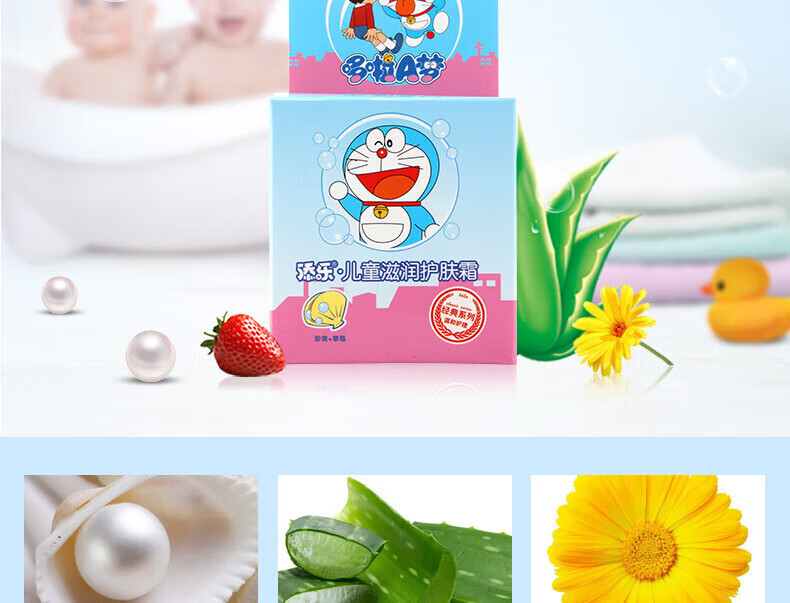 添乐哆啦A梦儿润肤霜保湿面霜宝宝专用 60g滋润护肤霜(珍珠+草莓)