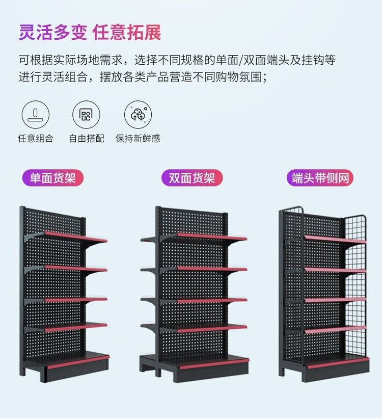 海诗圣堡超市货架便利店小卖部多层展示架单双面组合中岛药店零食置物架子 加厚五层70-42-165单面副架