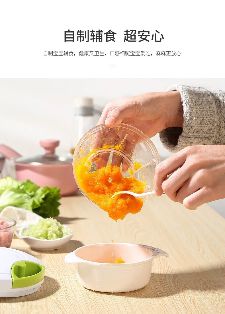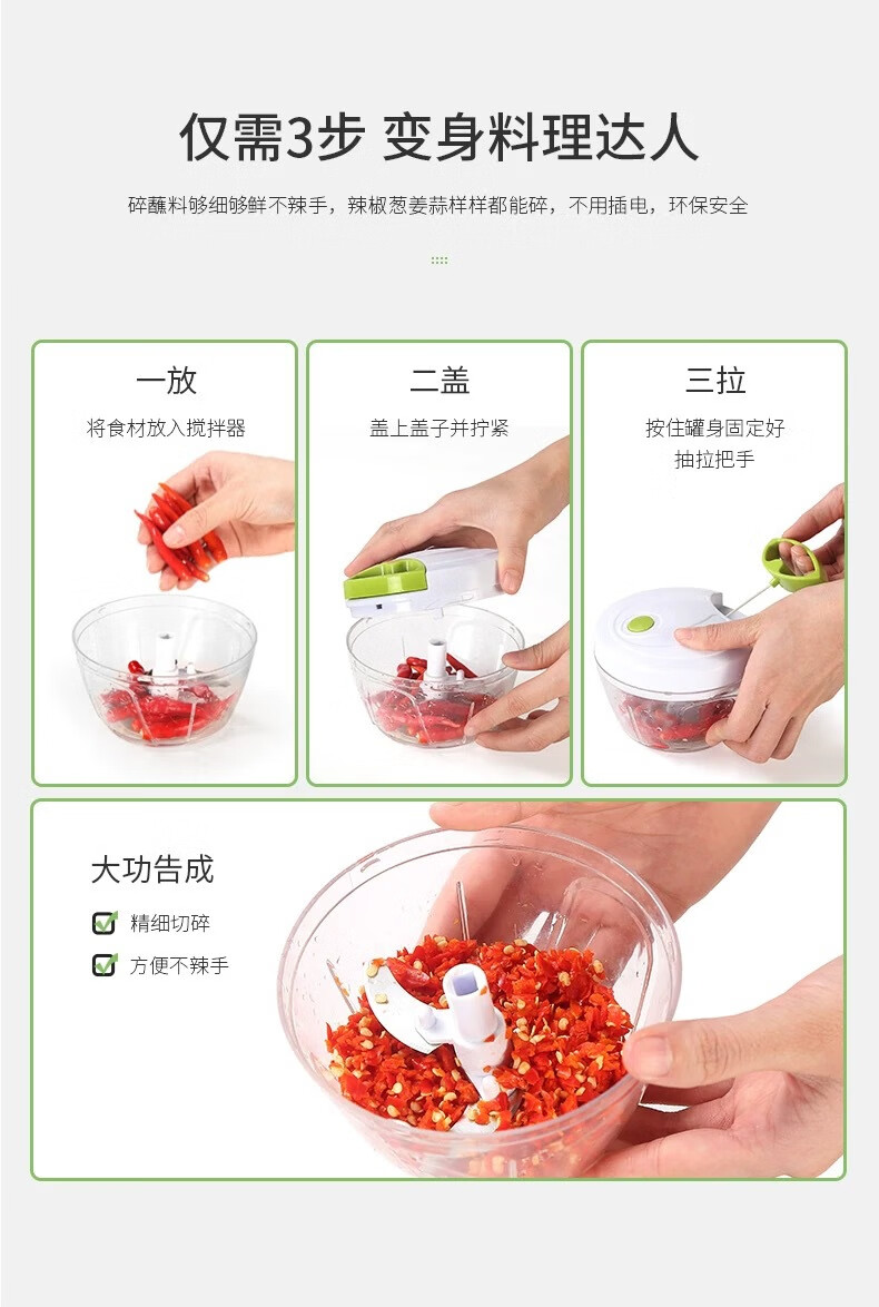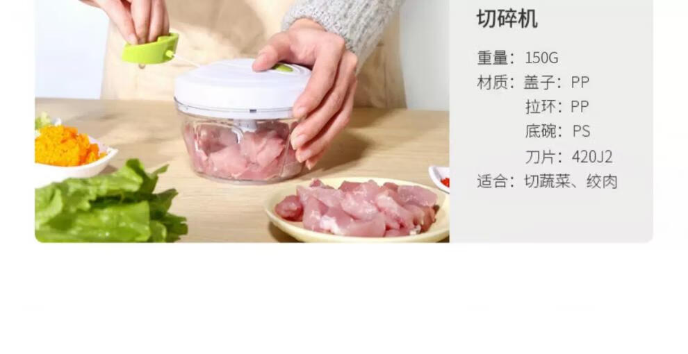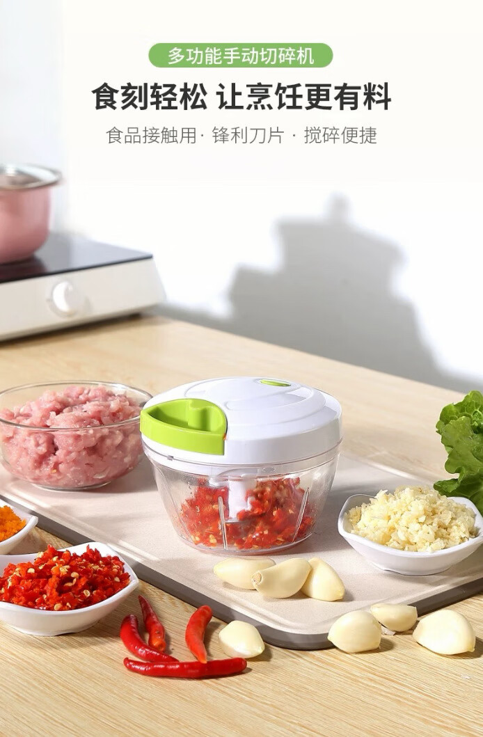网红手动拉蒜器厨房神器姜末花生蒜蓉辣椒搅碎机辅食多功能料理机 拉蒜器500ml白色
