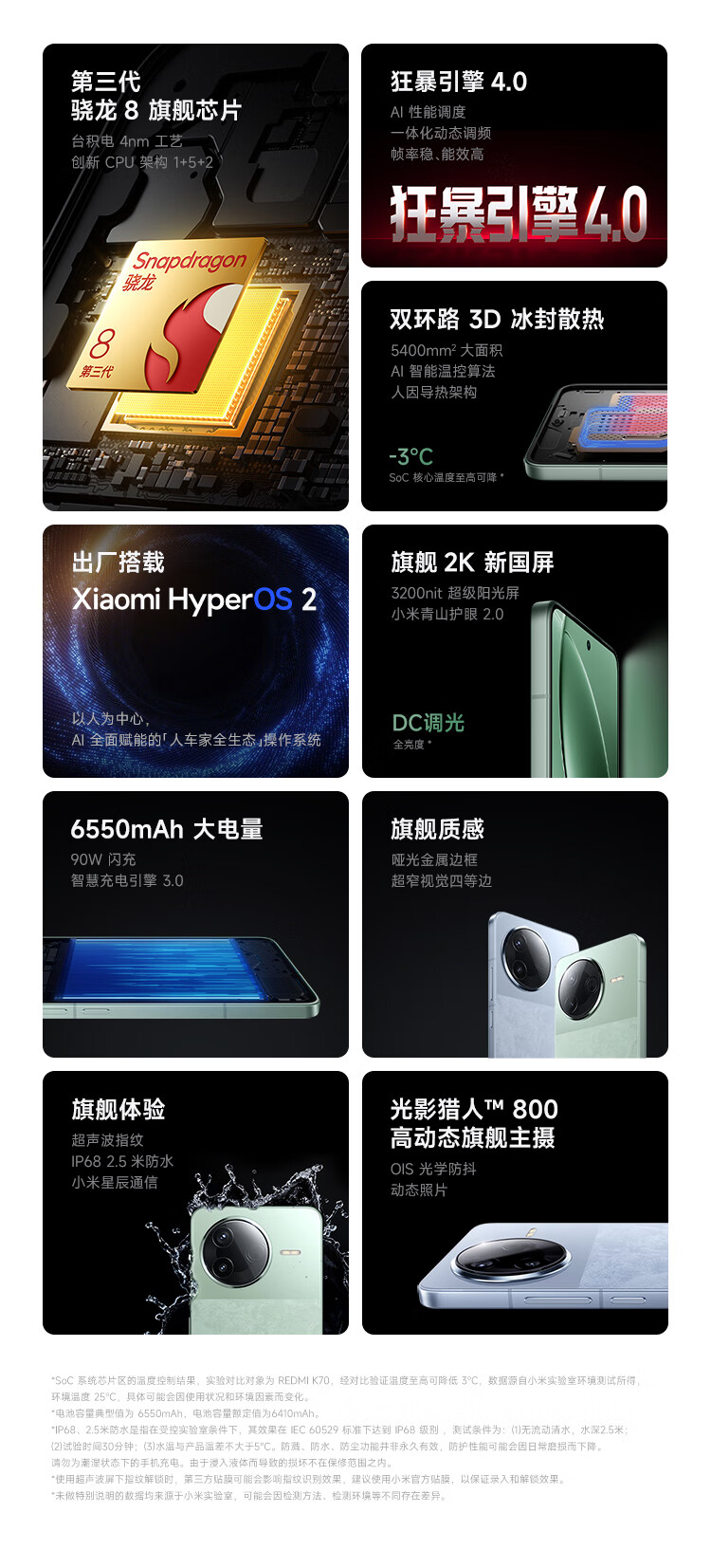 小米REDMI K80 第三代骁龙8 IP68 2K新国屏 120hz高刷 玄夜黑 12GB+256GB 红米5G手机