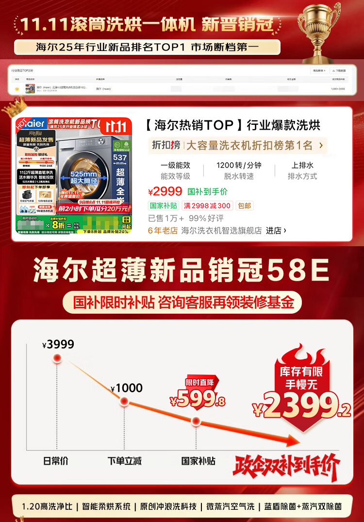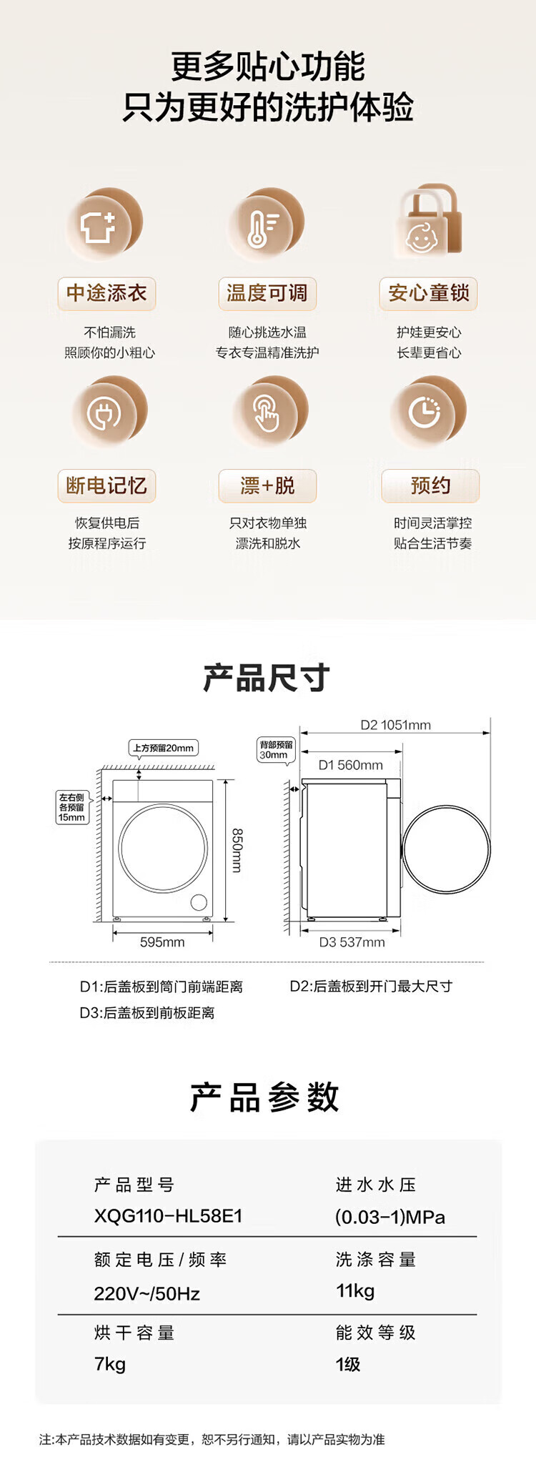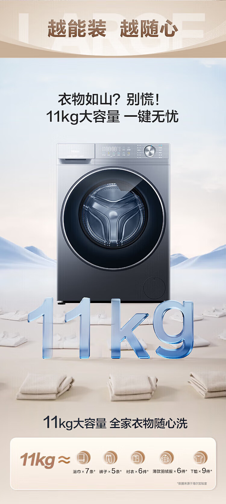 海尔(Haier)滚筒洗衣机带烘干全自动滚筒洗烘一体机10公斤家用大容量一级能效除菌螨智能烘干 507S洗烘+1.1洗净比+防生锈除菌螨+六维减震