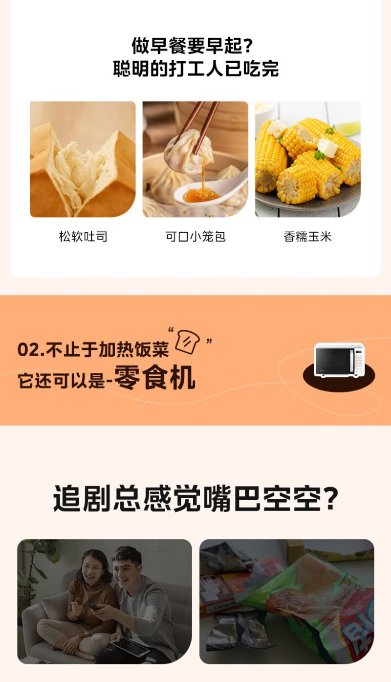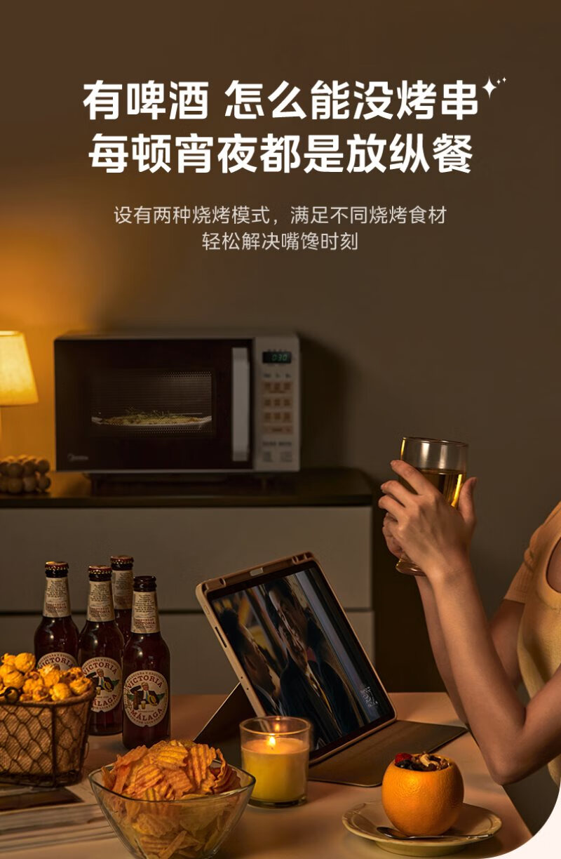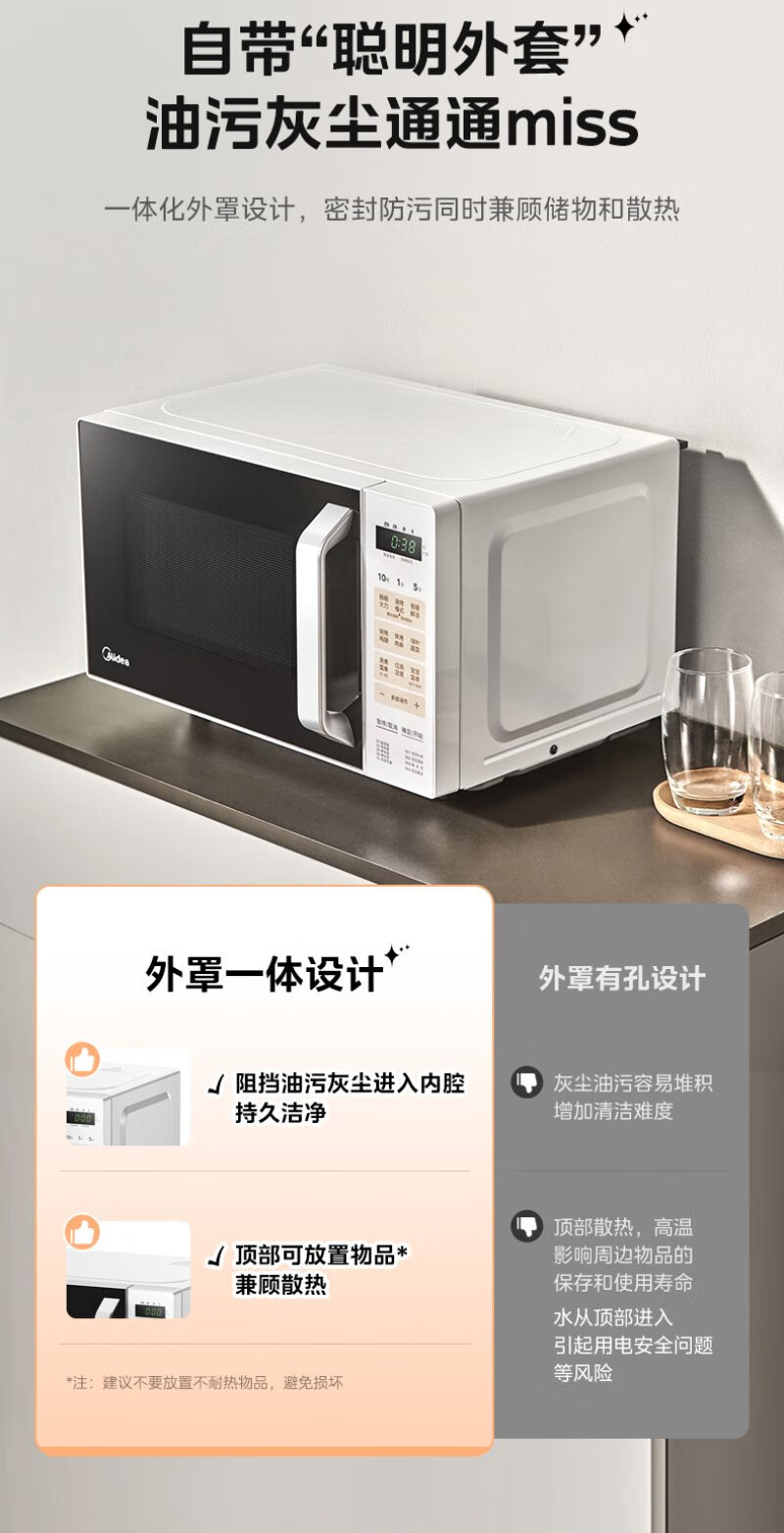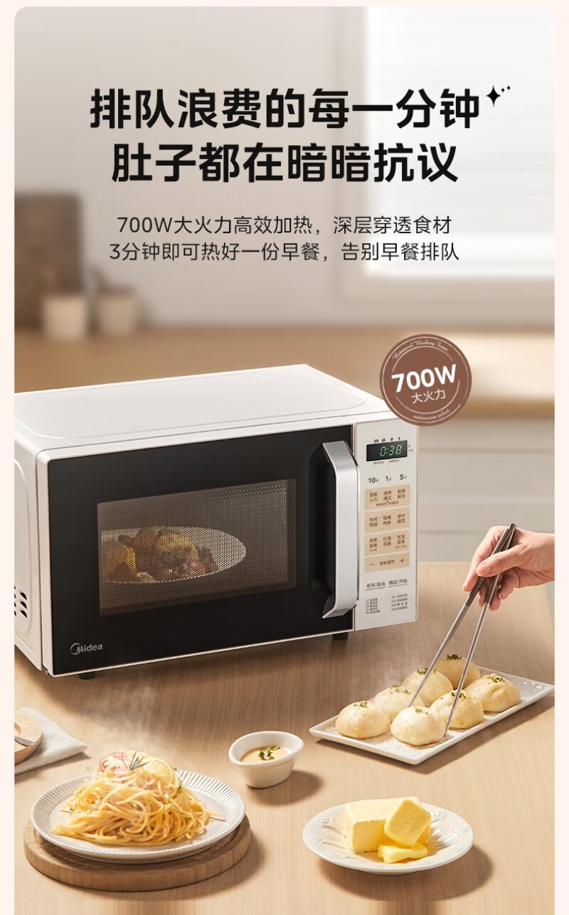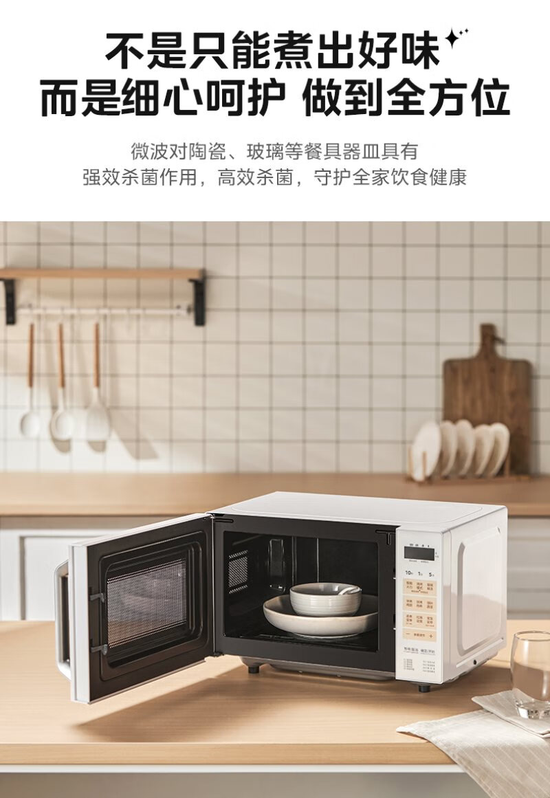 美的(Midea)家用便捷微波炉 转盘加热 五档火力 双旋钮操控 高温杀菌智能解冻 易洁内胆M20C
