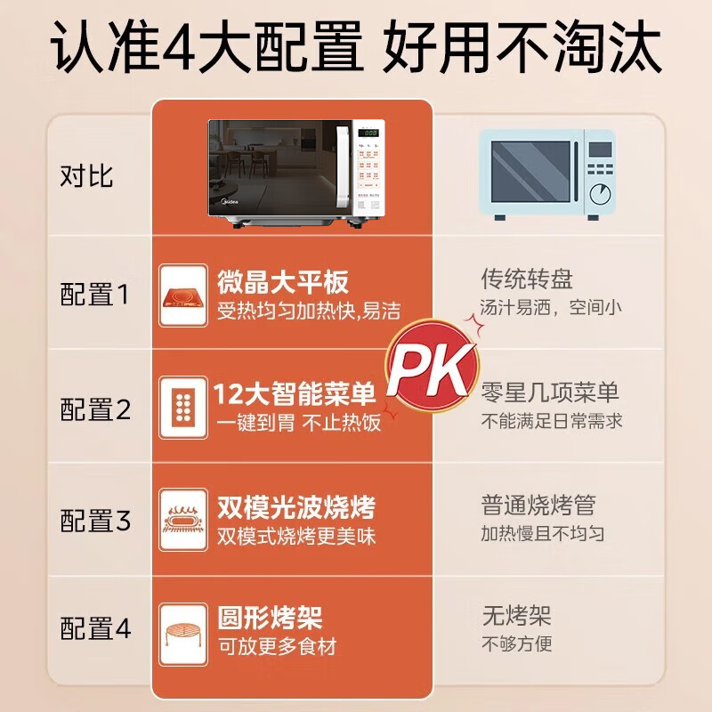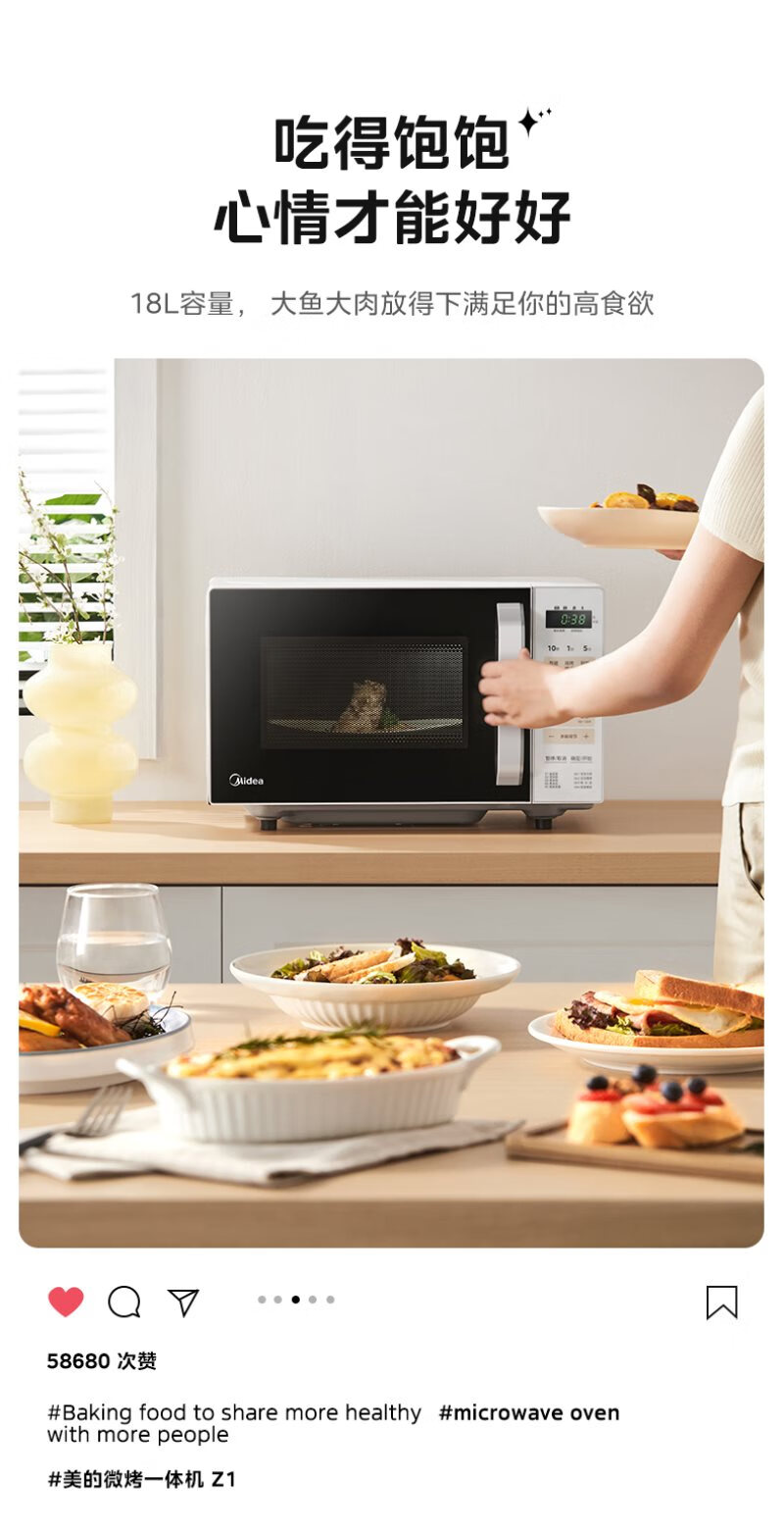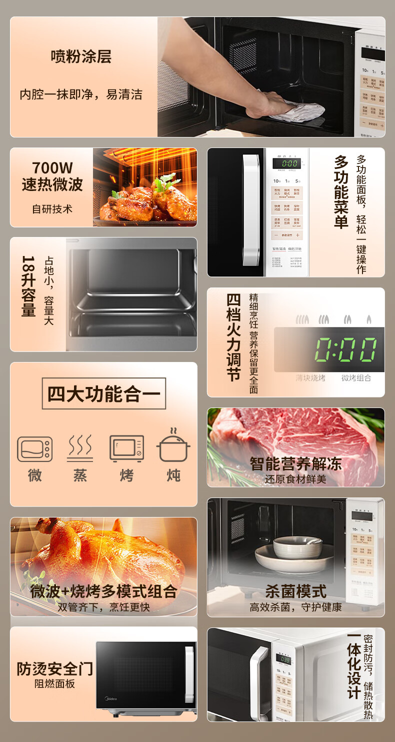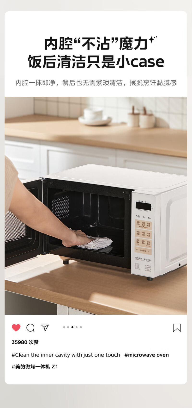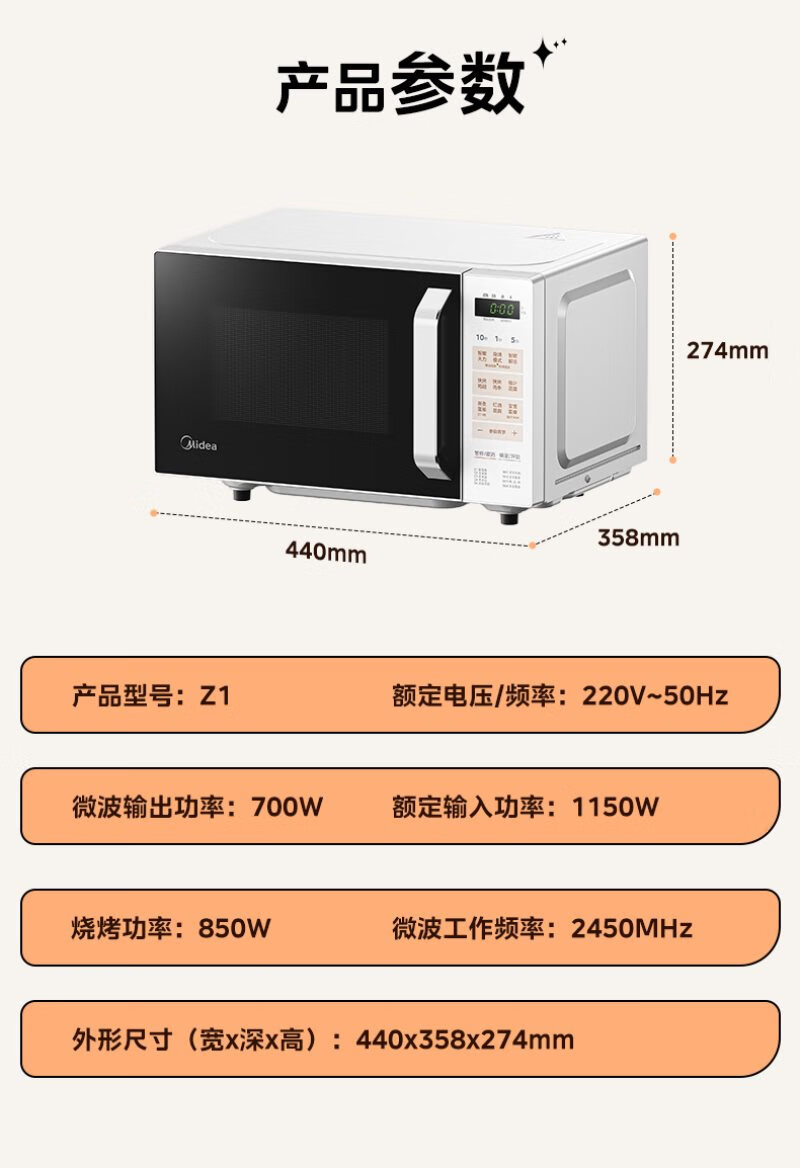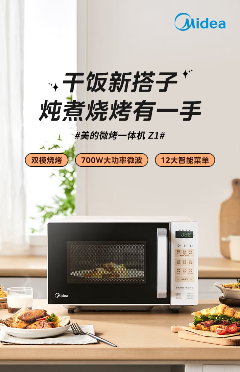 美的(Midea)【新款】家用微波炉光波微烤一体机 速效加热智能解冻平板易洁 京东自营Z1
