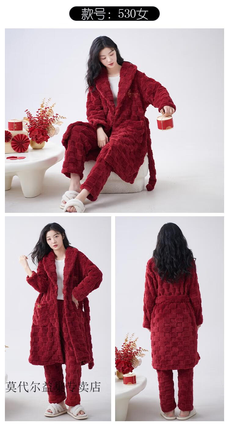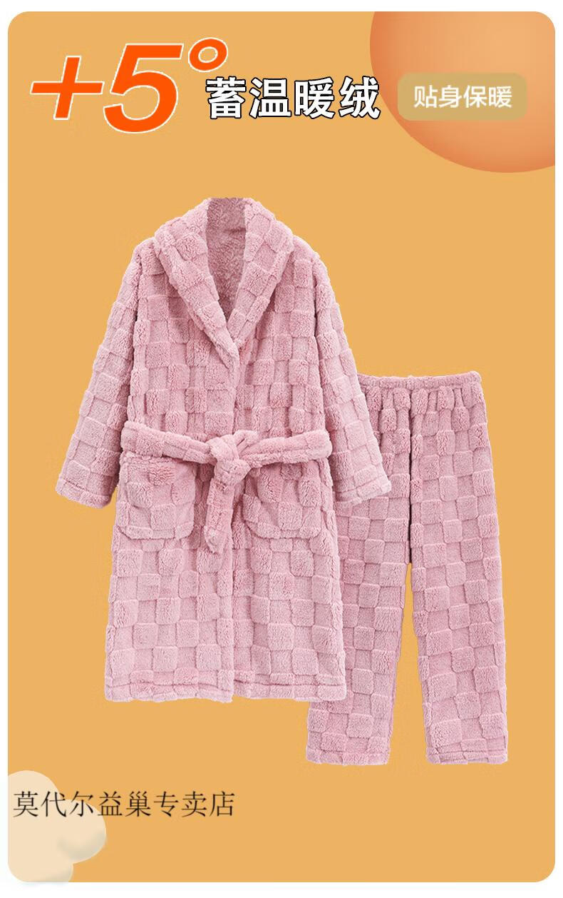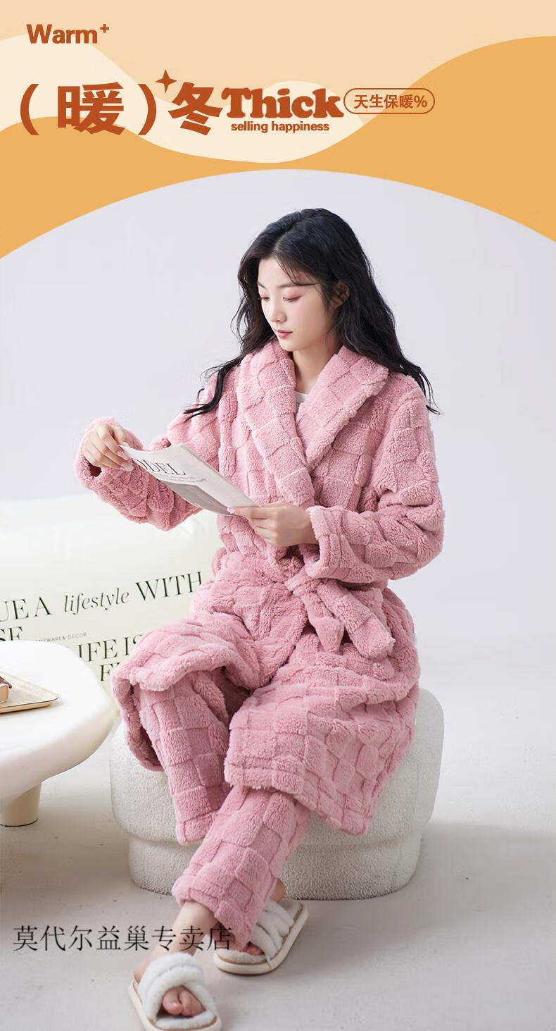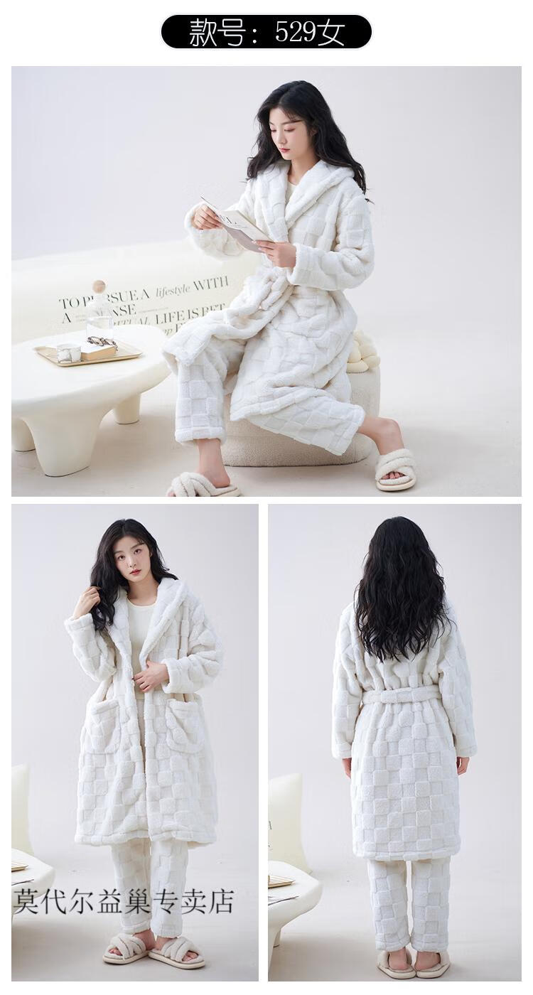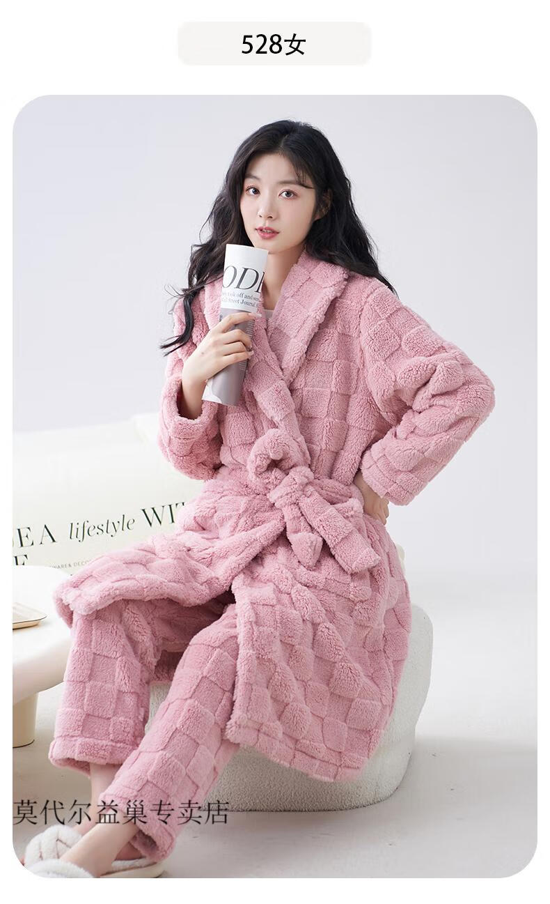 莫代尔女士睡衣女珊瑚绒2025新款秋冬加绒加厚保暖浴袍法兰绒家居服睡袍 主图款RK:528女 【睡袍+睡裤】 L (推荐100-120斤)