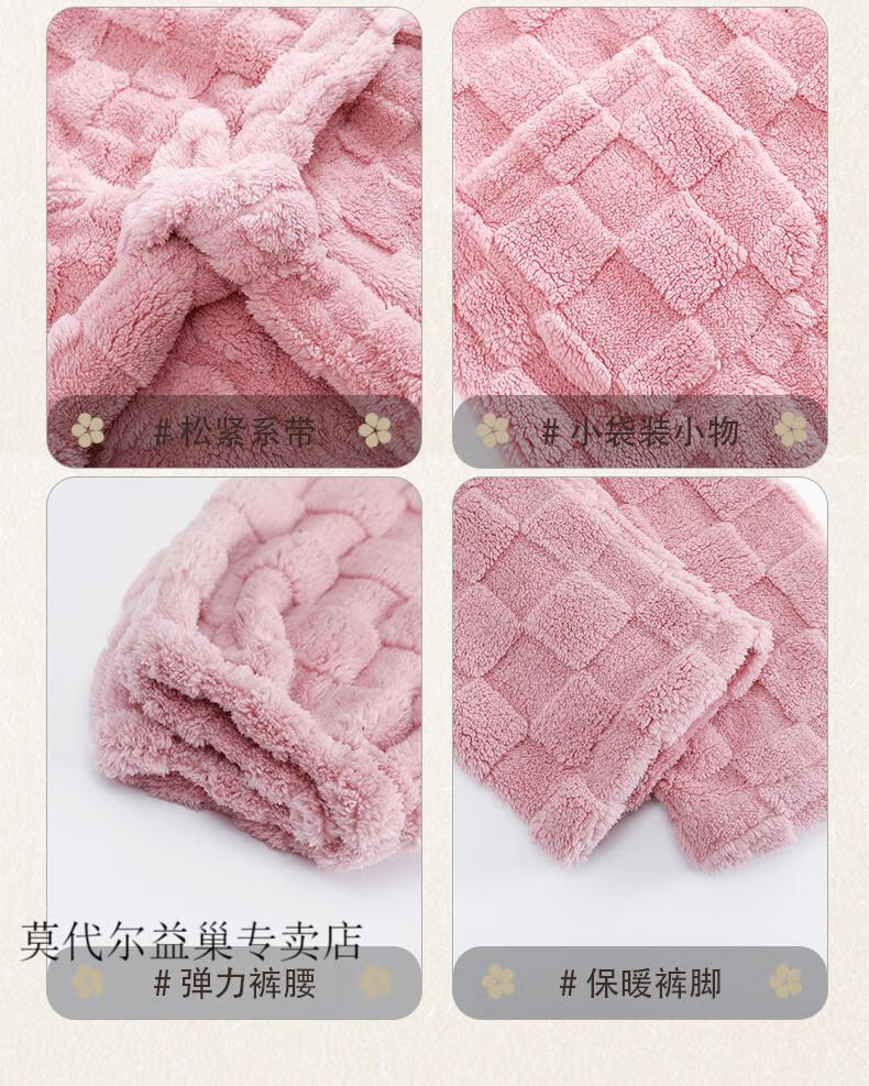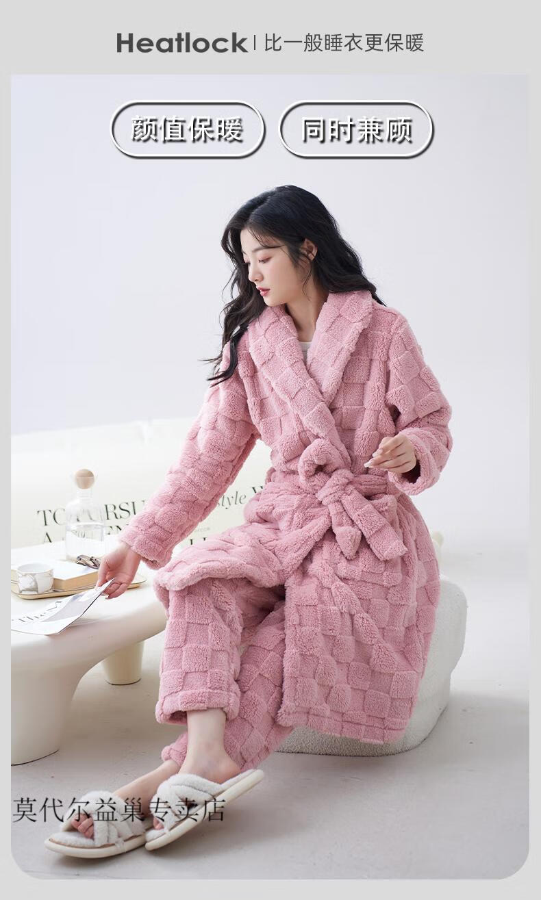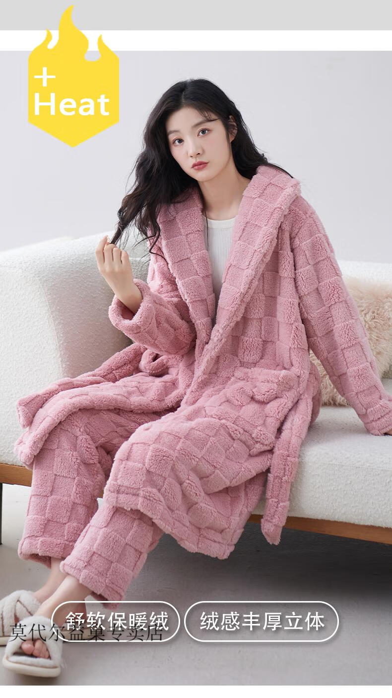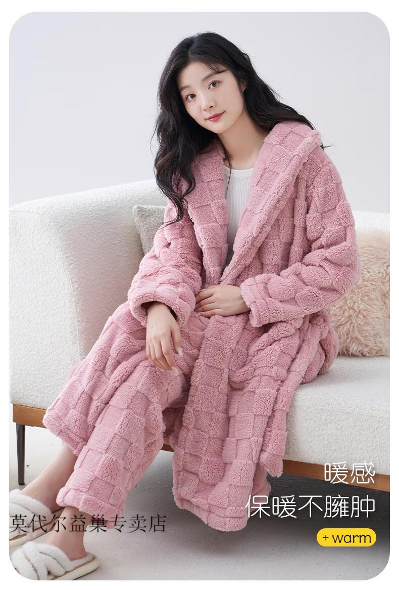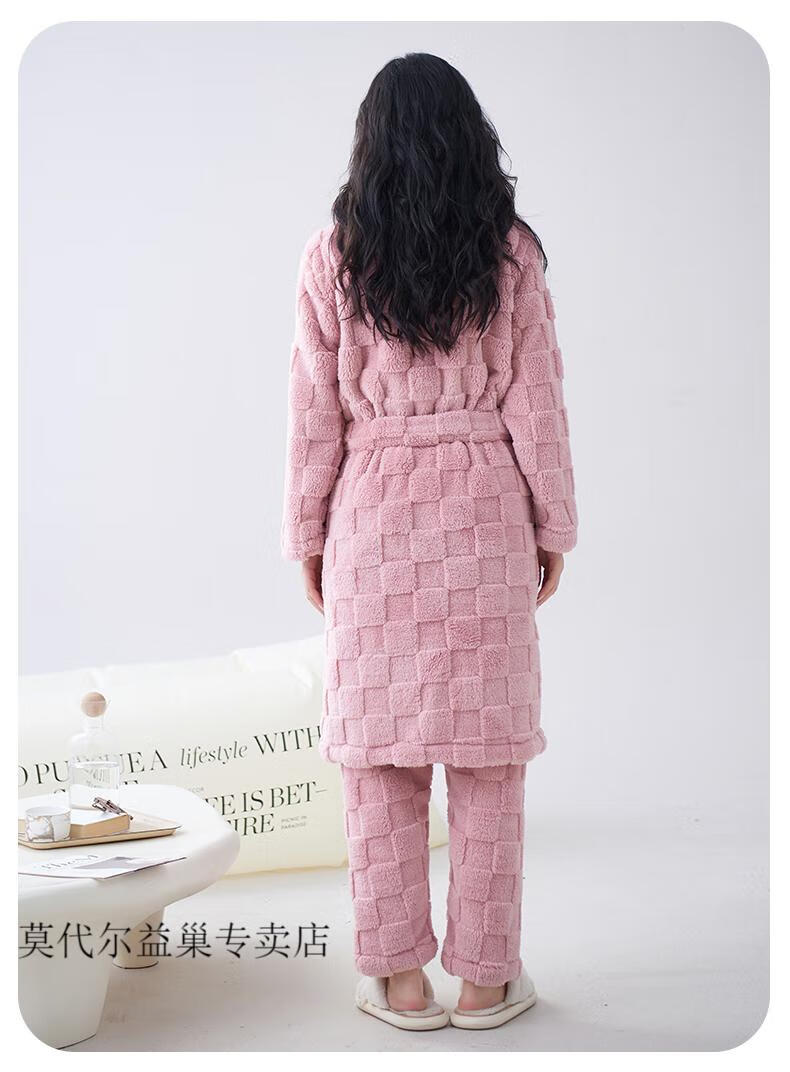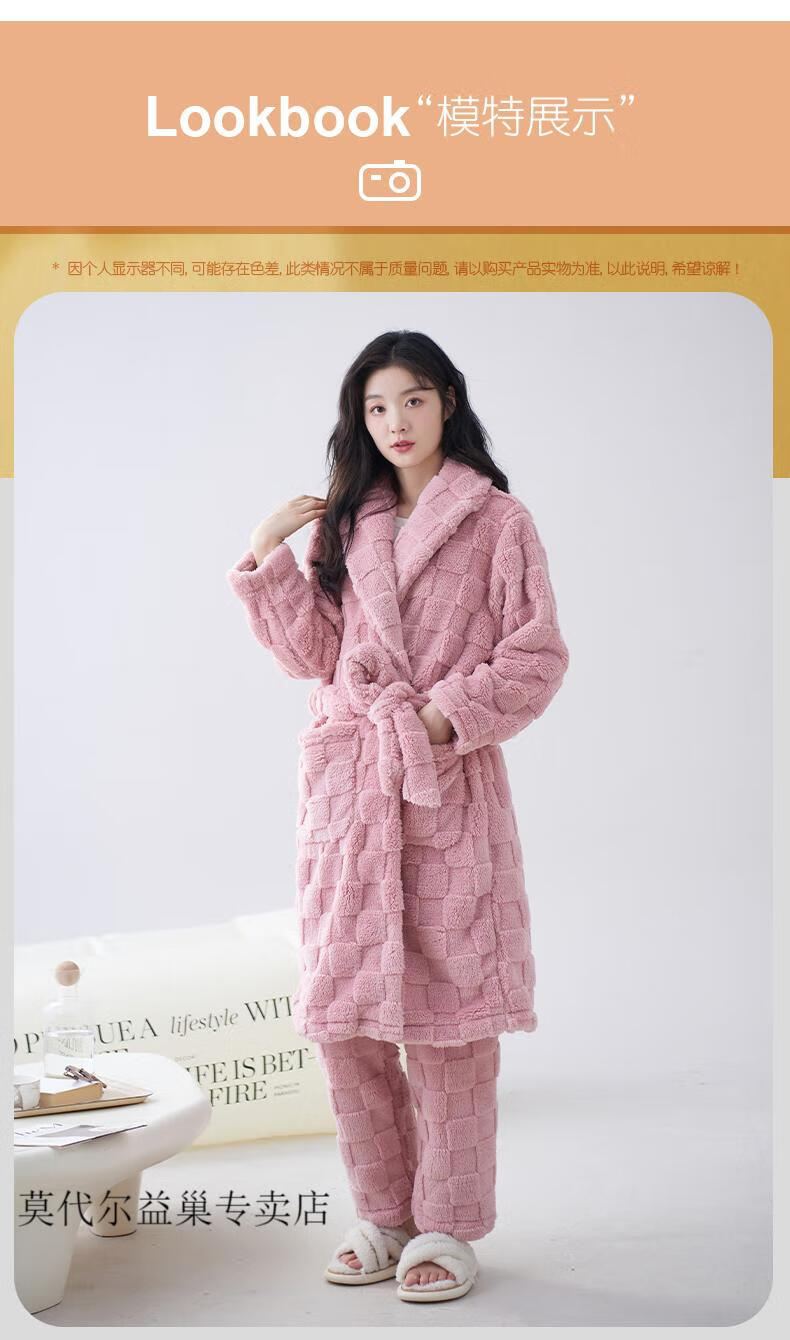 莫代尔女士睡衣女珊瑚绒2025新款秋冬加绒加厚保暖浴袍法兰绒家居服睡袍 主图款RK:528女 【睡袍+睡裤】 L (推荐100-120斤)