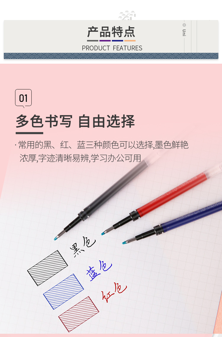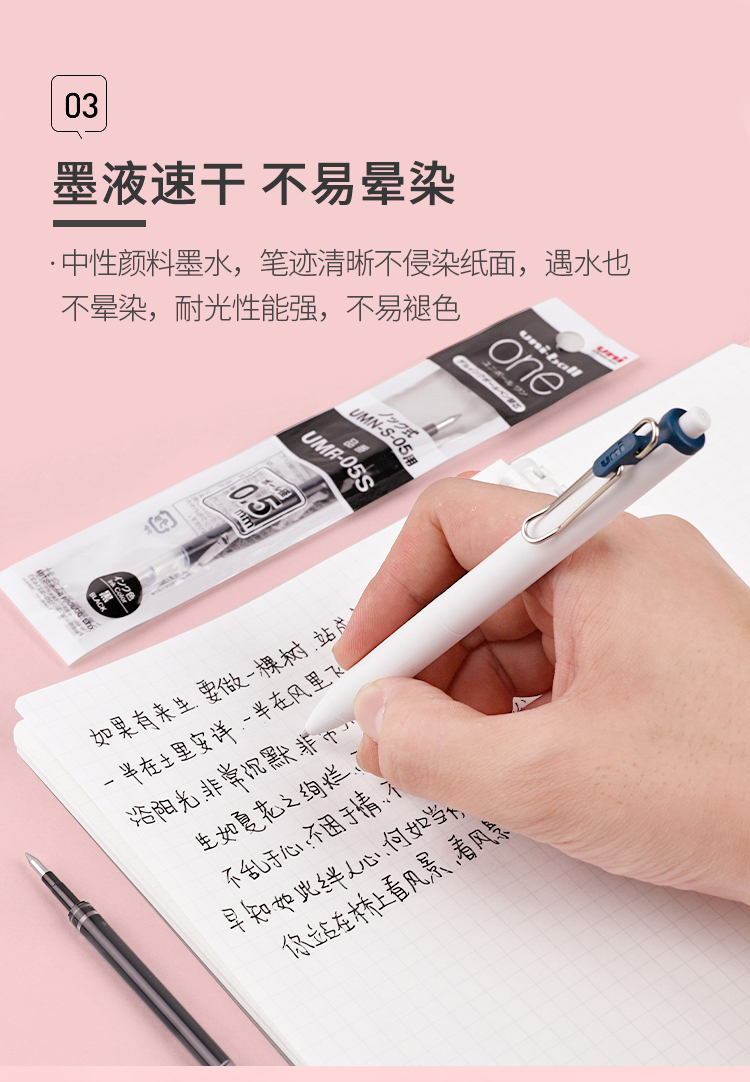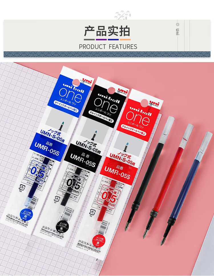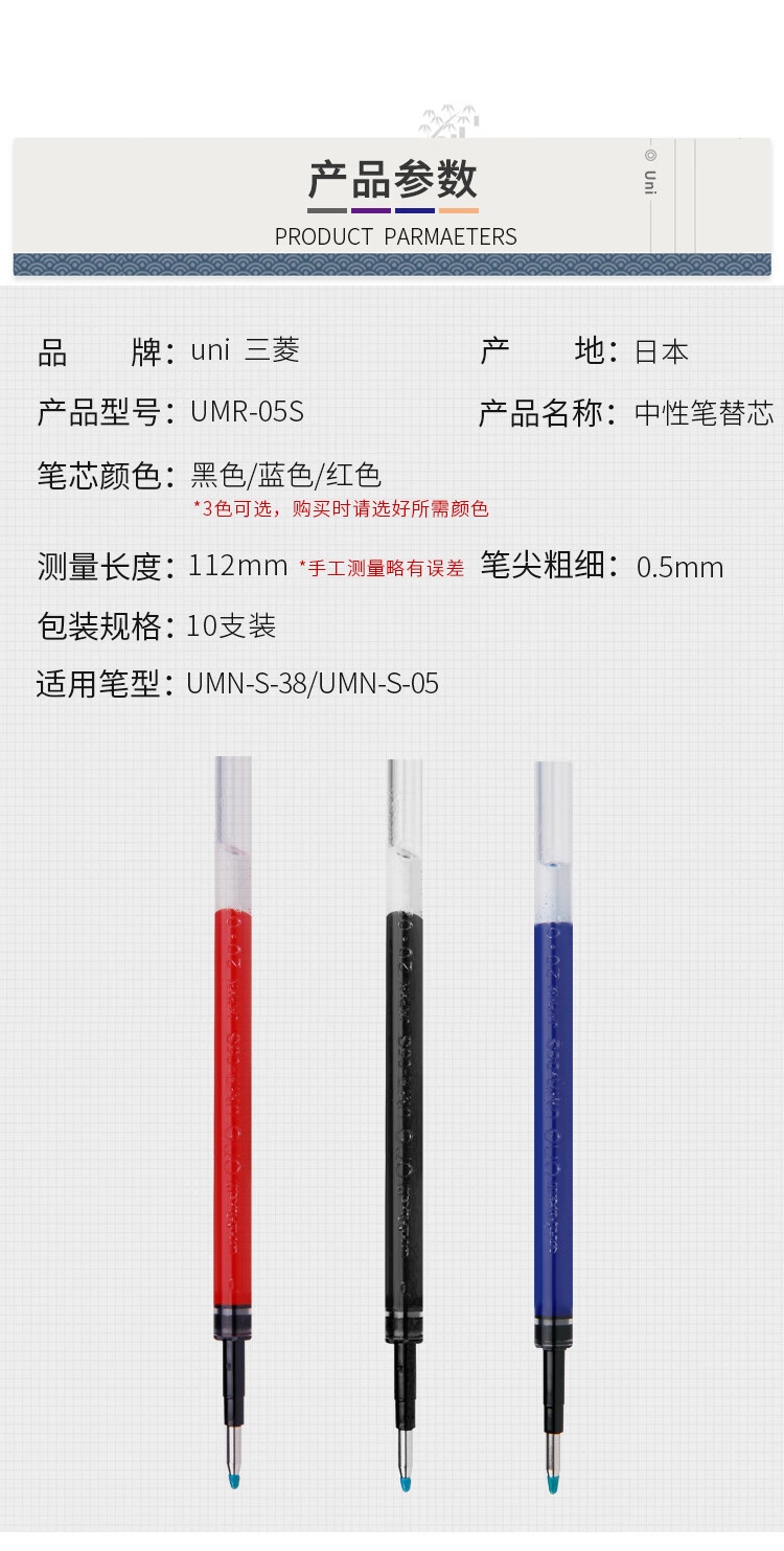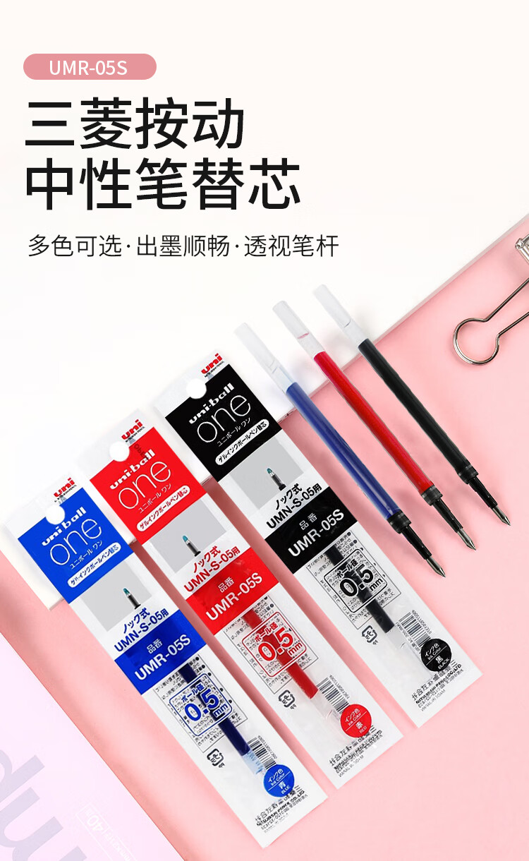 uni三菱【热门商品】 UMR-05S按动笔芯0.5mm中性笔黑色替芯 适用小浓芯ONE UMN-S-05系列 10支