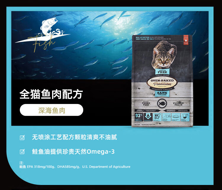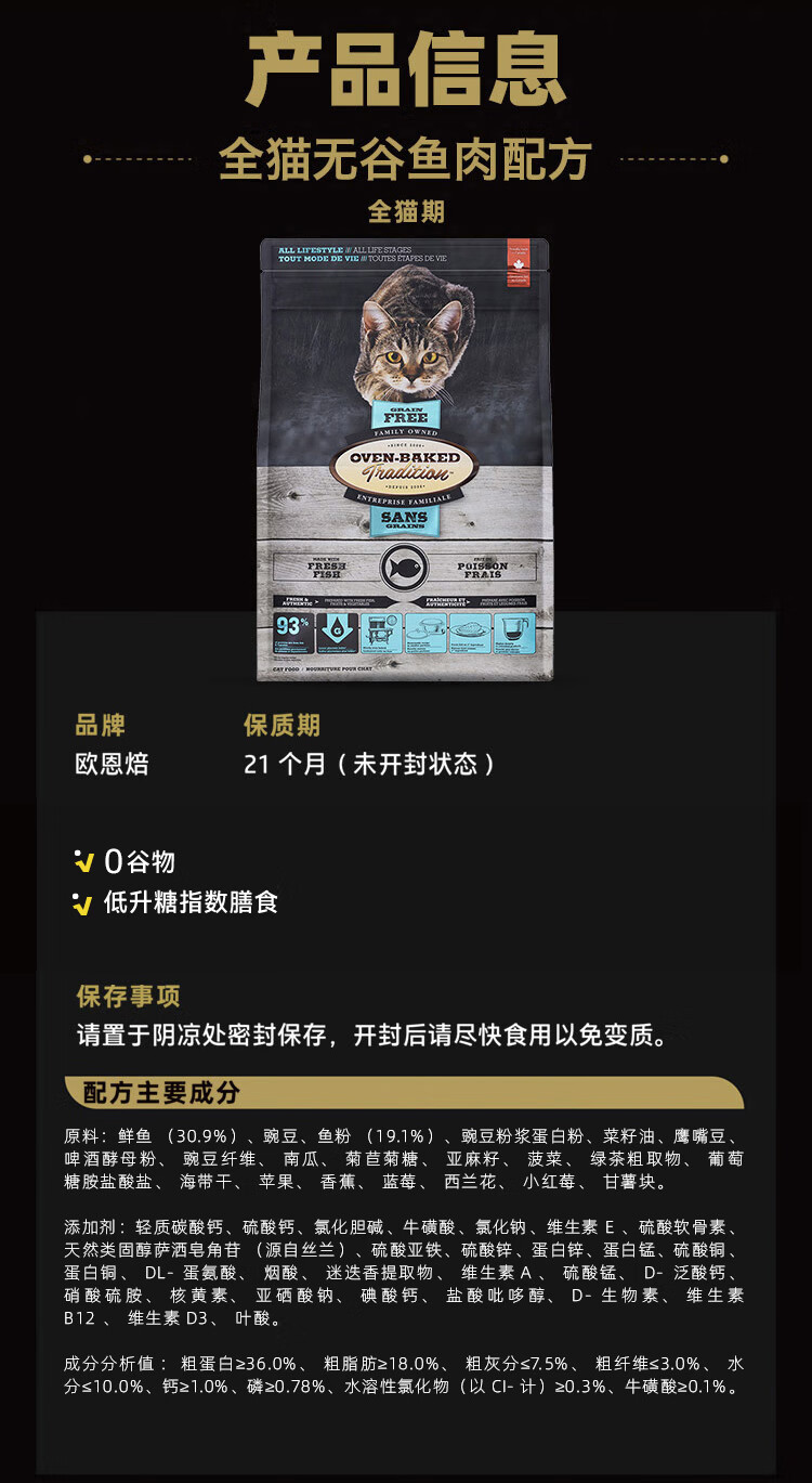 欧恩焙加拿大自营猫粮进口幼猫全价无谷烘焙鱼肉味10磅【4.54kg】