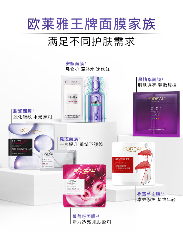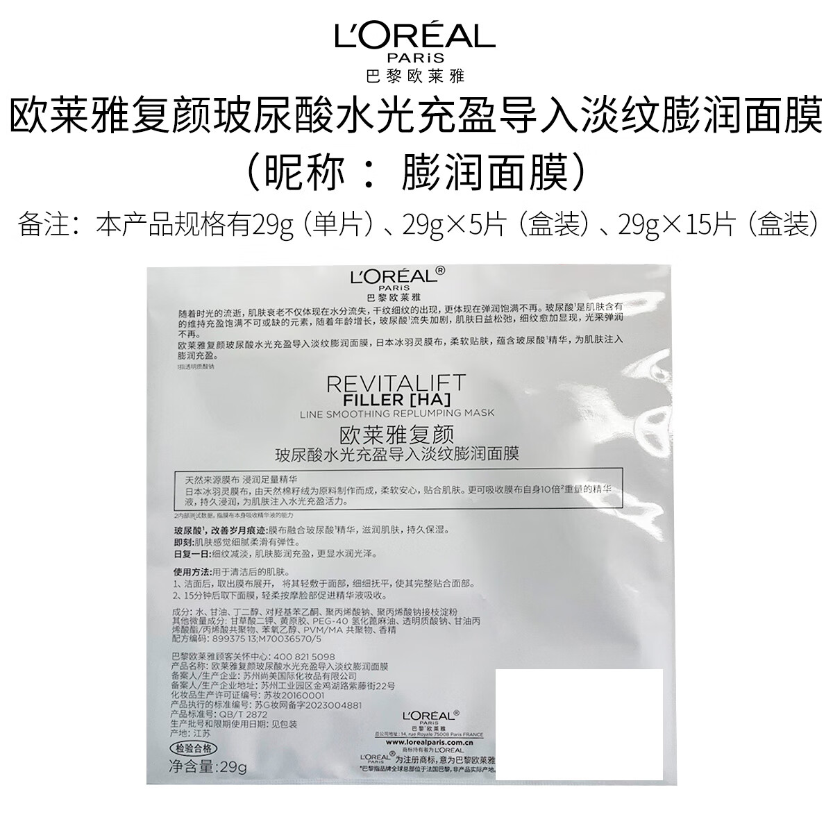 欧莱雅膨润面膜15片补水保湿抗皱紧致护肤品化妆品圣诞礼物