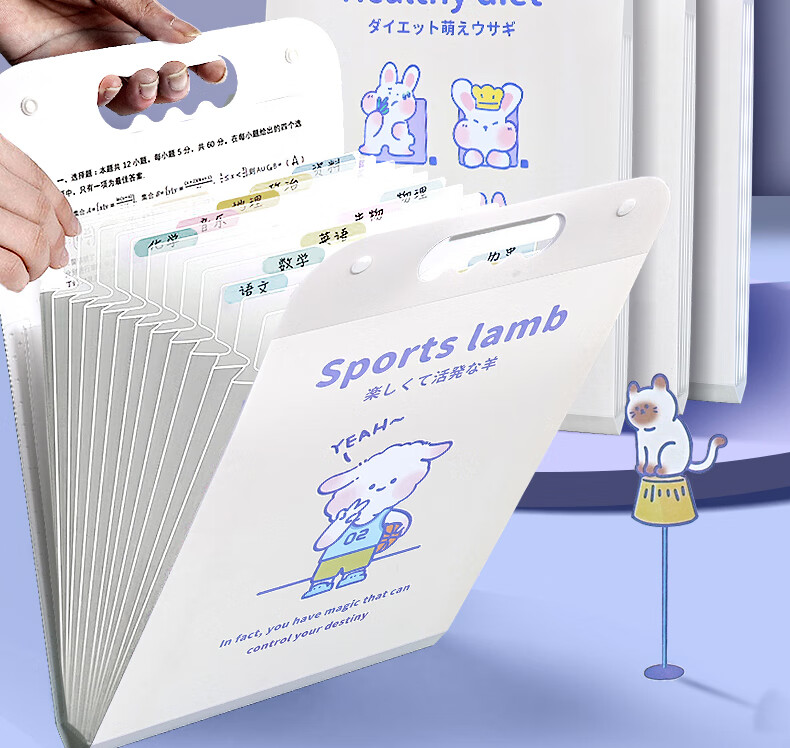 【开学必备】文谷(Wengu)a4/13层竖式搭扣风琴包多层文件夹 学生卡通试卷收纳神器大容量文件袋整理夹 FQB-055活力小羊B