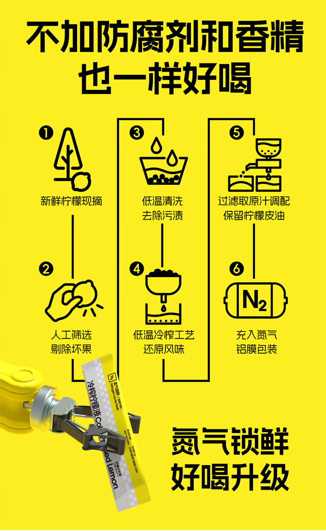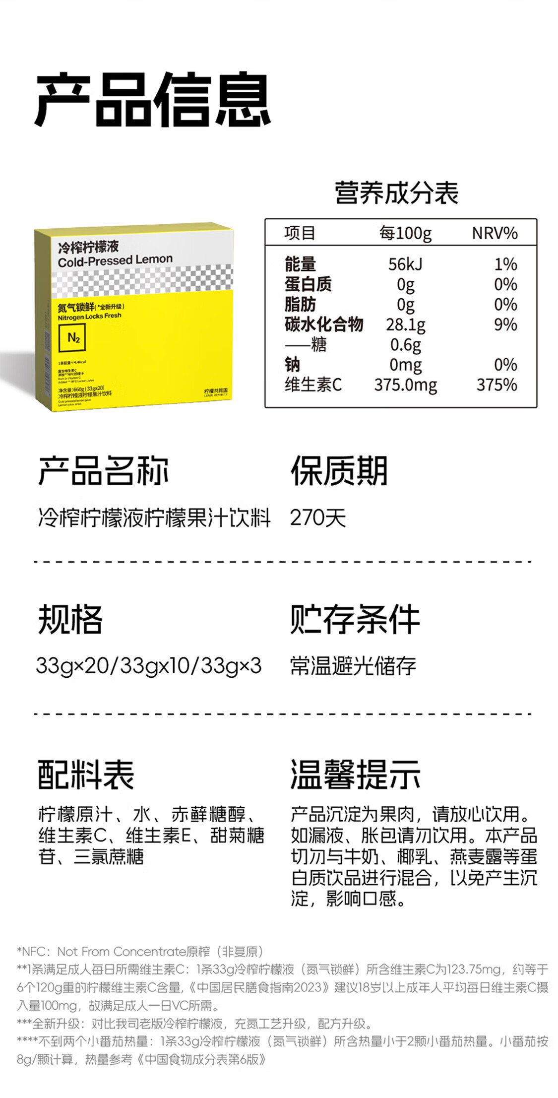 柠檬共和国(Lemon Republic)冷榨柠檬液NFC柠檬汁维C办公室下午茶复合果汁饮料冲饮33g*20条装