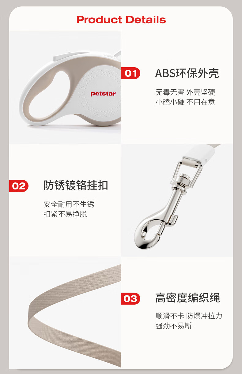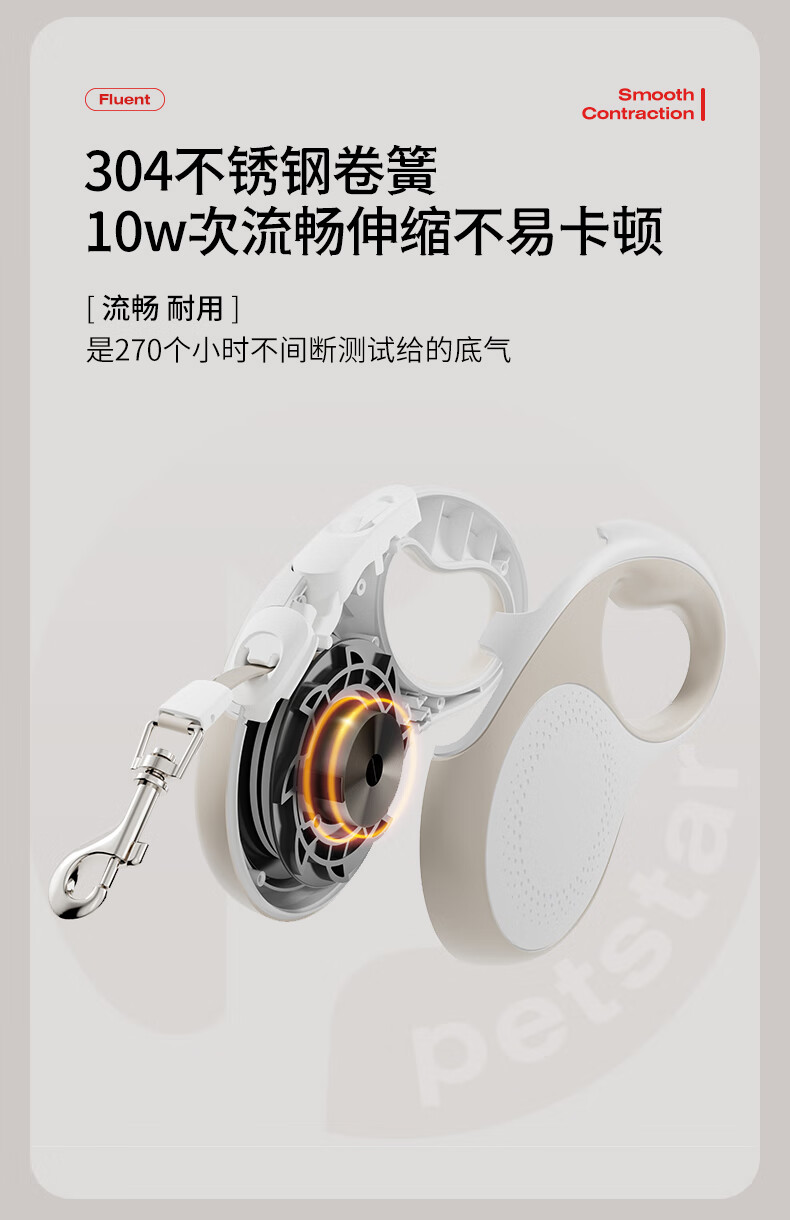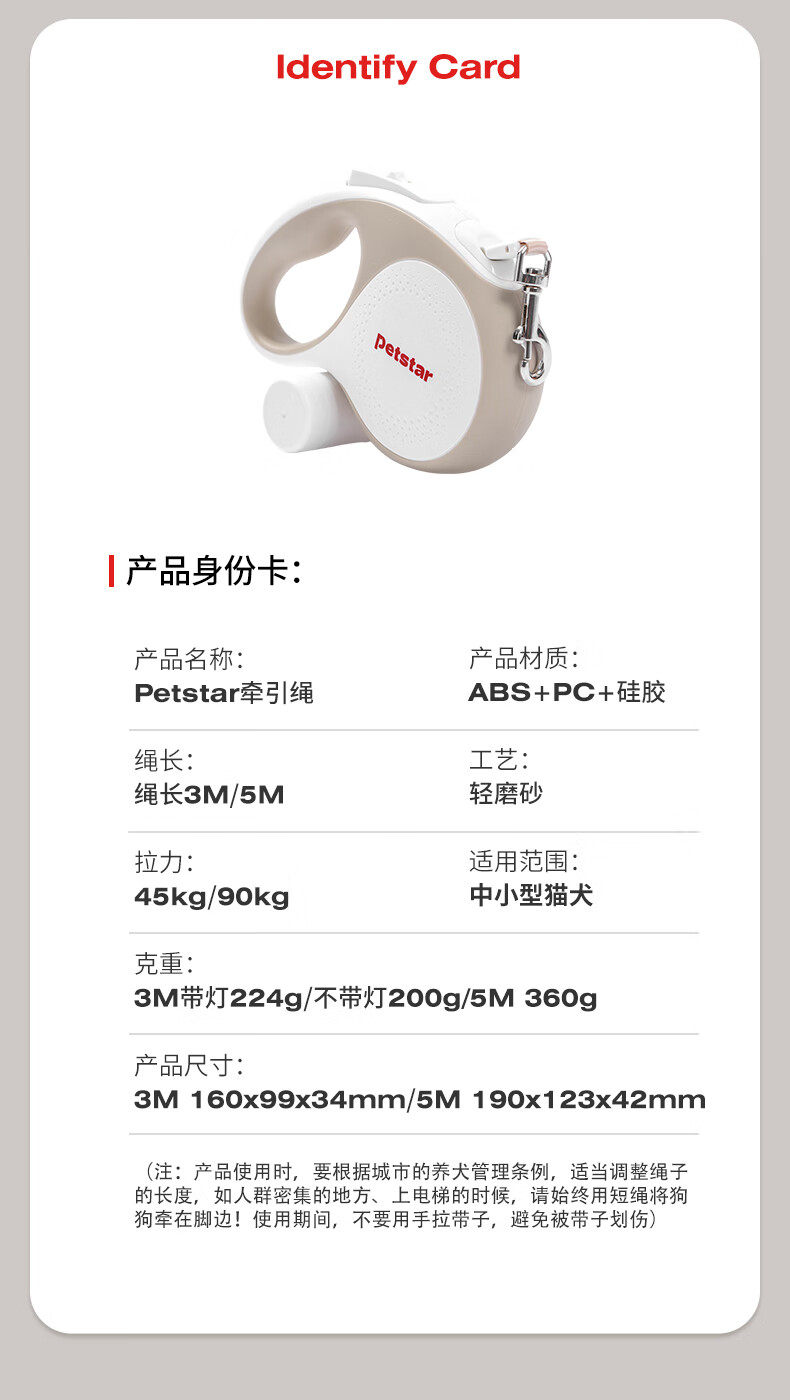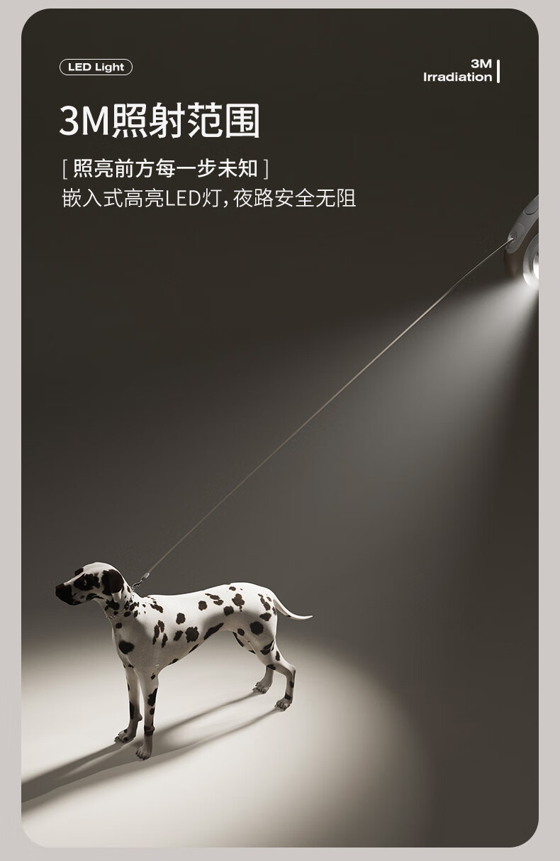 PETSTAR狗狗牵引绳照明灯3M自动可伸缩遛狗绳子中小型犬柯基宠物用品