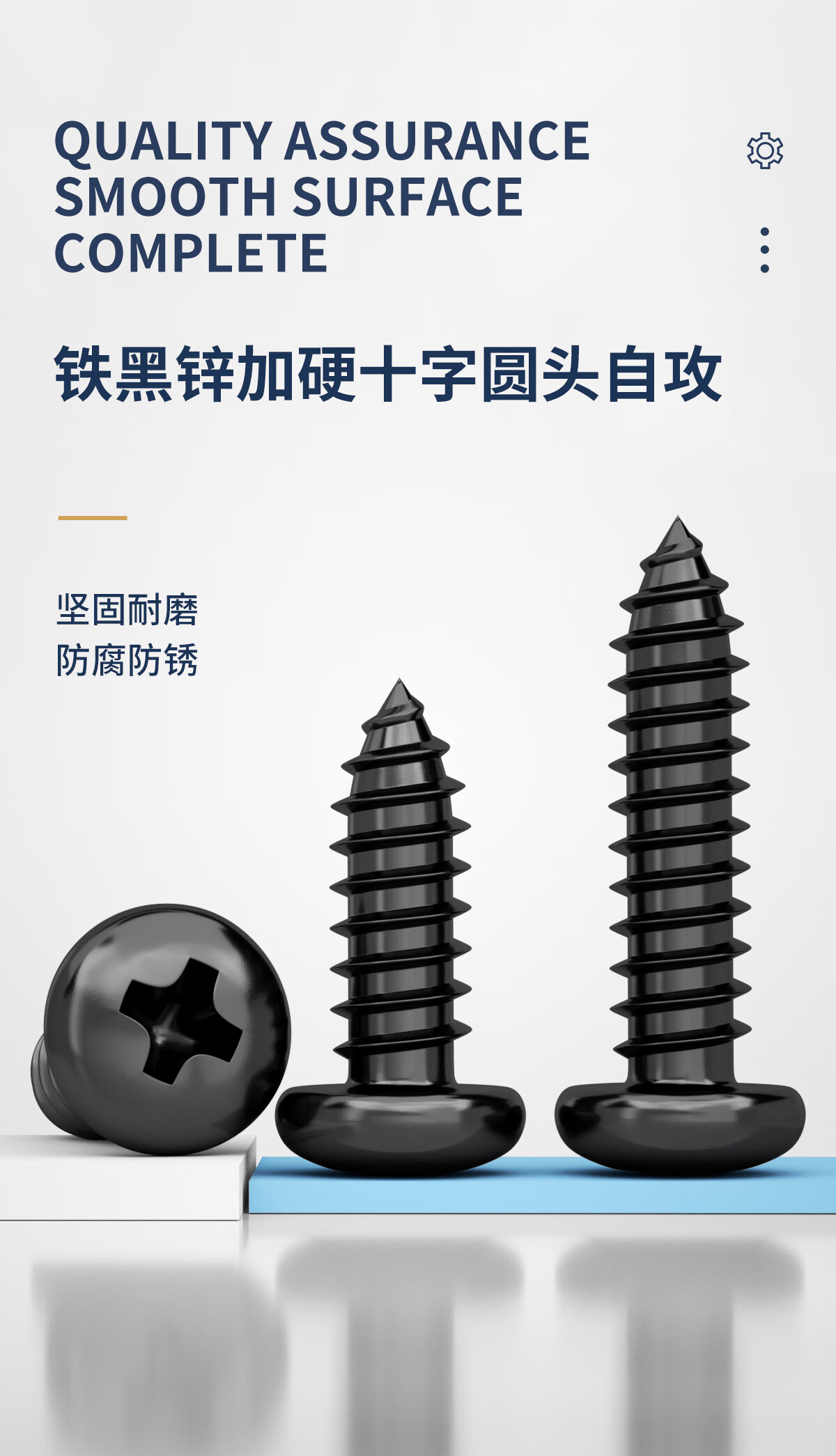 固万基(GUWANJI)PA 加硬铁黑锌发黑色十字盘头自攻小螺丝电子圆头螺钉M1M2M3M4mm M1.7x4 头3.2[1000只]