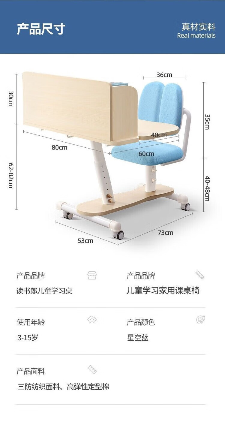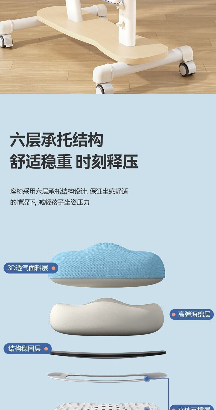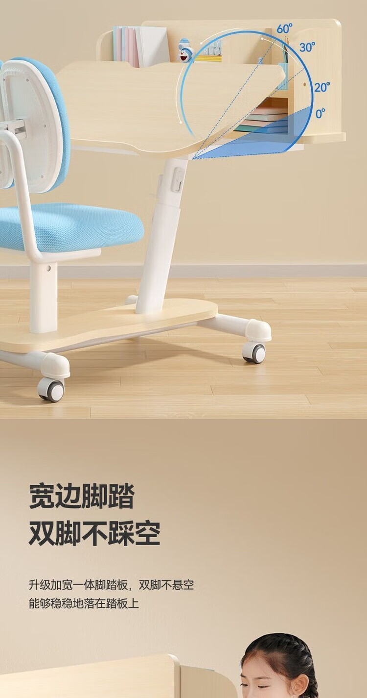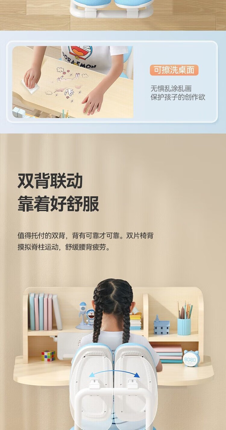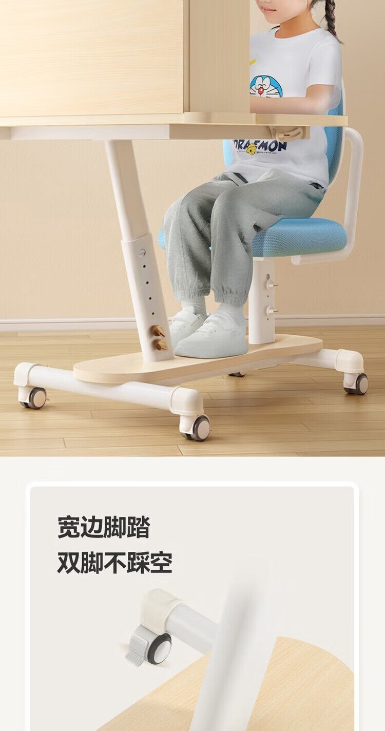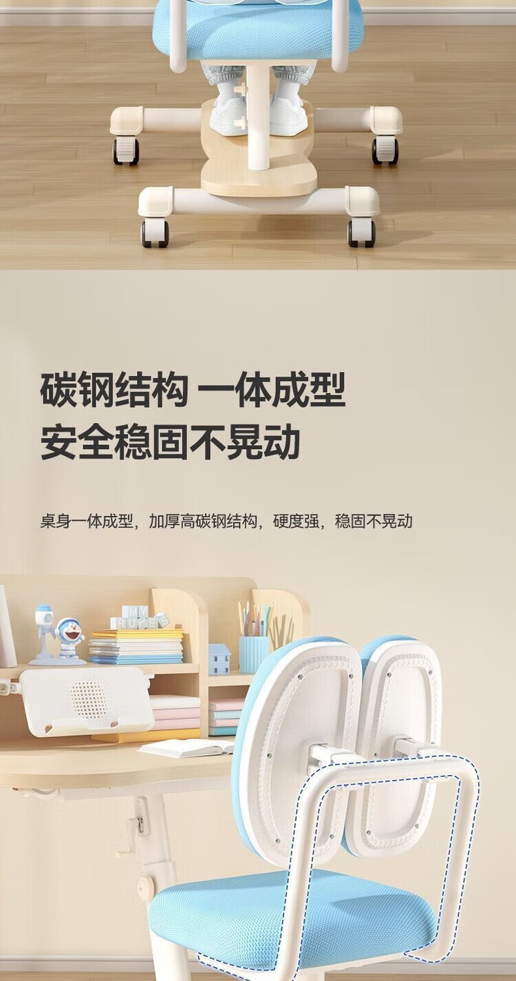弘星隆儿童学习桌一体式小学生可升降书桌带轮可移动家用简约套装 可移动一体桌+双层书架+追背椅-粉