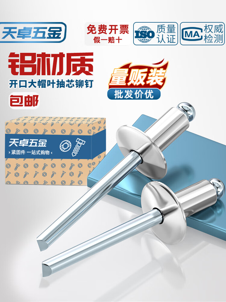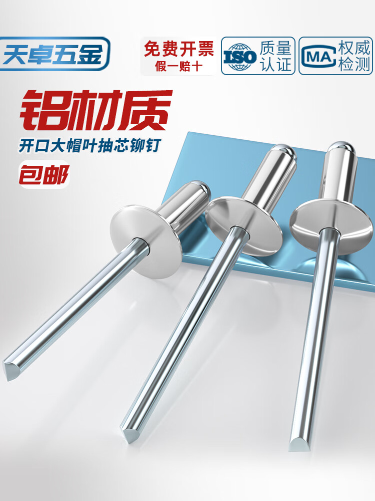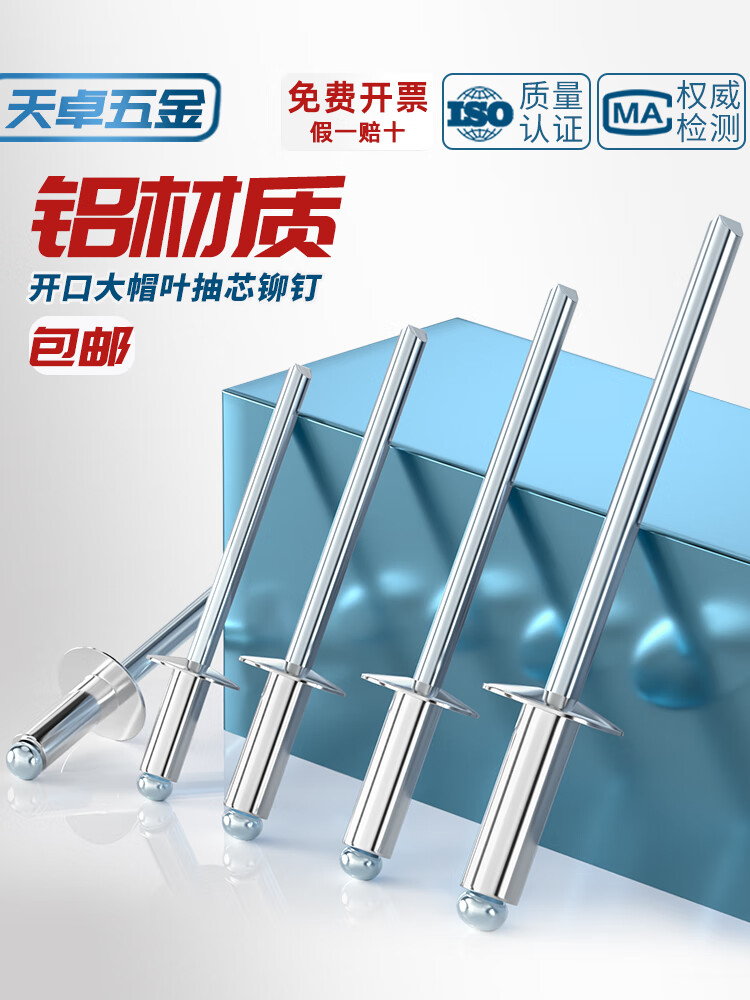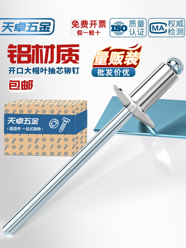 天卓五金国标铝制 大帽抽芯铆钉 圆头开口型 大头拉钉 大扁头汽车拉铆钉 Φ4*14*12【100个】