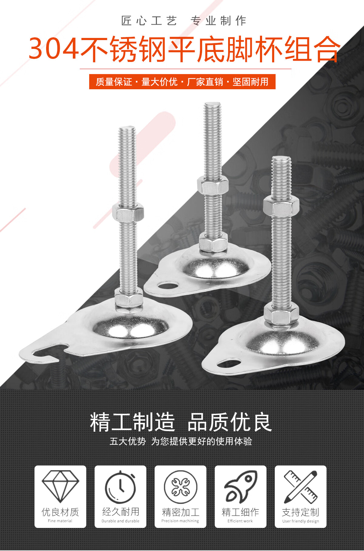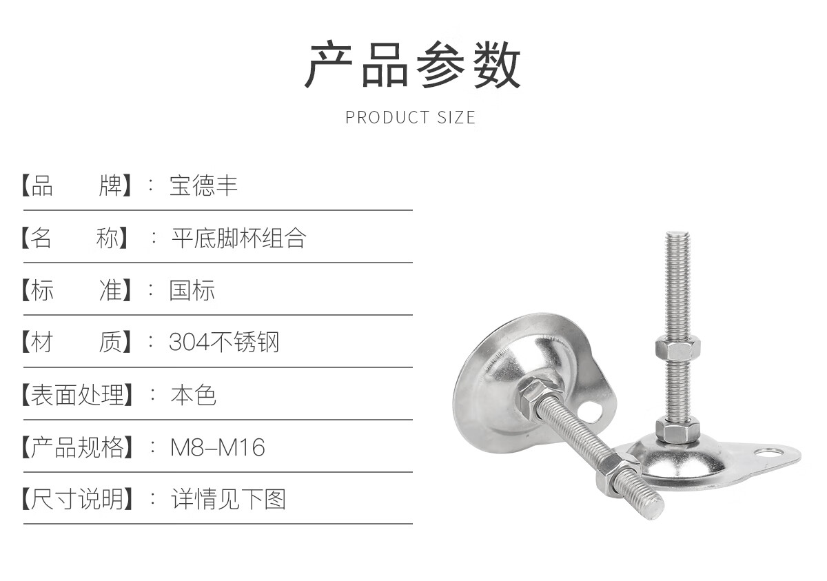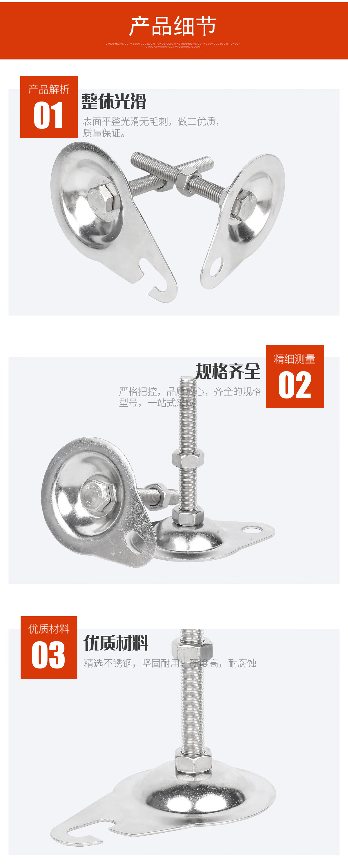 宝德丰304不锈钢脚杯平底带孔固定地脚带钩底座带耳朵支撑脚M8M10M12M16 带钩-M8x60[1套]
