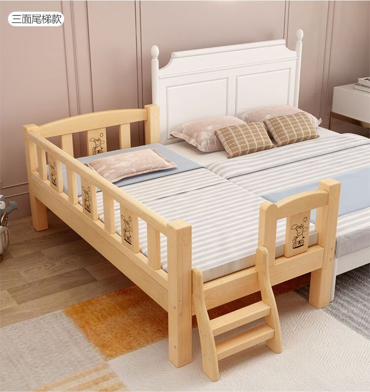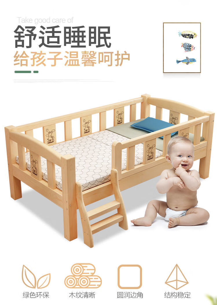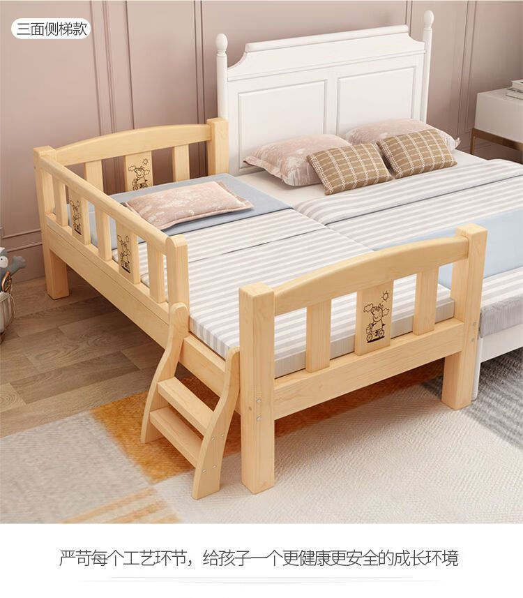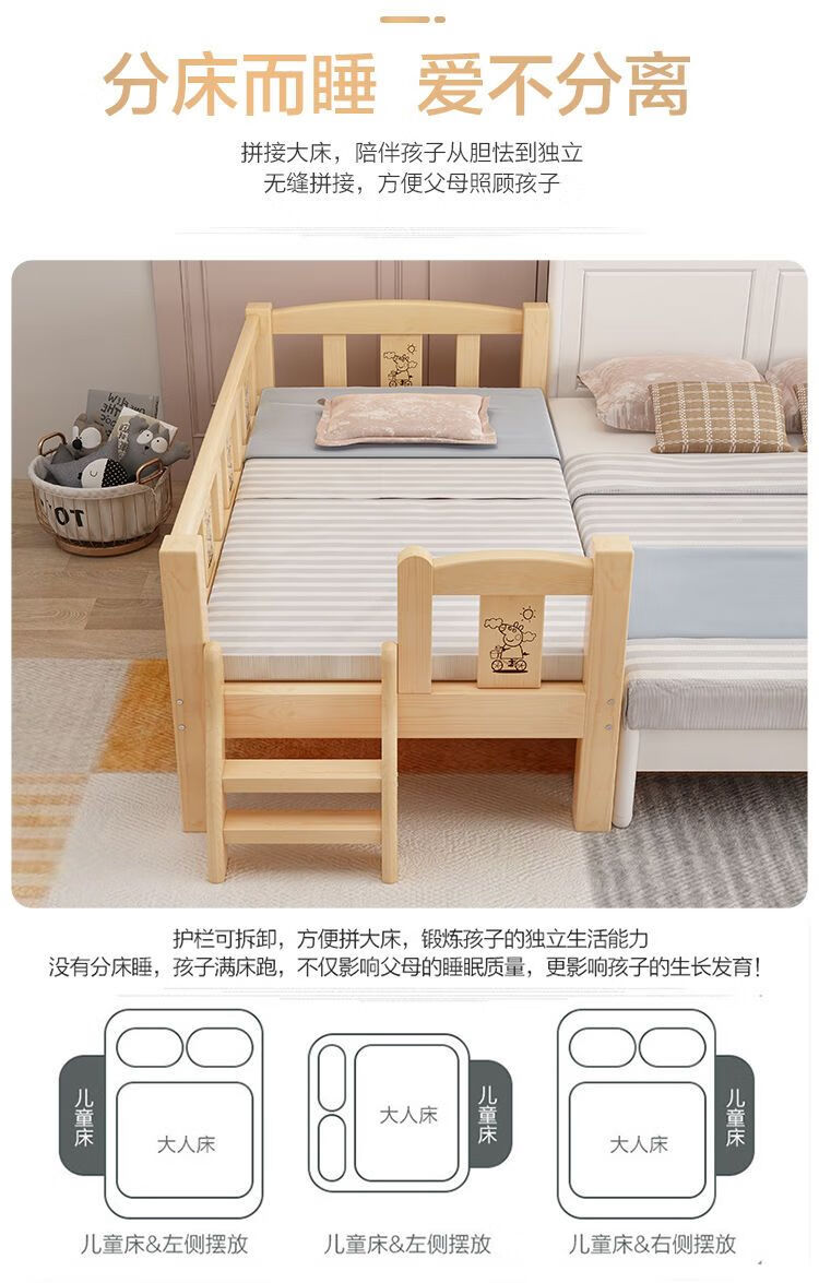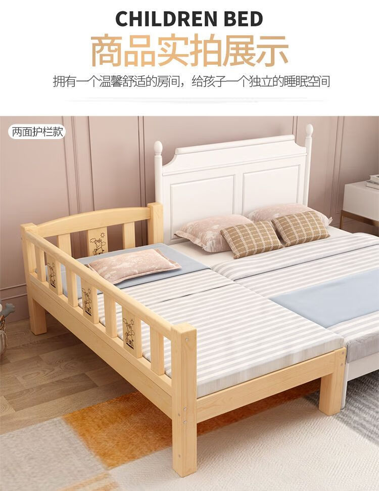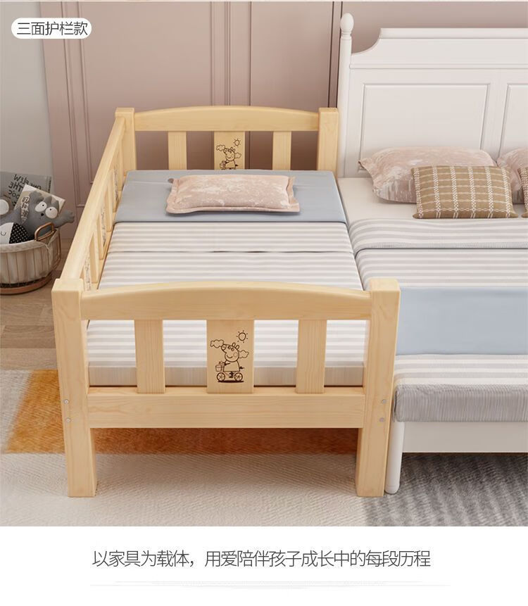 弘星隆拼接床加宽床儿童围栏床实木床带护栏男孩床女孩床婴儿床大床边床 平板款式【送3E椰棕垫】 128长*60宽*40高CM