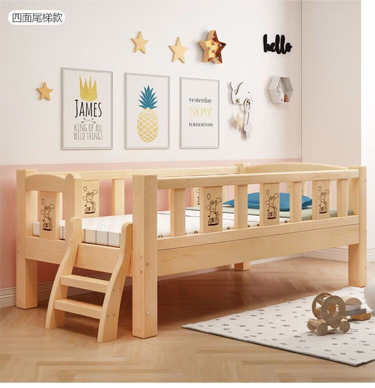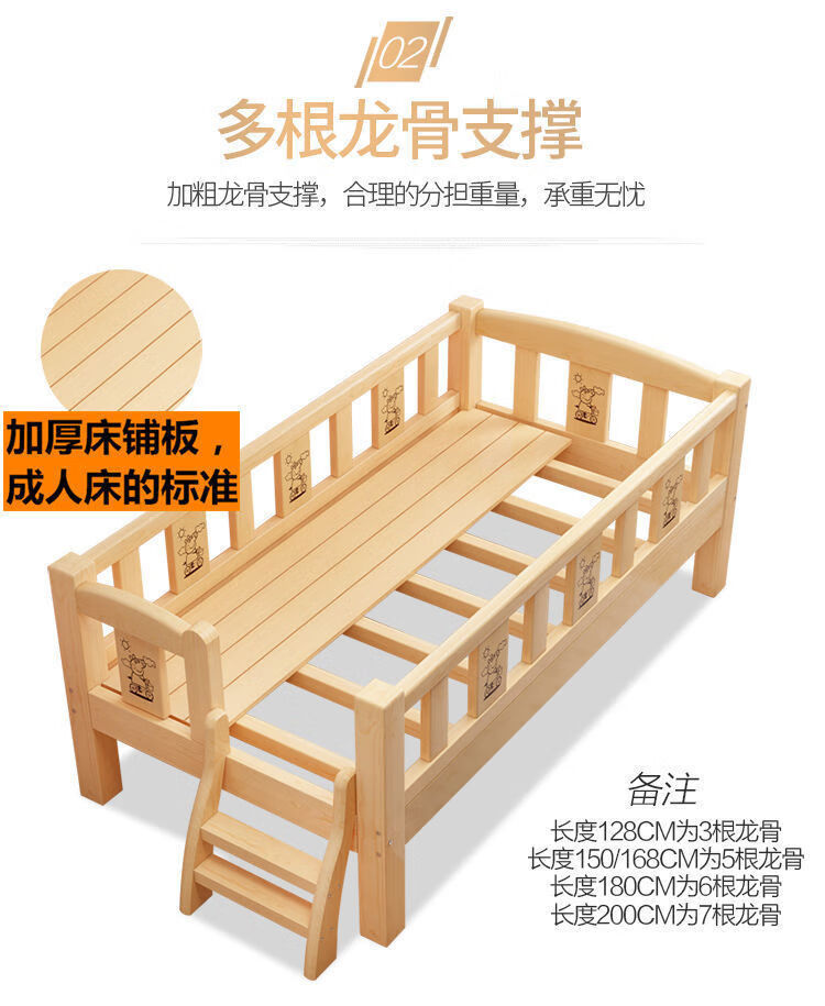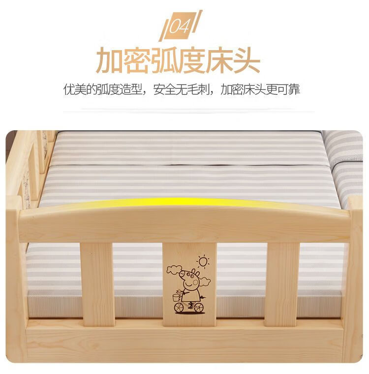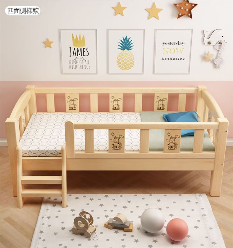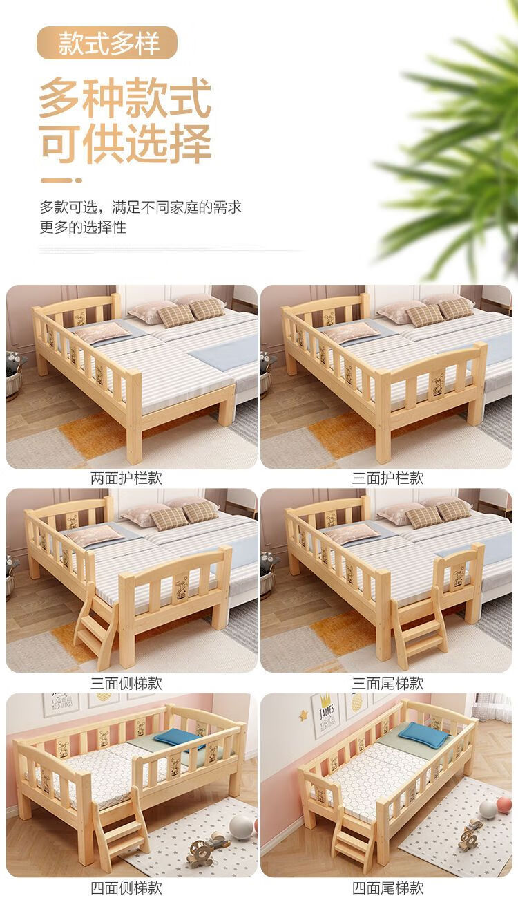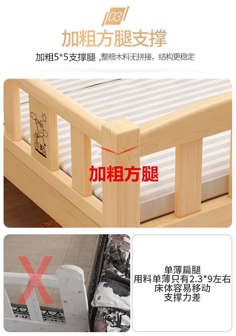 弘星隆拼接床加宽床儿童围栏床实木床带护栏男孩床女孩床婴儿床大床边床 平板款式【送3E椰棕垫】 128长*60宽*40高CM
