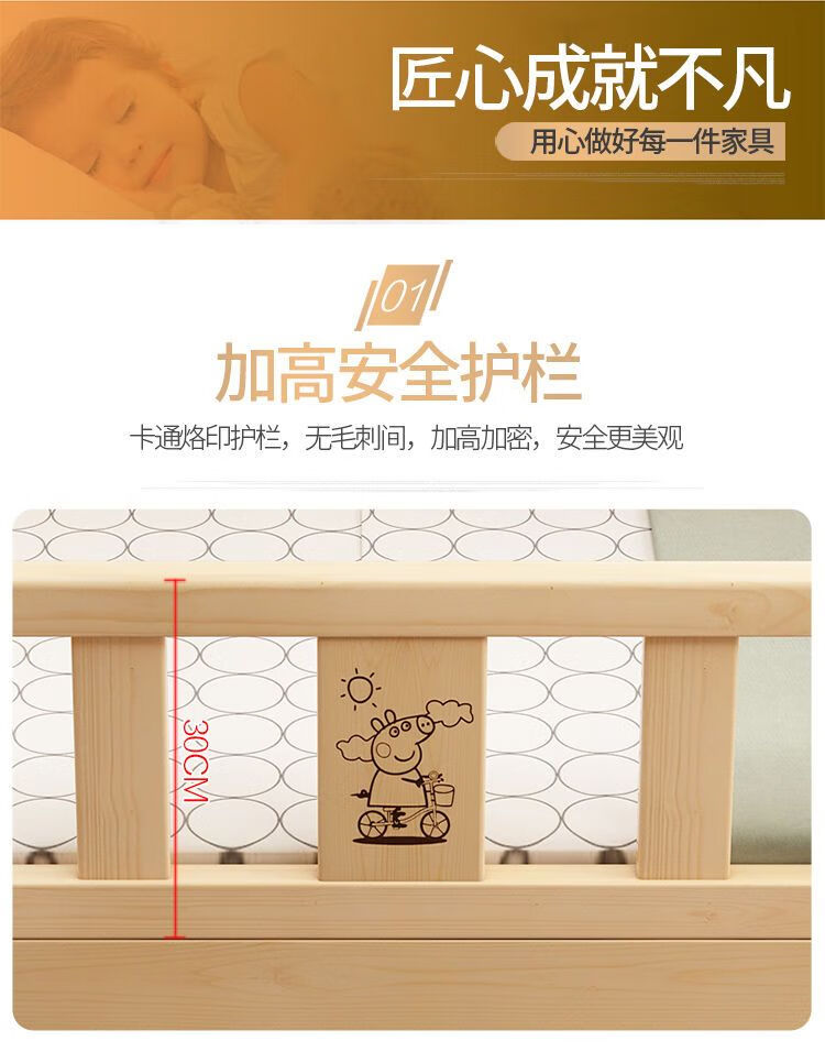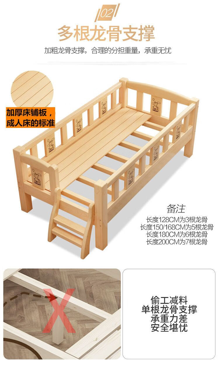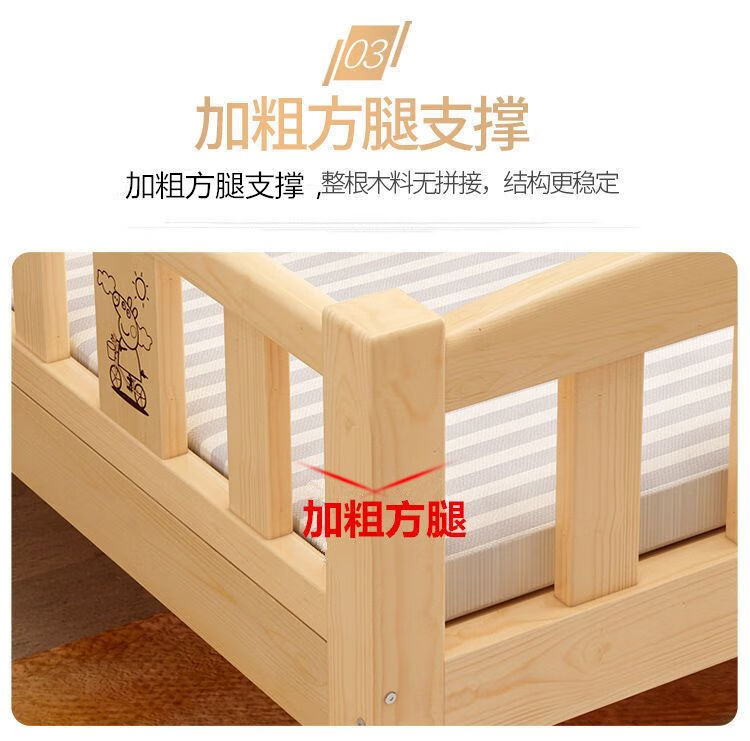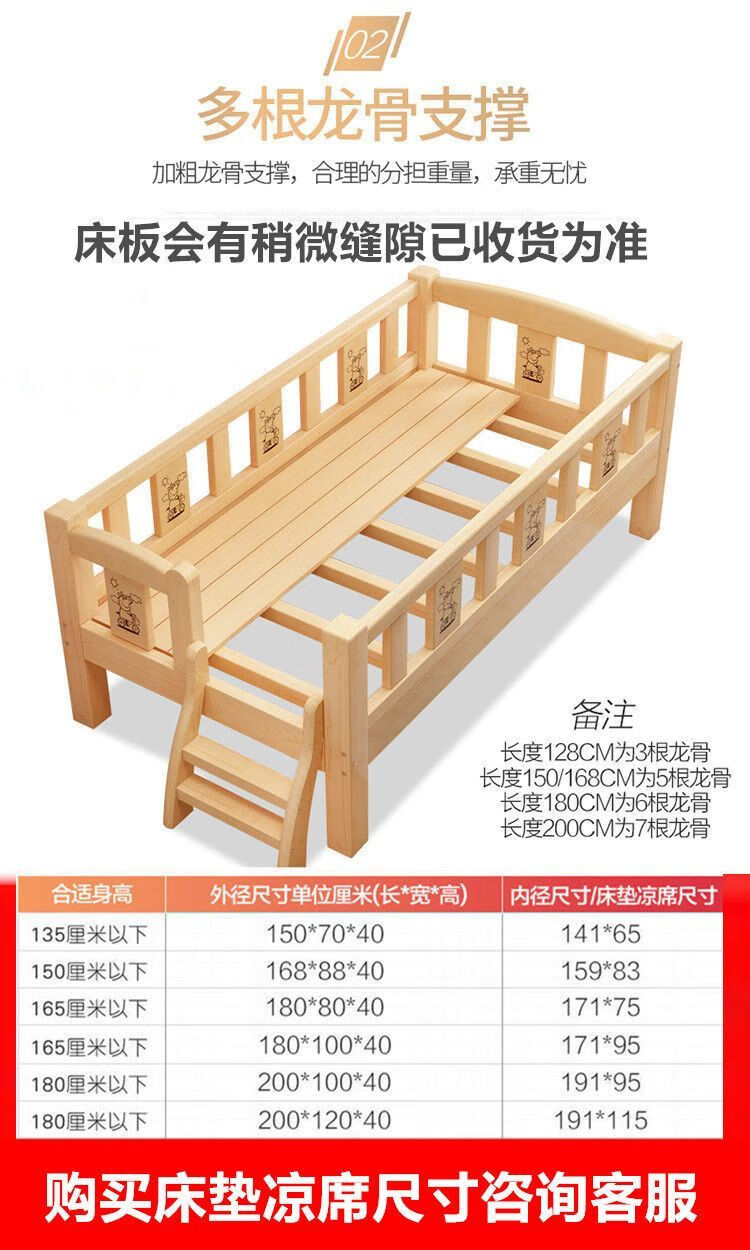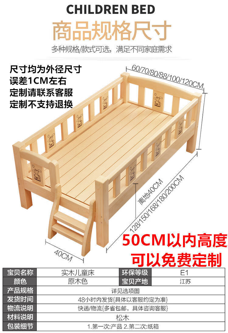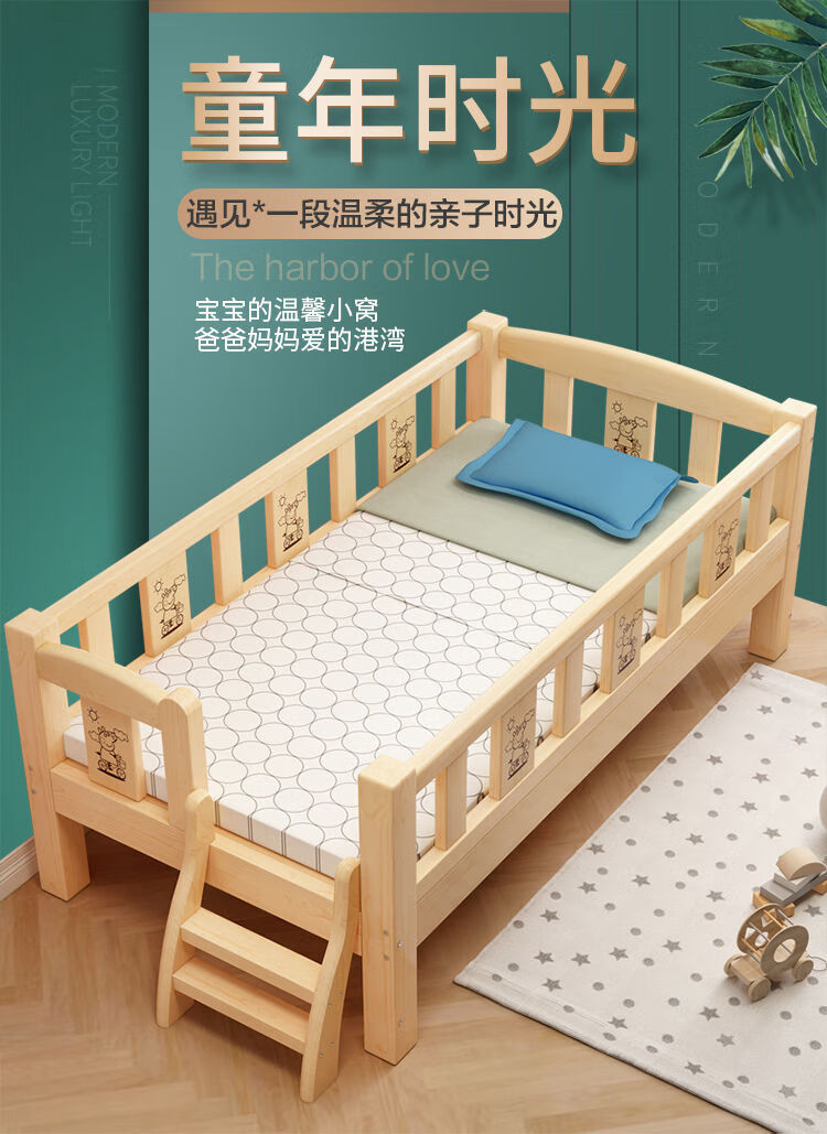 弘星隆拼接床加宽床儿童围栏床实木床带护栏男孩床女孩床婴儿床大床边床 平板款式【送3E椰棕垫】 128长*60宽*40高CM