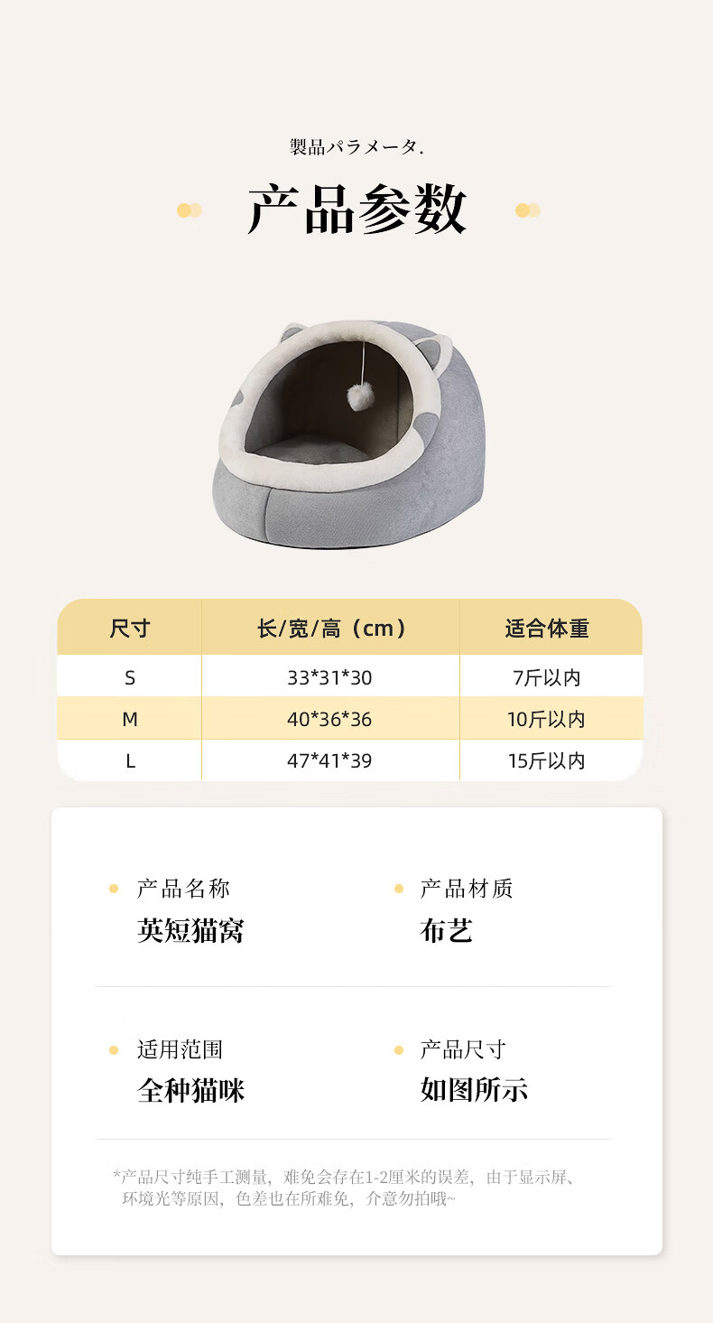 喵仙儿猫窝四季通用半封闭式狗窝蒙古包猫屋保暖小型犬宠物用品 M码