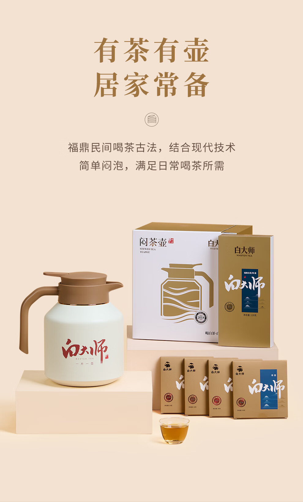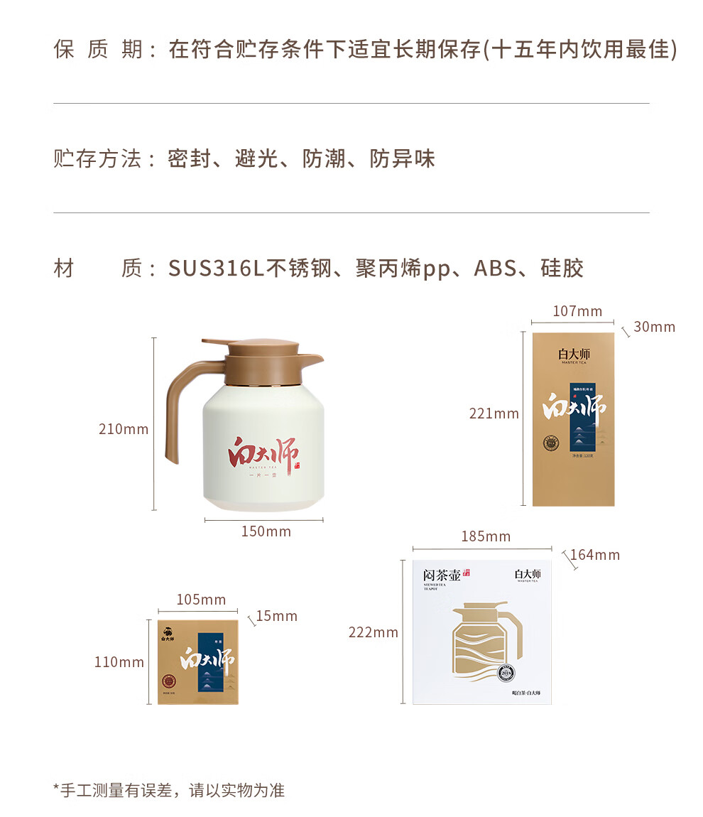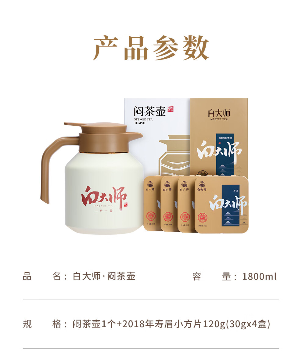 白大师白茶方片壶福鼎白茶闷茶壶闷泡壶2018年寿眉小方片120g茶叶礼盒
