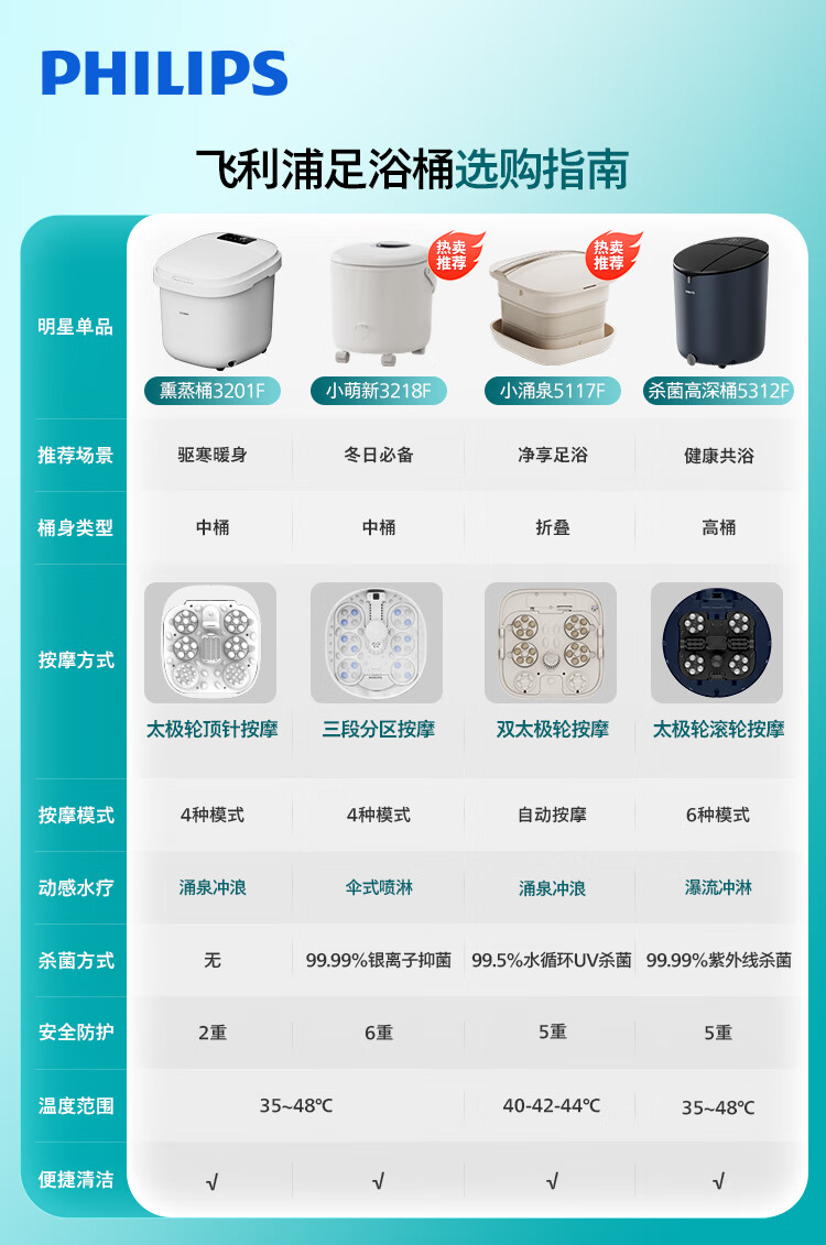 飞利浦(PHILIPS)泡脚桶自动加热按摩足浴盆银离子抑菌恒温泡脚盆足浴桶足疗机送男女友圣诞节生日礼物3218F