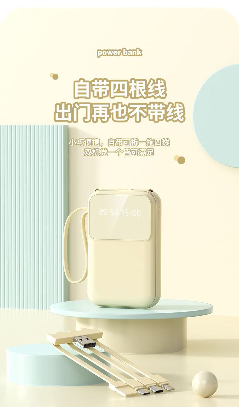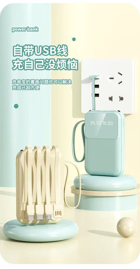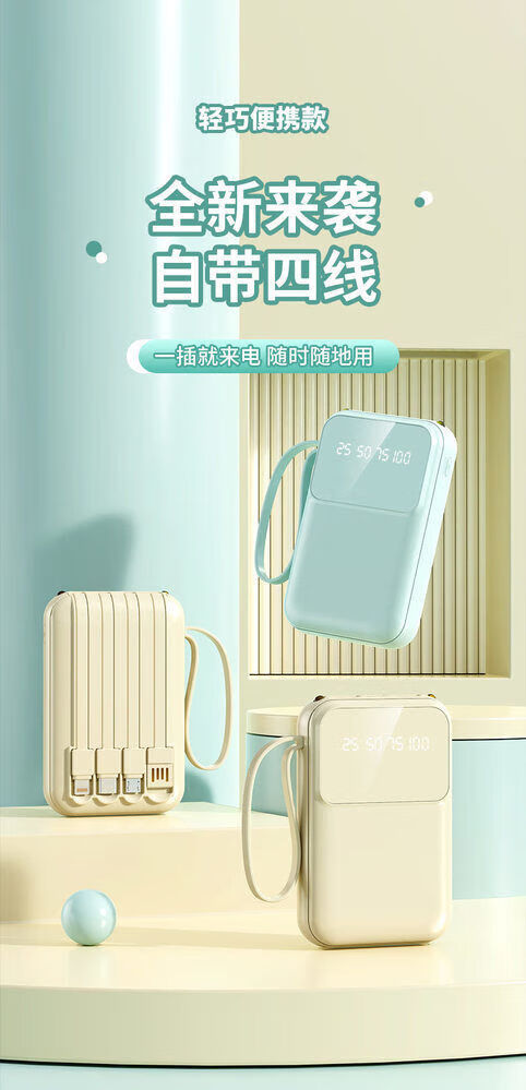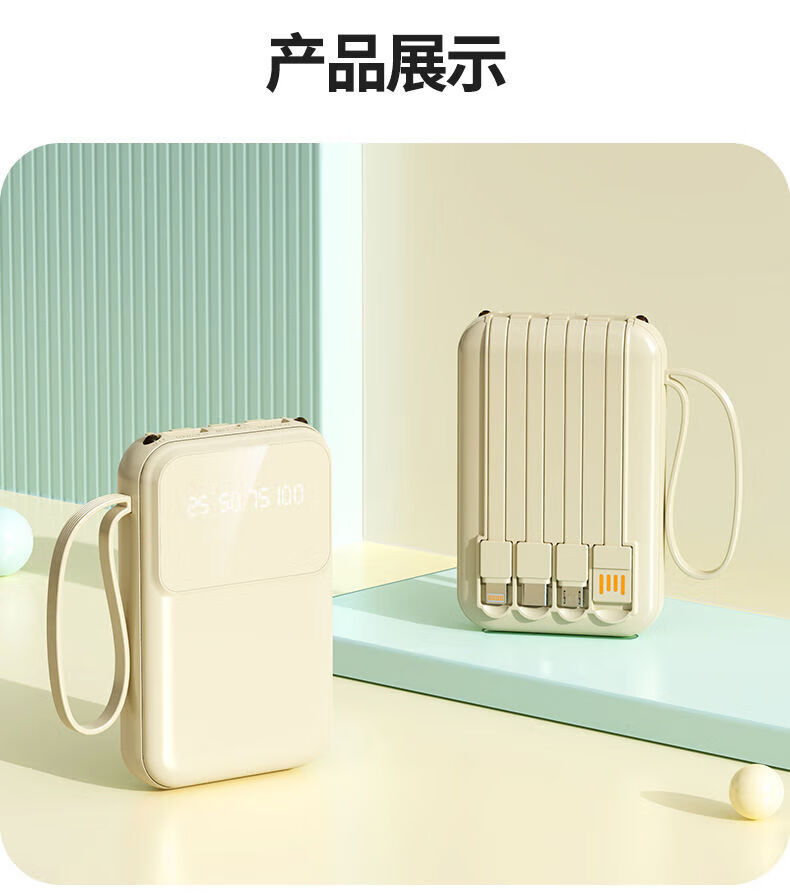 纯淳充电宝快充自带线20000毫安2w大容量户外 颜色随机