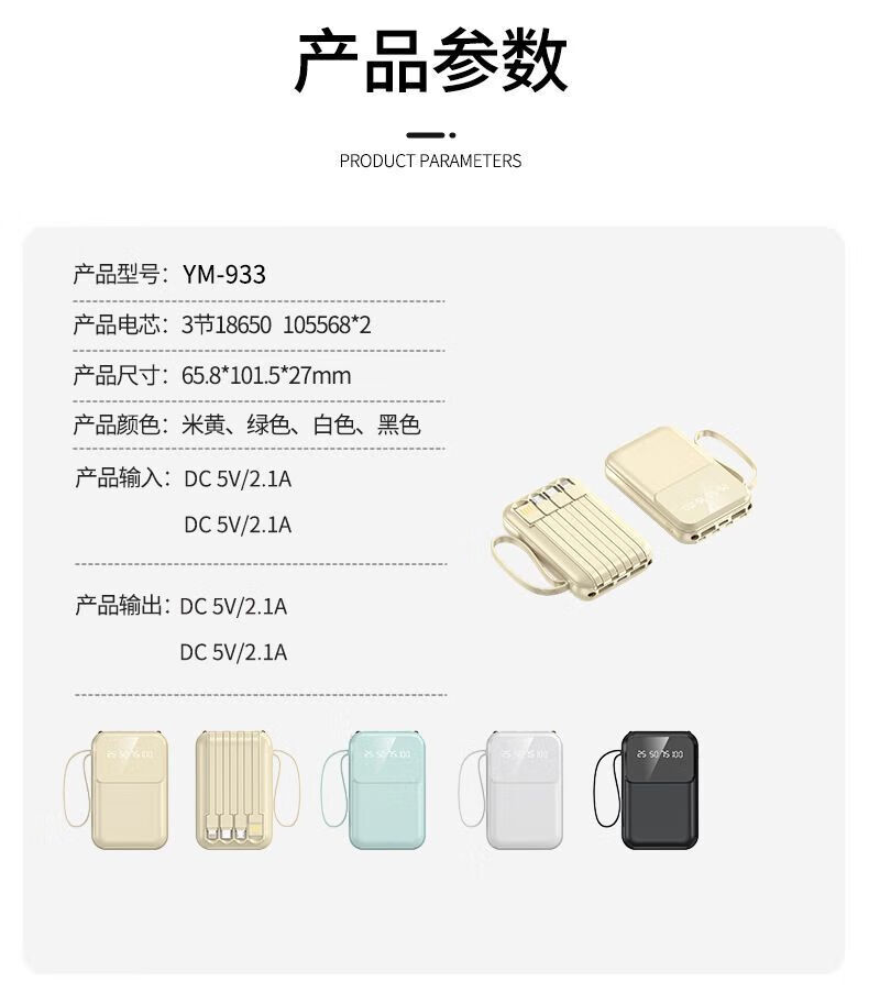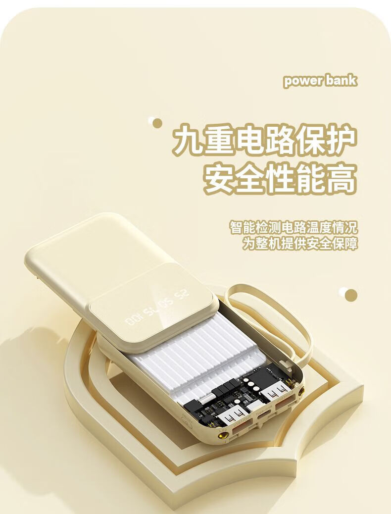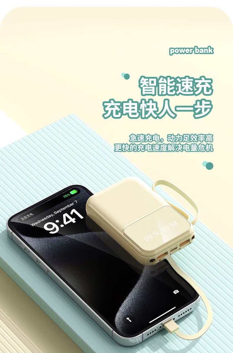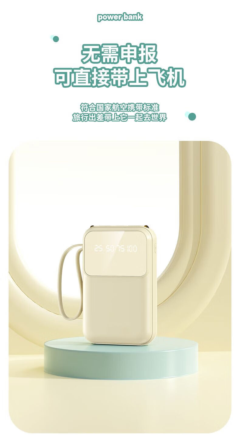 纯淳充电宝快充自带线20000毫安2w大容量户外 颜色随机