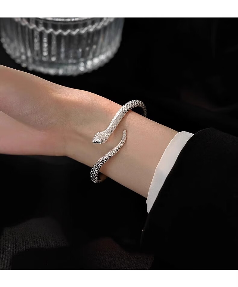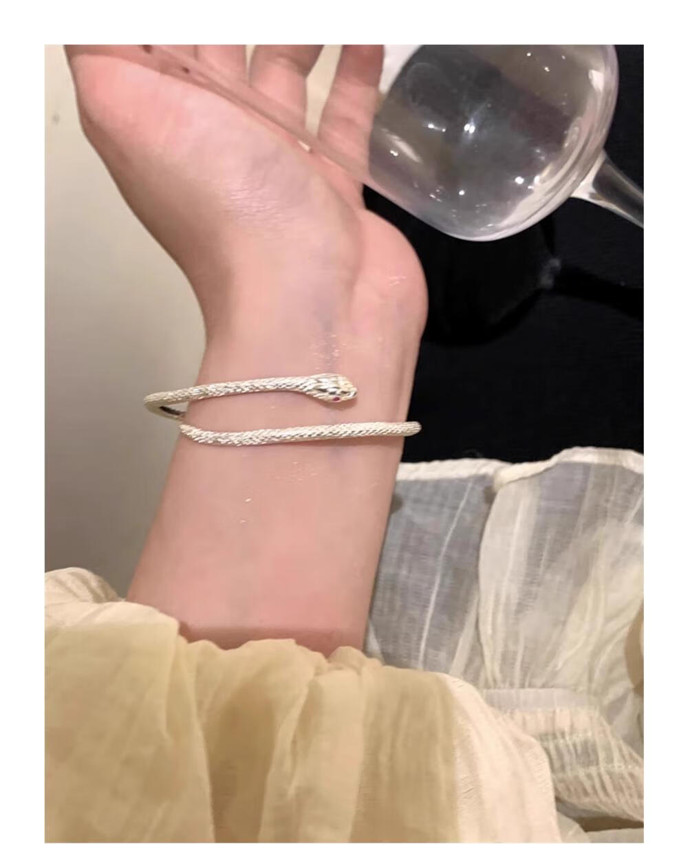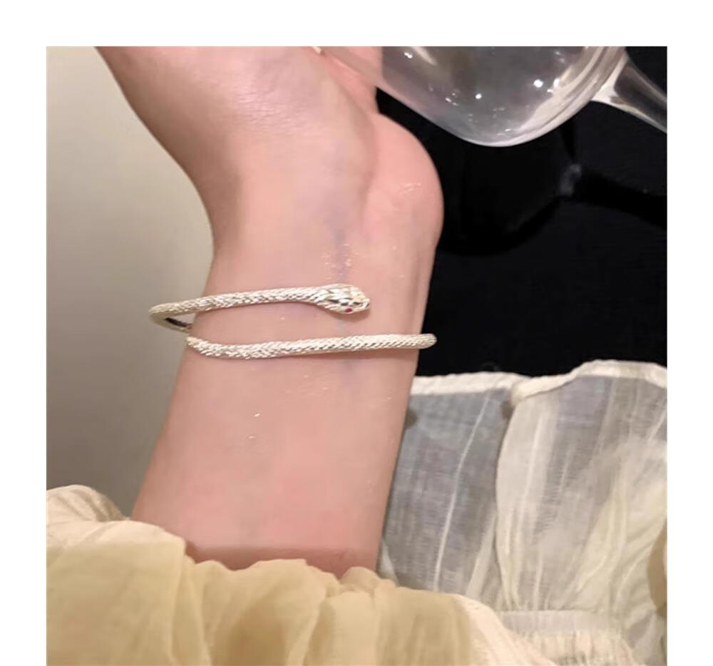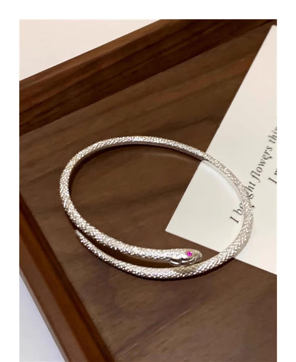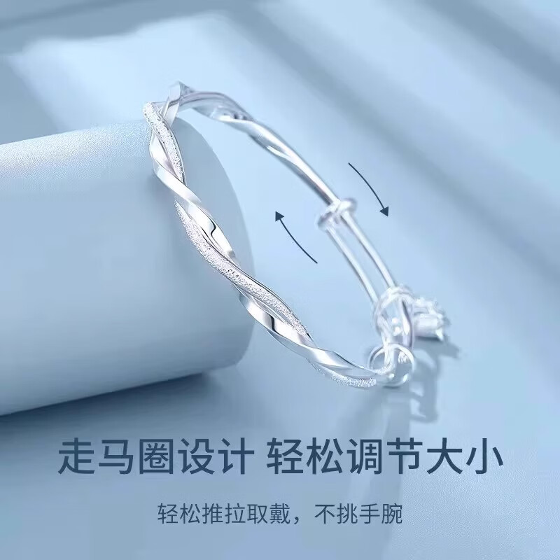 灵蛇形银手镯女纯银9999足银实心镯子本命年送女友生日礼物 25 繁花似锦银手镯