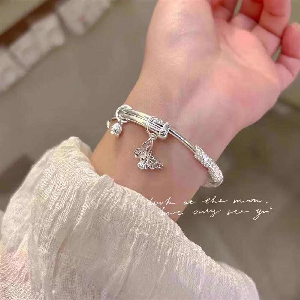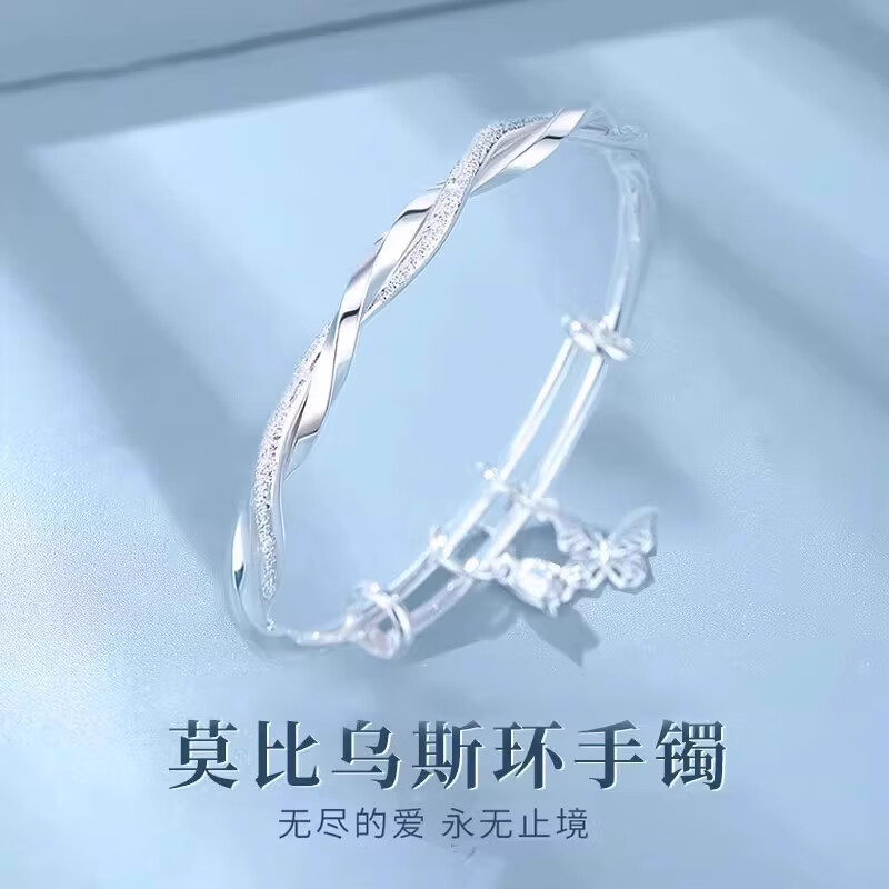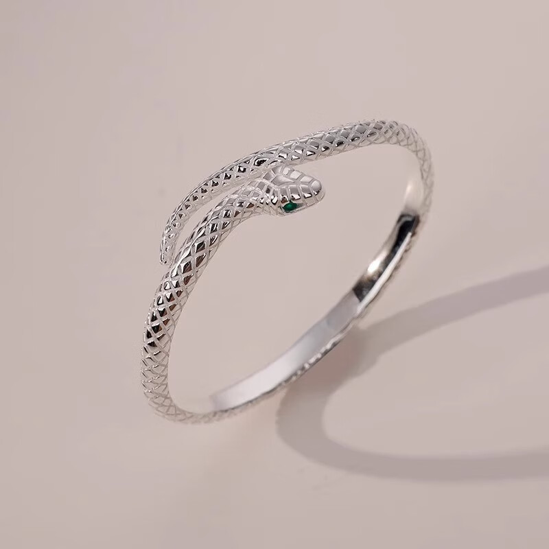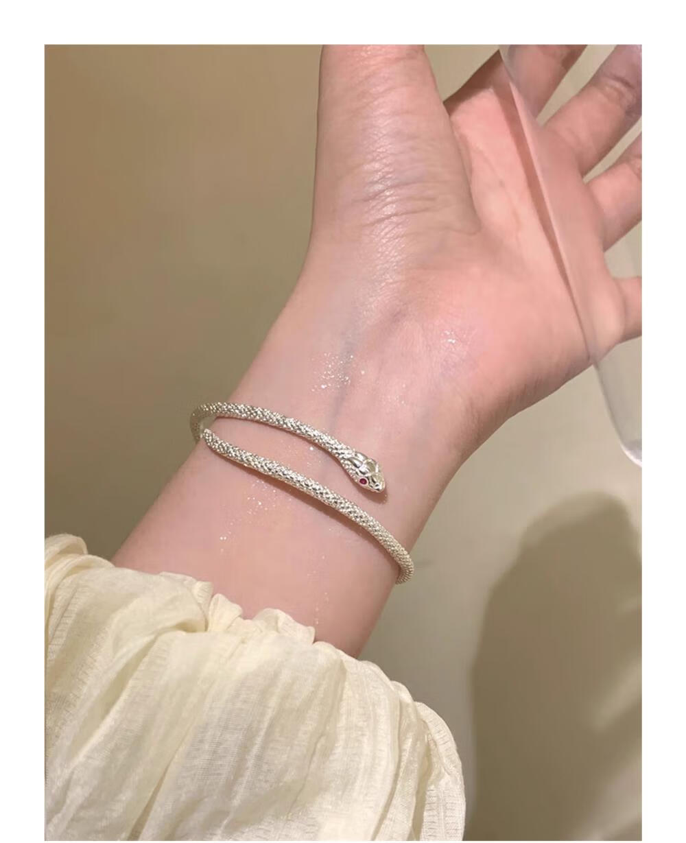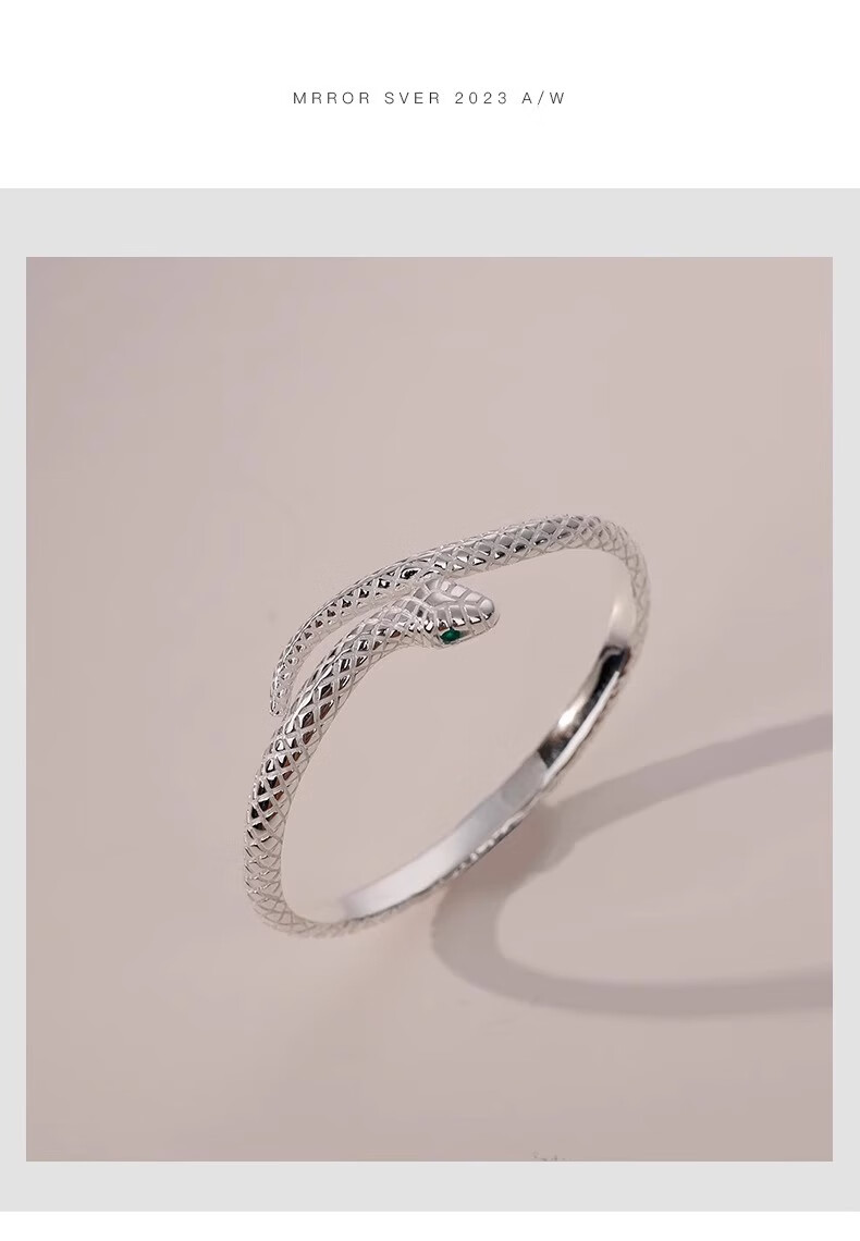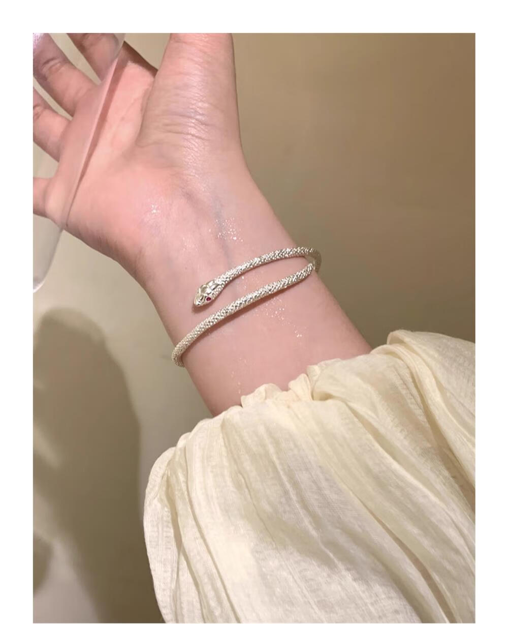 灵蛇形银手镯女纯银9999足银实心镯子本命年送女友生日礼物 25 繁花似锦银手镯