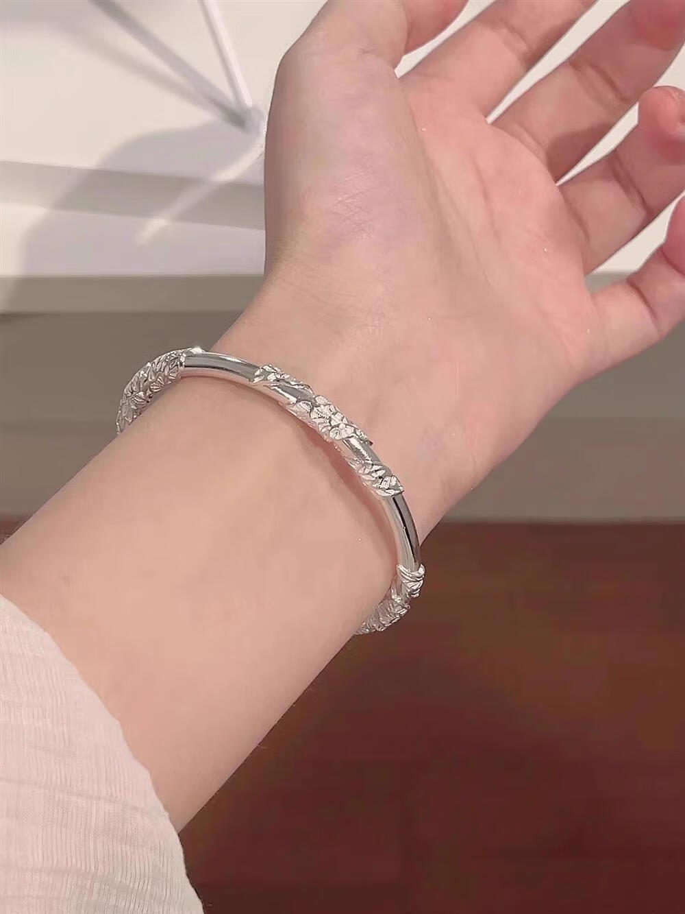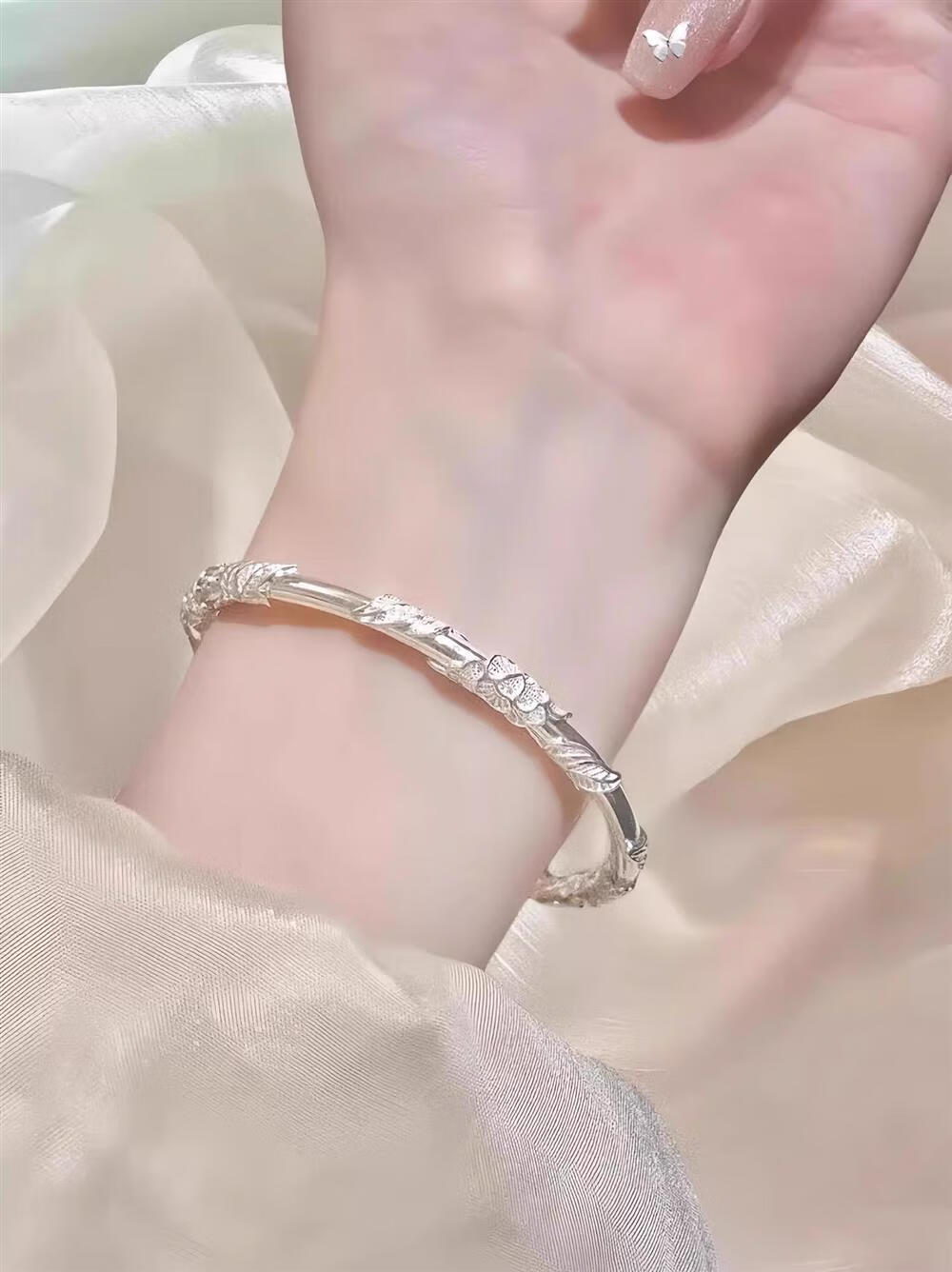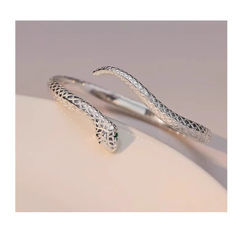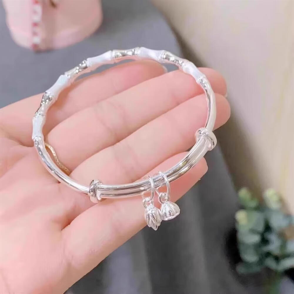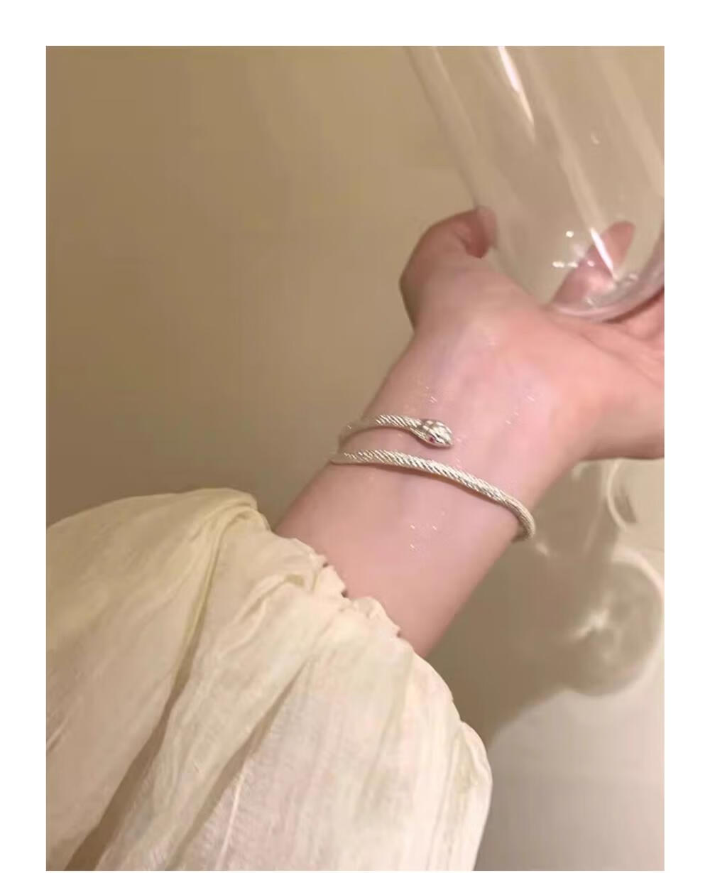 灵蛇形银手镯女纯银9999足银实心镯子本命年送女友生日礼物 25 繁花似锦银手镯