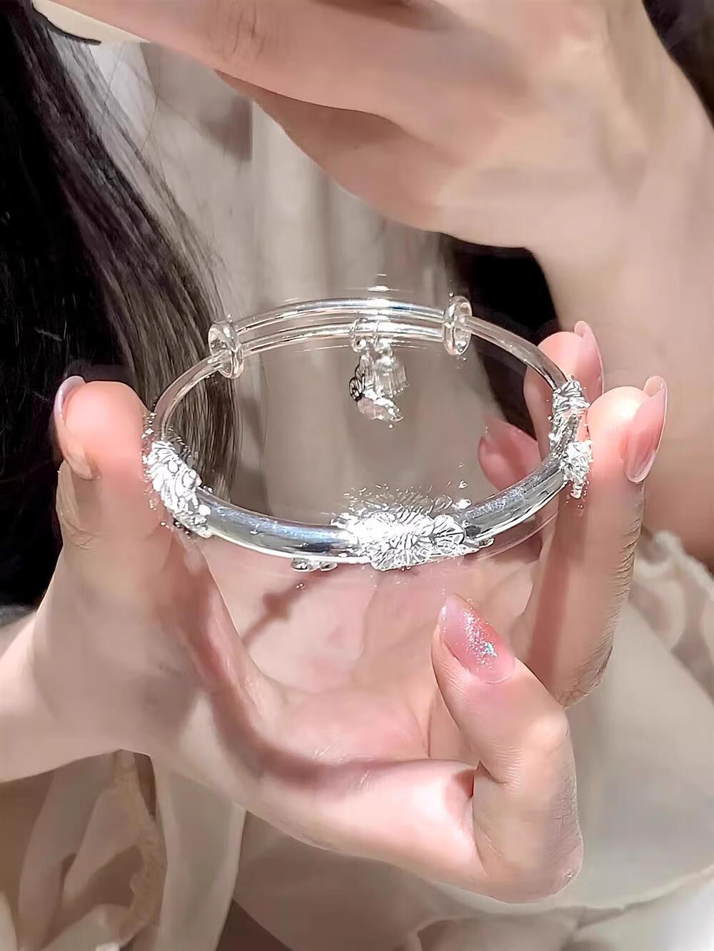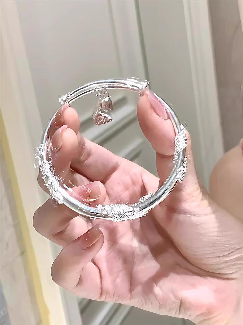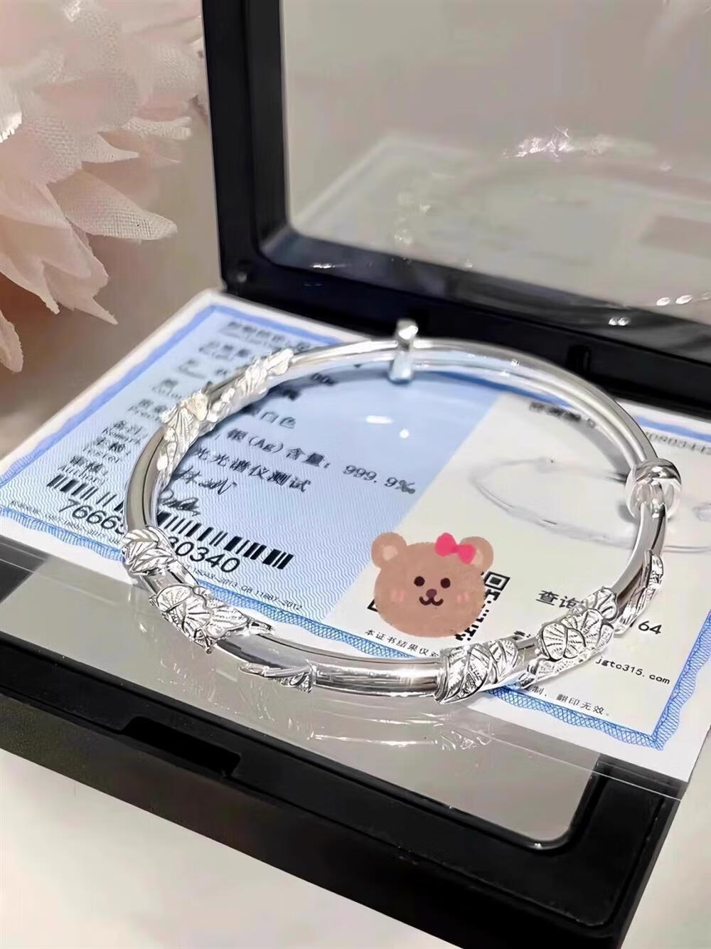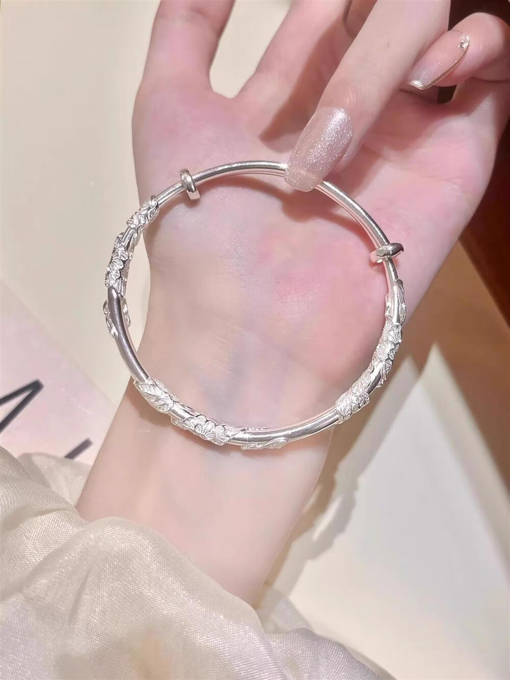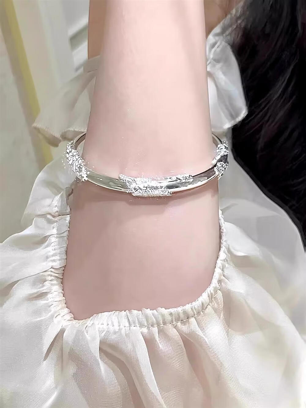 灵蛇形银手镯女纯银9999足银实心镯子本命年送女友生日礼物 25 繁花似锦银手镯