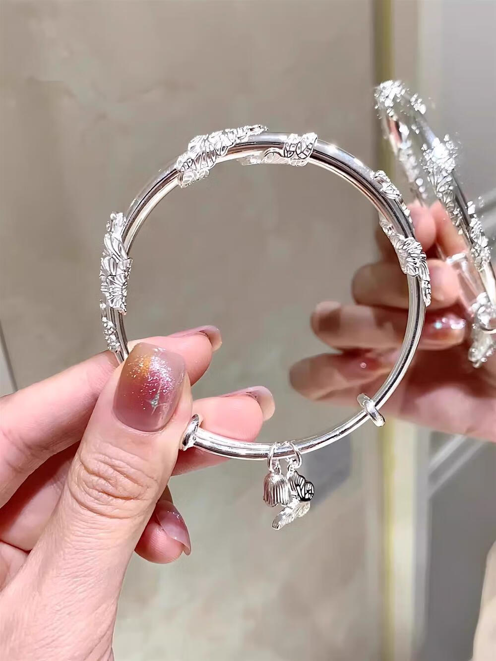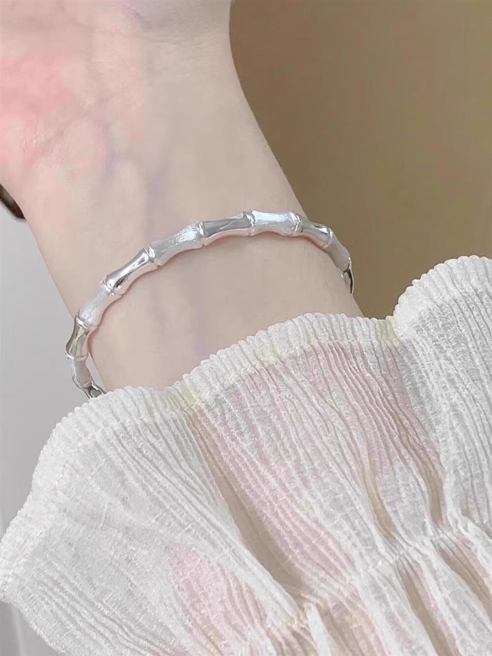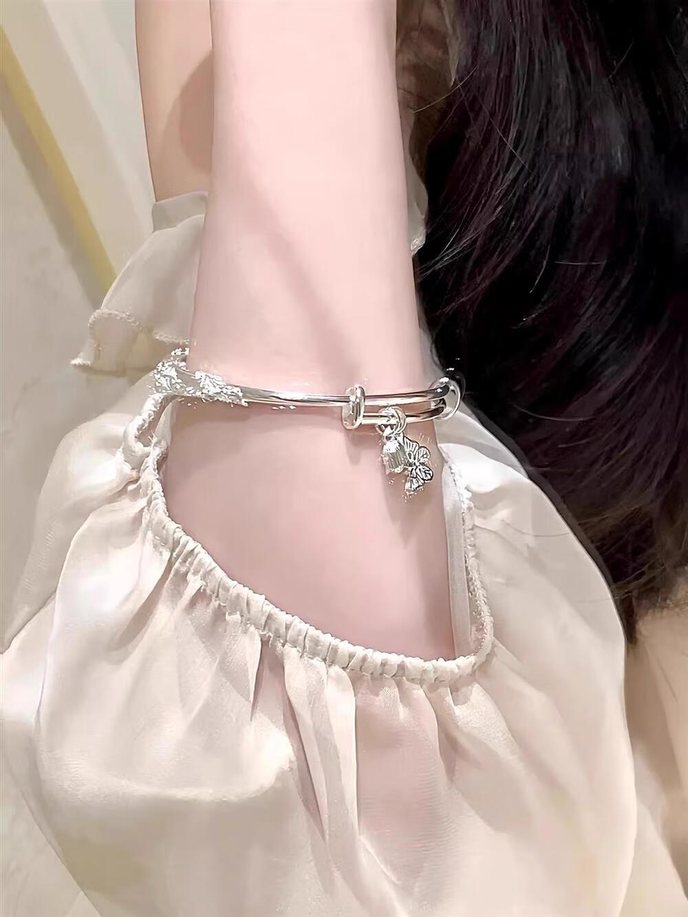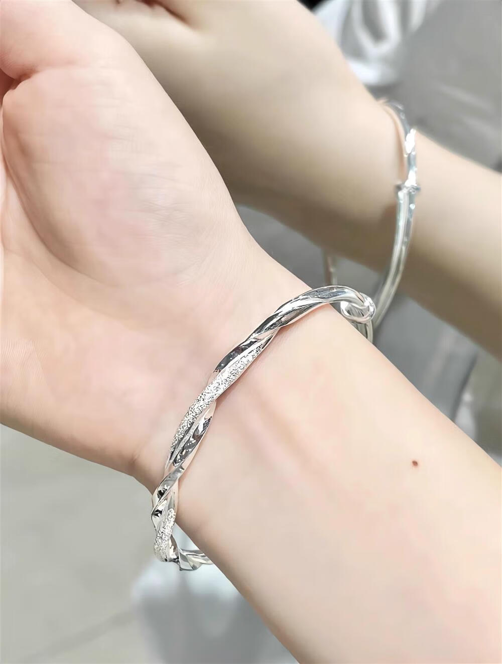灵蛇形银手镯女纯银9999足银实心镯子本命年送女友生日礼物 25 繁花似锦银手镯