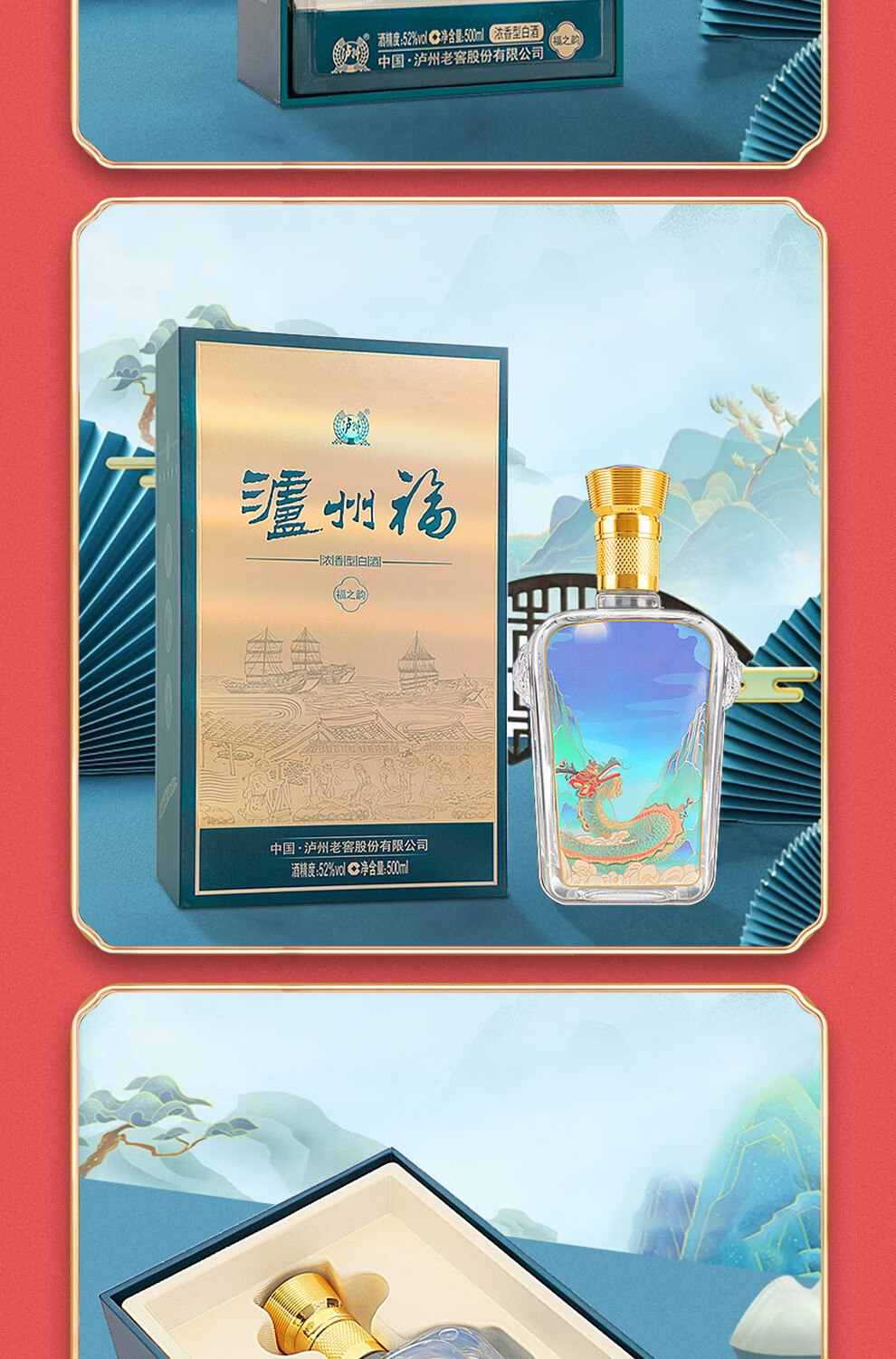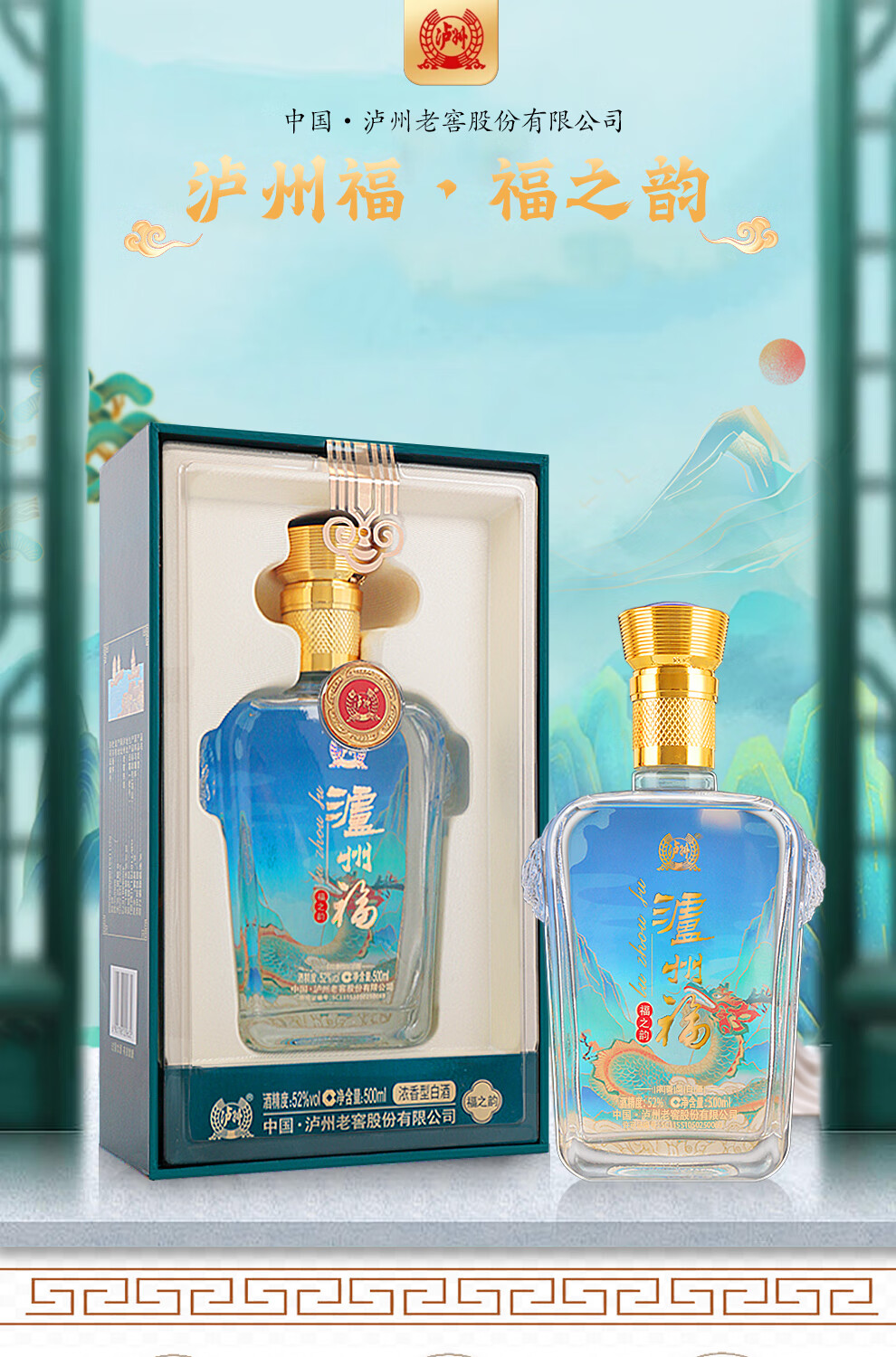 泸州老窖老窖股份出品 泸州福福之韵 浓香型白酒 纯粮食酿造 52%vol 500mL 2瓶