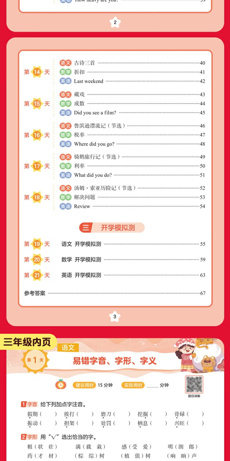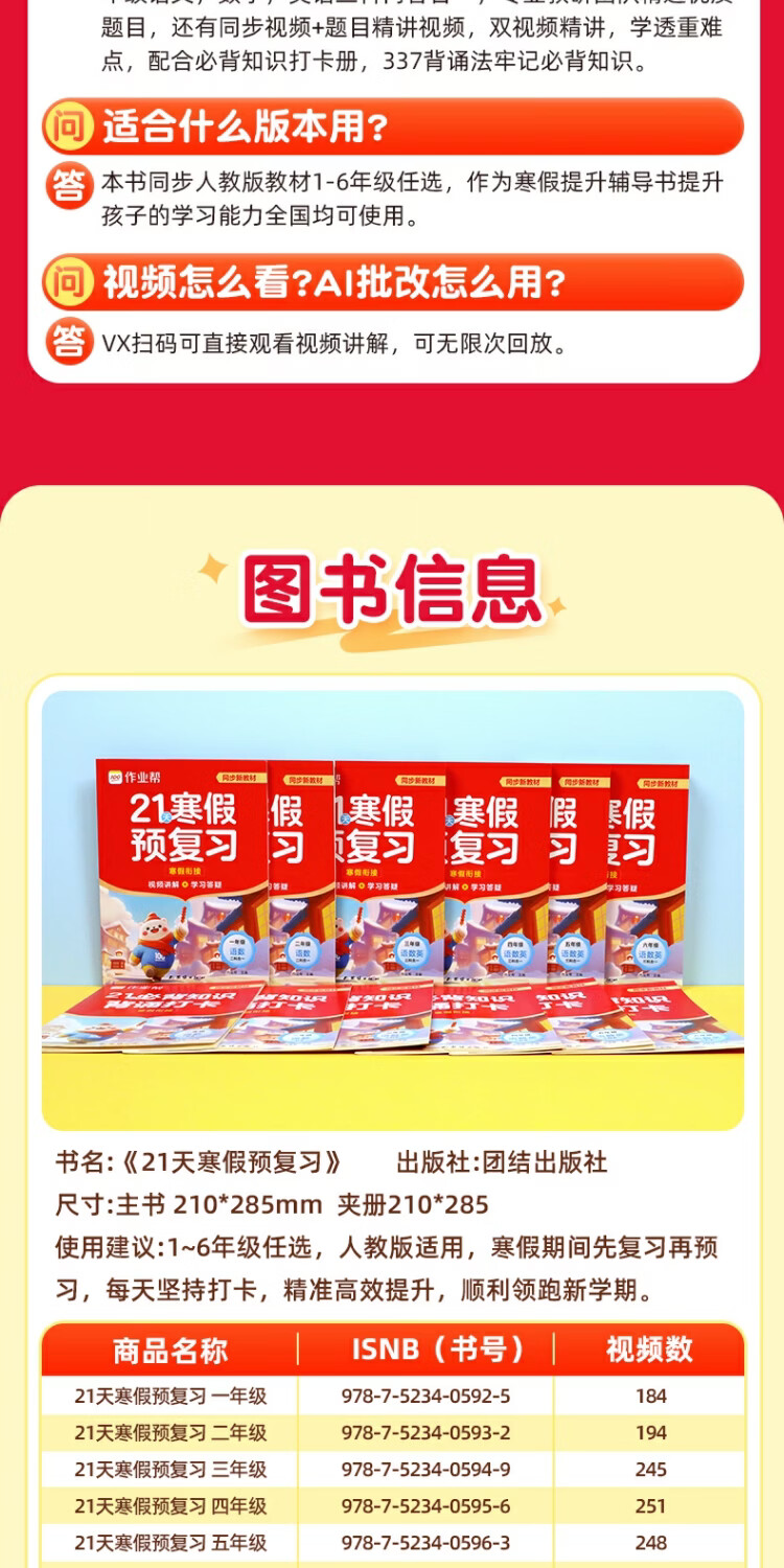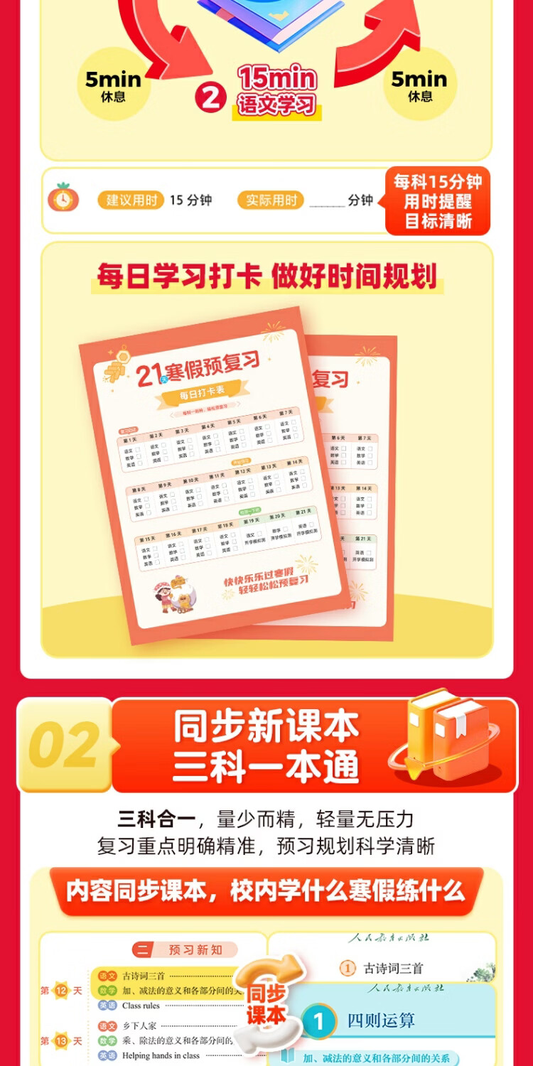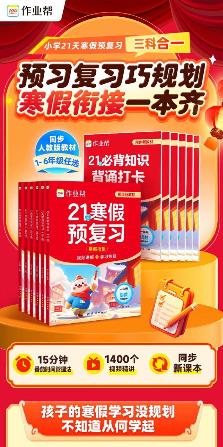 作业帮2026小学21天寒假预复习一二三四五六年级寒假作业人教版预复习衔接一本通口算计划表练字帖阅读下册预习教材图书教辅 六年级下 21天预复习