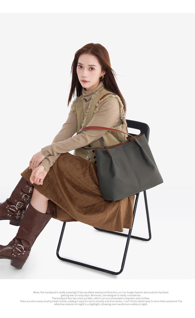 秀迪猫【送礼首推】冬季氛围感大容量女生牛皮托斜挎包生日礼物精选 黑色-极速发货
