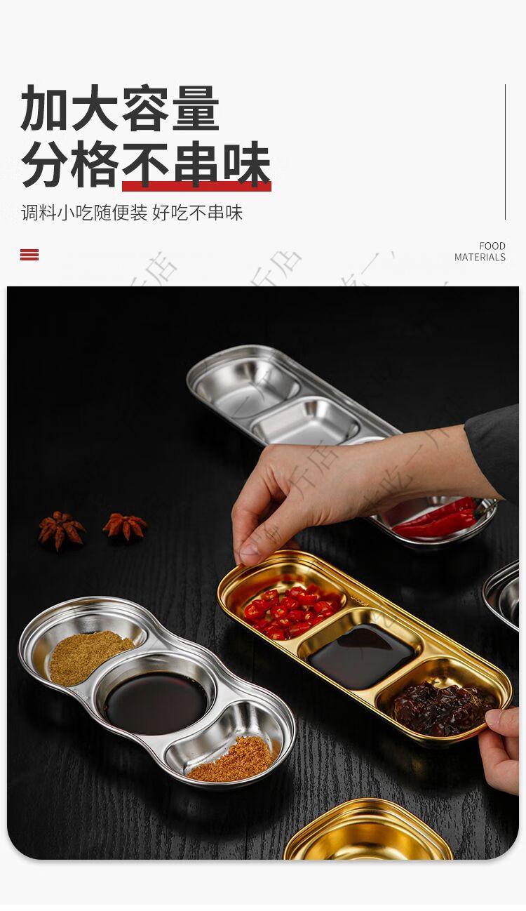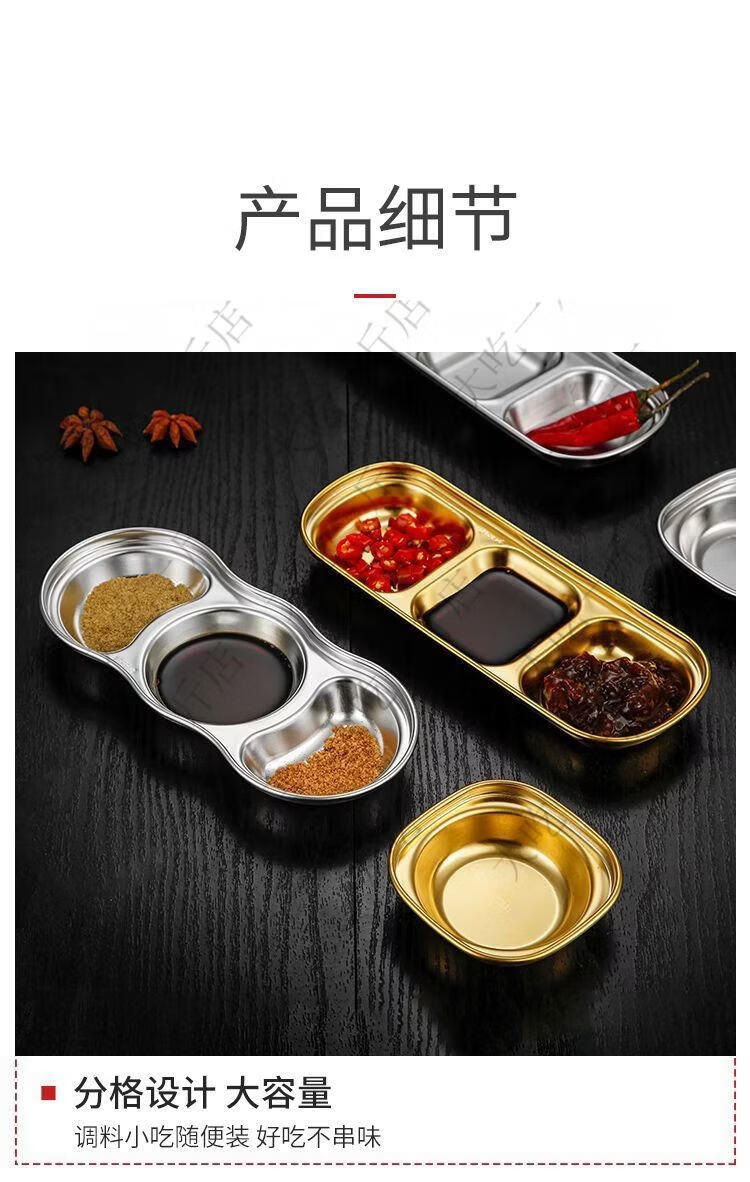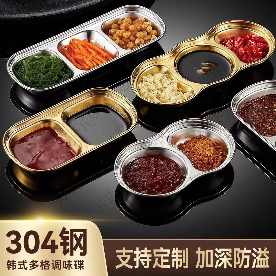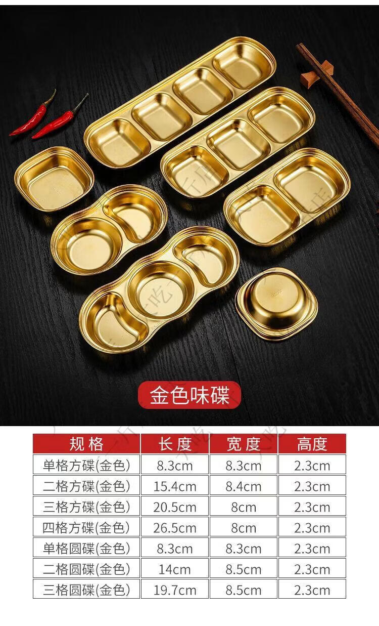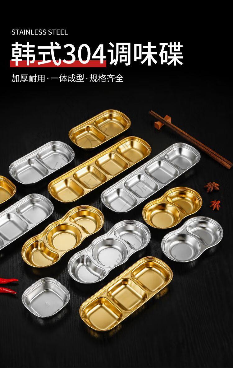 304不锈钢蘸料碟烤肉店蘸料碟火锅多格调料韩式碟家用菜碟咸菜盘 1英寸 食品级金色299只限时抢 一格5个装特厚款