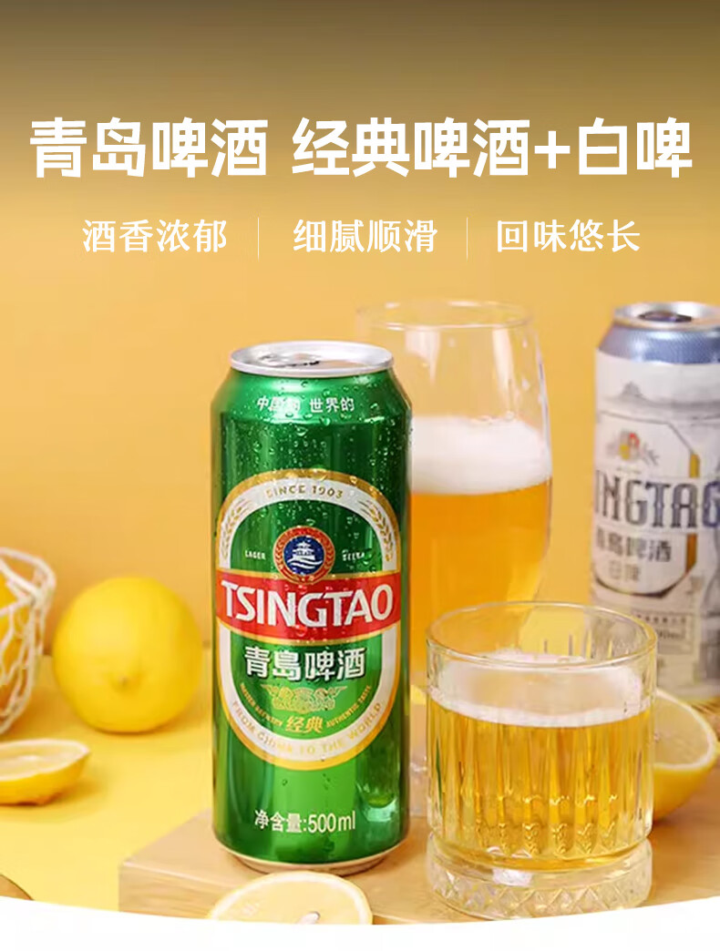 青岛啤酒经典原麦汁浓度10°P罐啤 加量不加价 550mL 18罐
