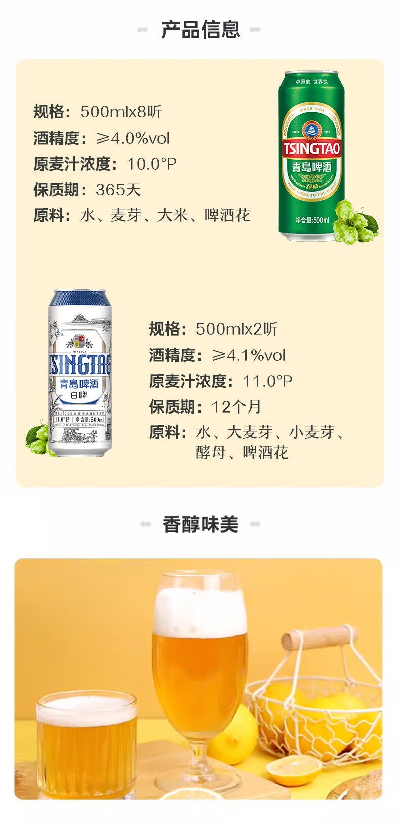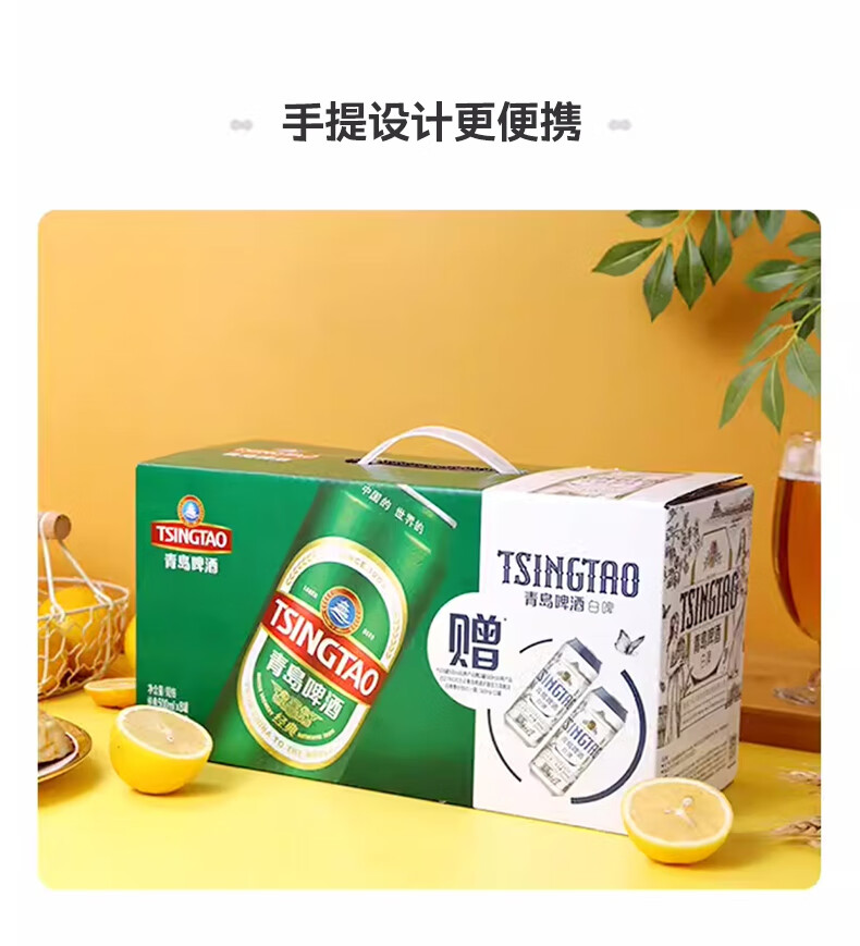 青岛啤酒(TsingTao)原麦汁浓度经典10°P 白啤11°P大罐手提送礼盒装8经典+2白啤 500mL 10罐