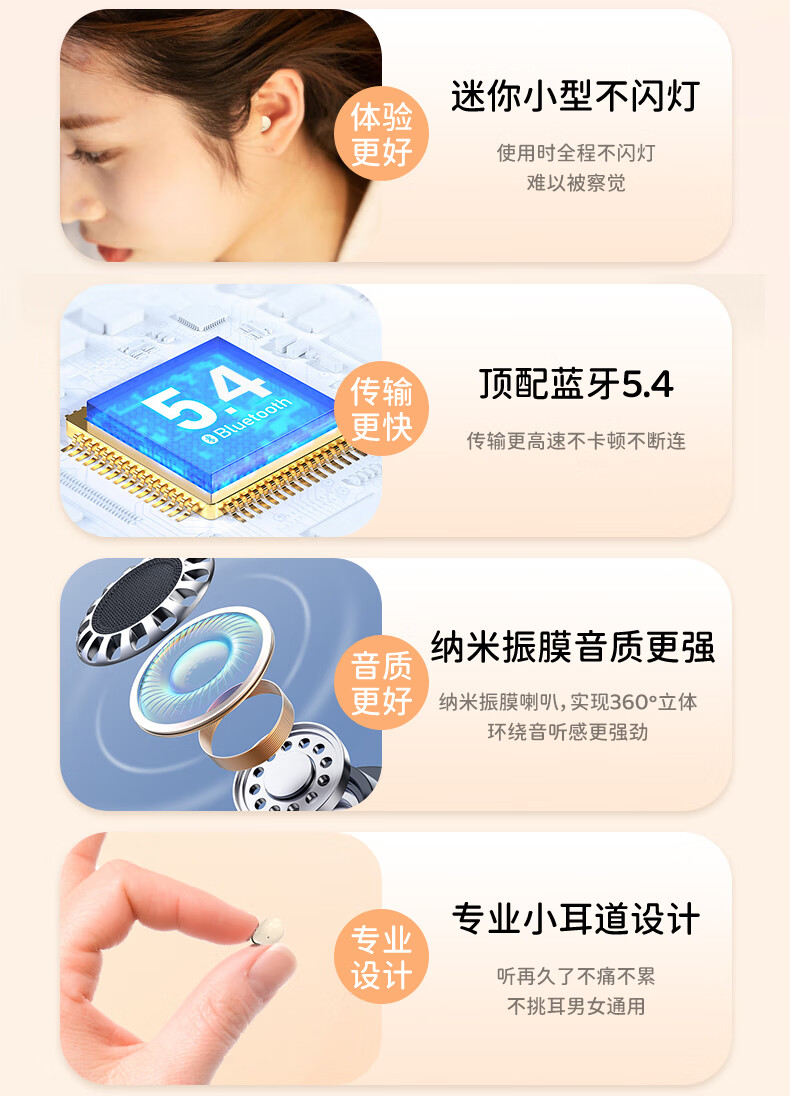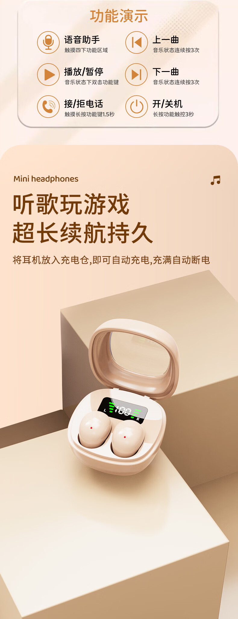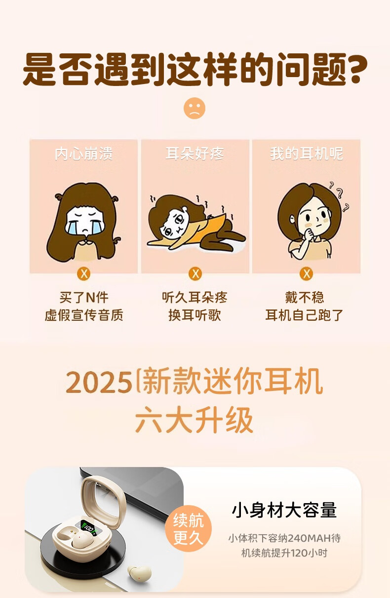 洛响超小迷你蓝牙耳机2025新款超长续航久戴不痛降噪女士隐形上班mini入耳式ai智能男士金榜京东快递 黑色