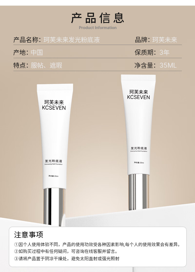 珂芙未来粉底液遮瑕膏持久防水不脱妆不卡粉气垫bb霜素颜霜新年跨年礼物 【送免费小样*2】70ml