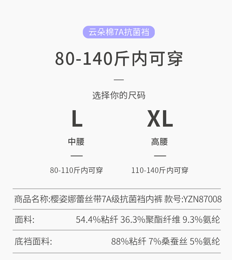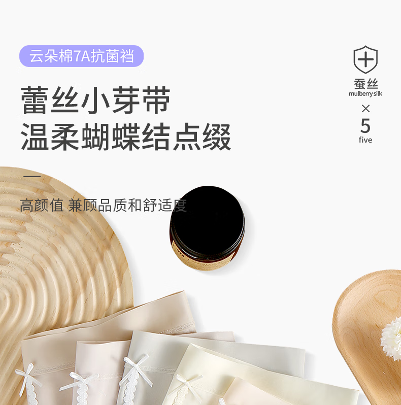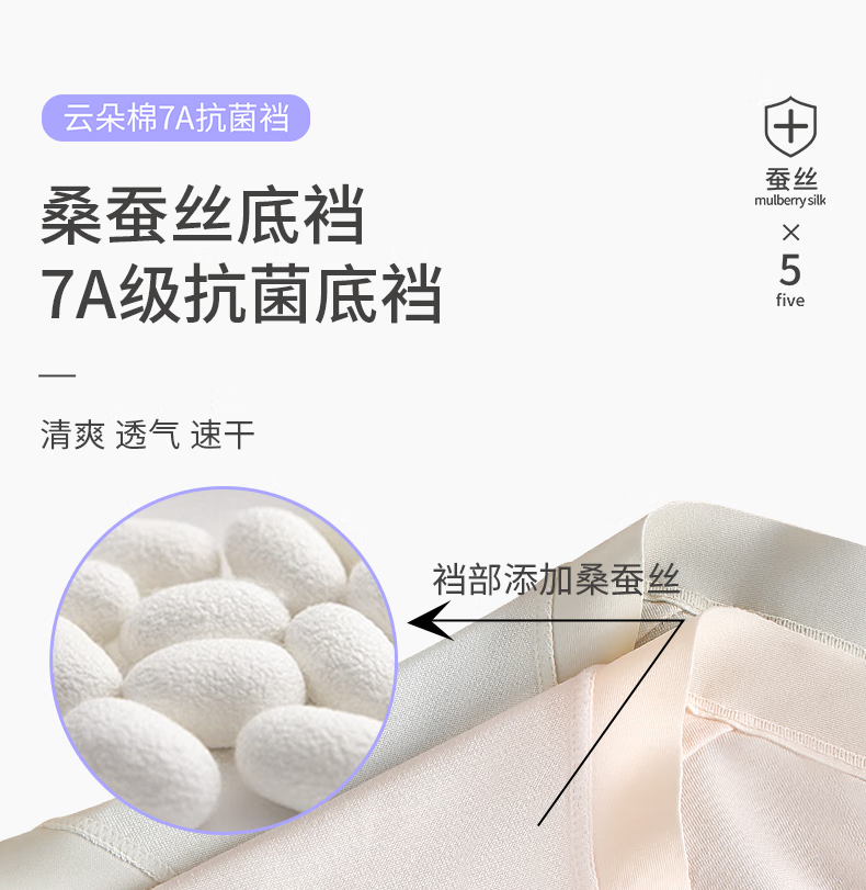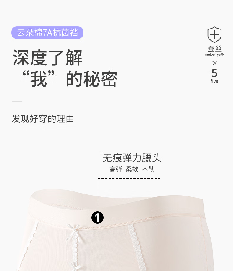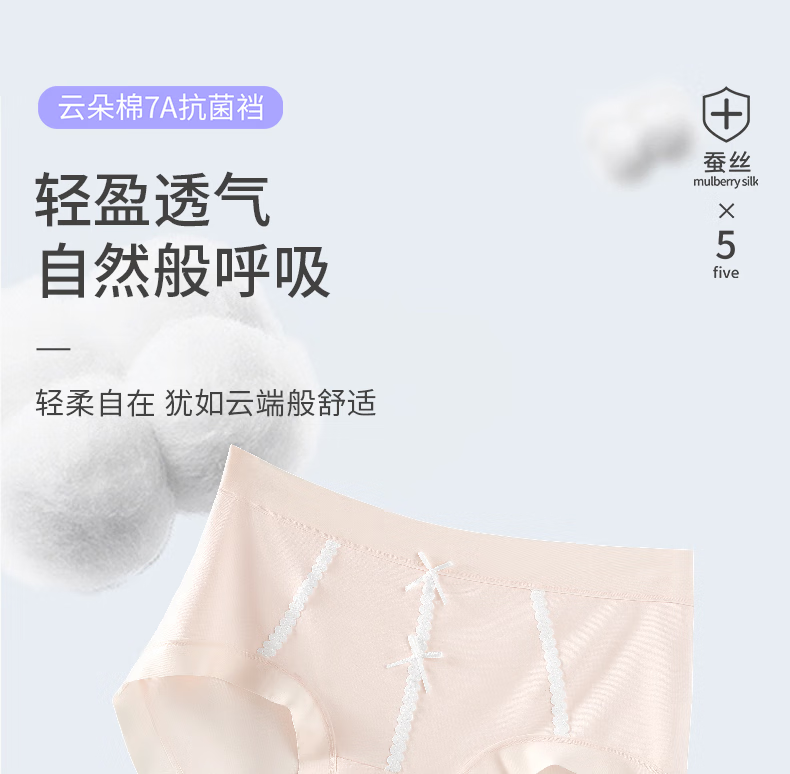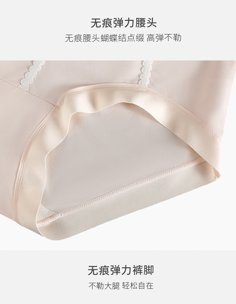 樱姿娜【6条装】无痕内裤女2025新款蕾丝蝴蝶结7A级抗菌蚕丝裆透气内裤 【6条装】白+浅虾+绿+杏+肤+随机色 XL 高腰(110-140斤内可穿)