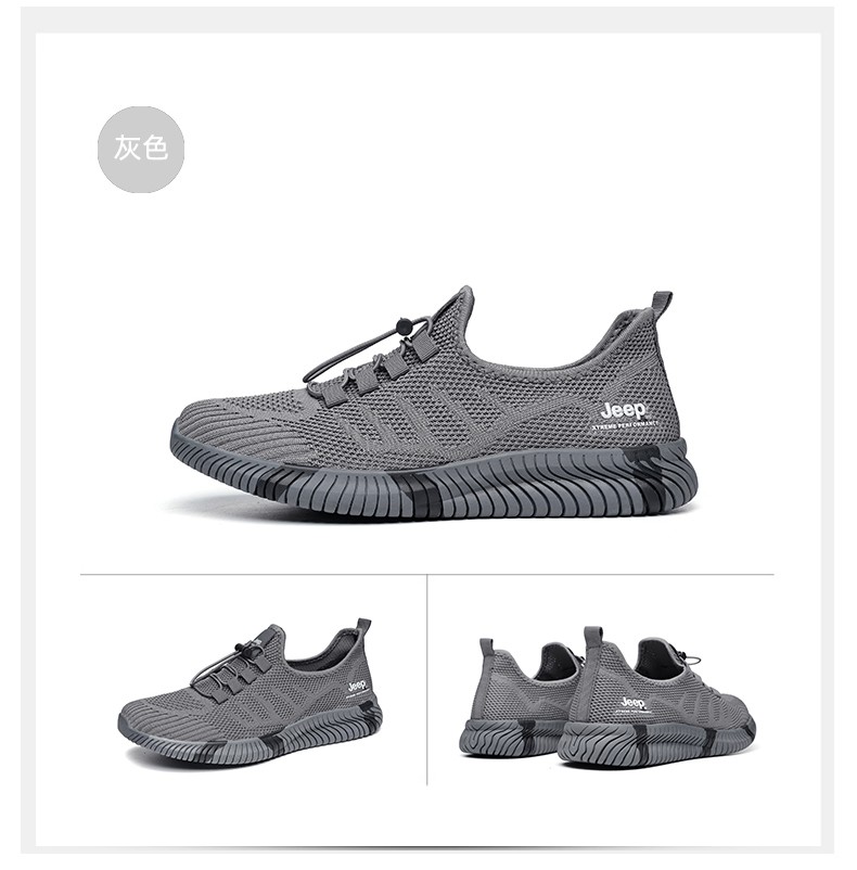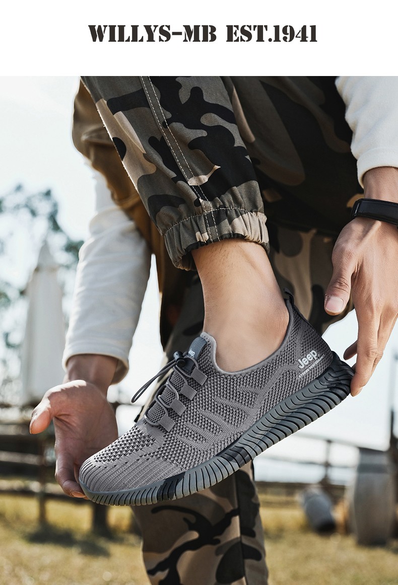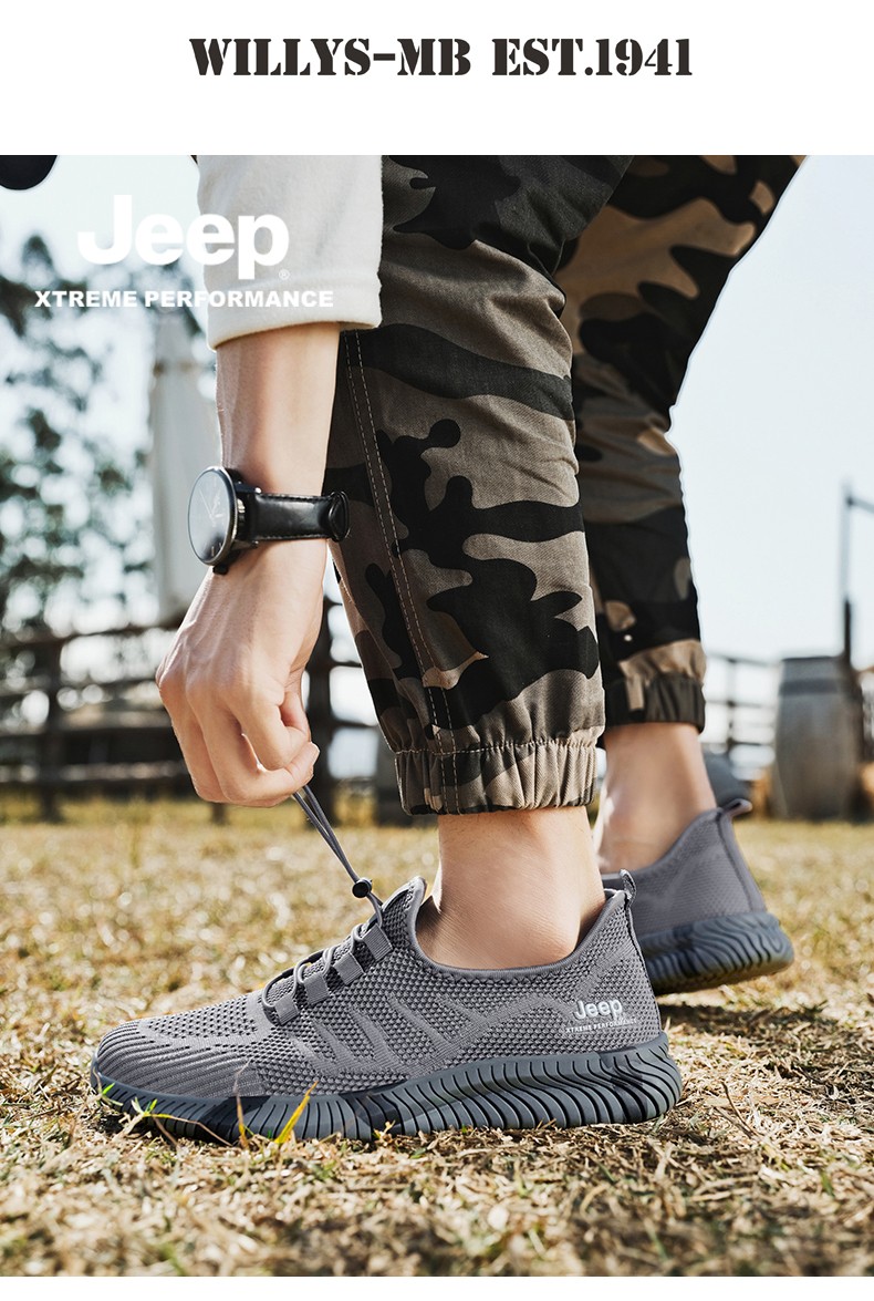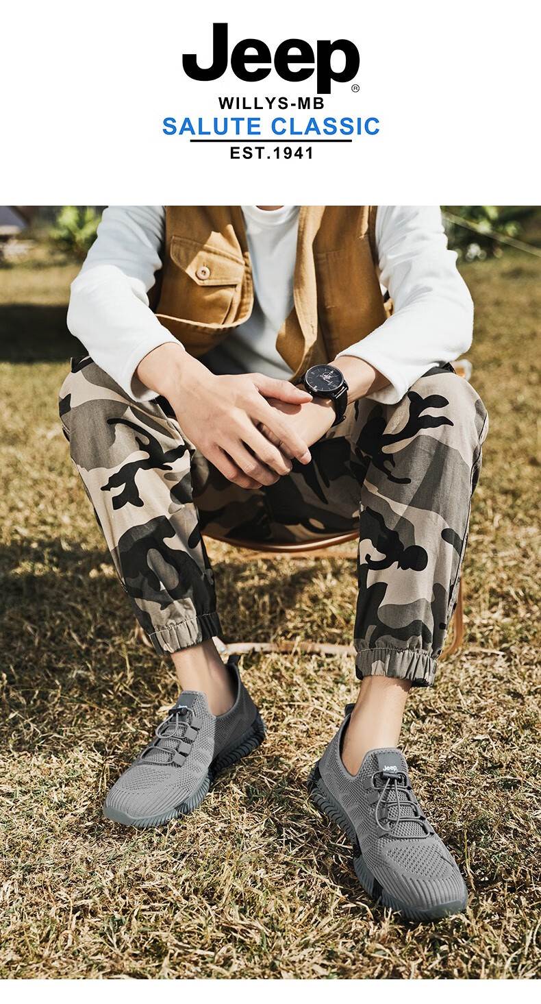 Jeep吉普休闲鞋男鞋春夏季镂空透气网面鞋情侣跑步运动鞋软底户外鞋子 灰色 (男款) 39