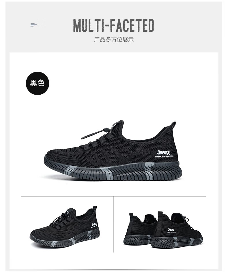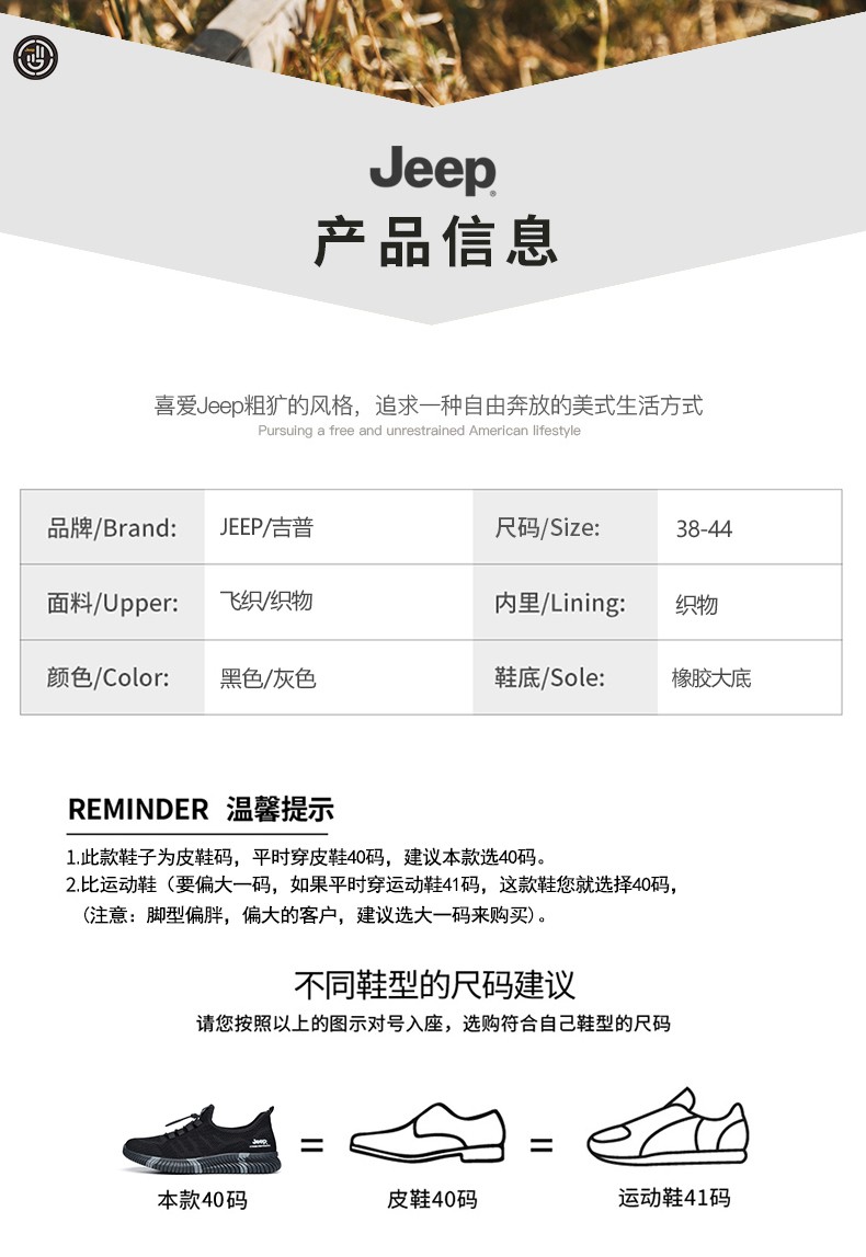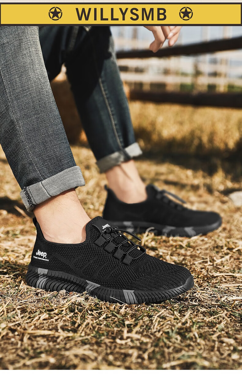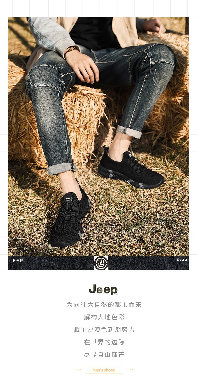 Jeep吉普休闲鞋男鞋春夏季镂空透气网面鞋情侣跑步运动鞋软底户外鞋子 灰色 (男款) 39