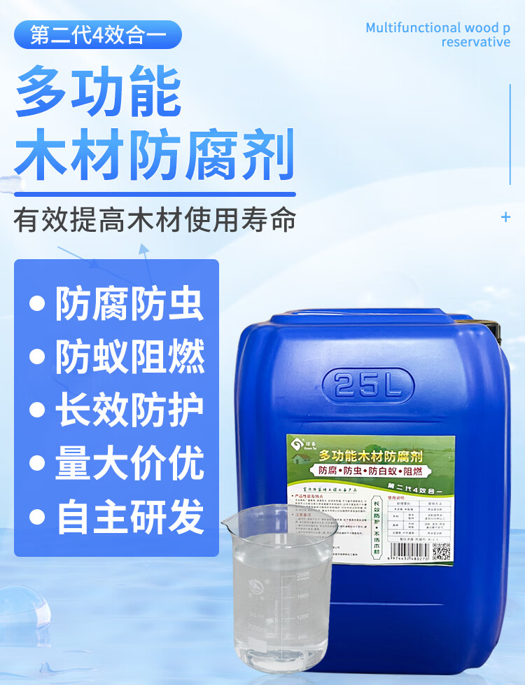 绿泰多功能木材防腐剂防虫防白蚁阻燃竹木旧木头古建筑材料高效防腐液 25kg